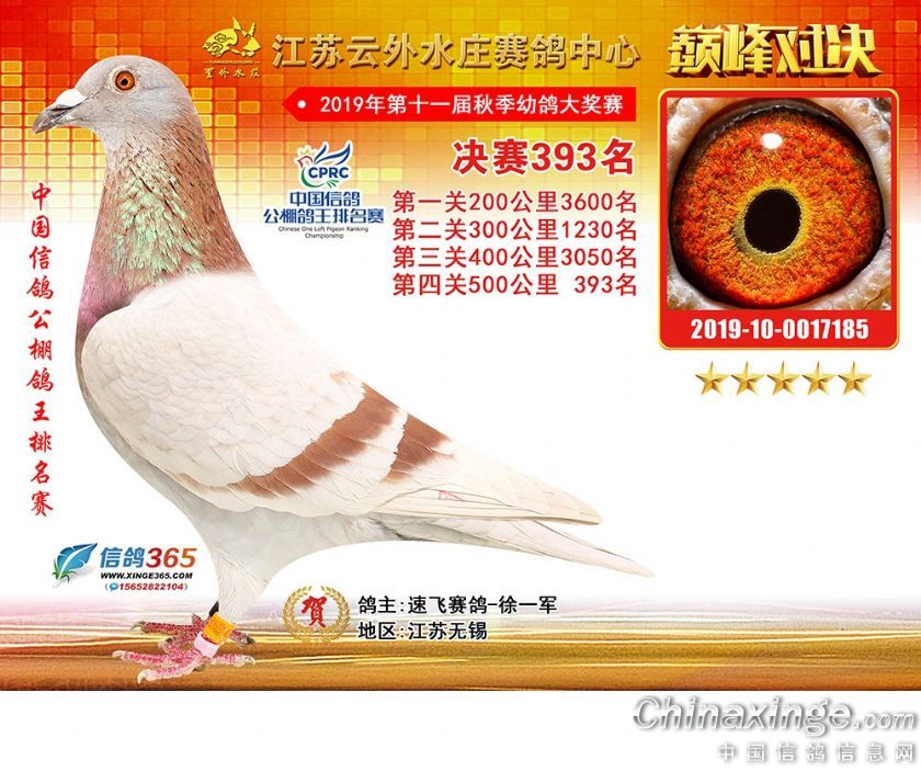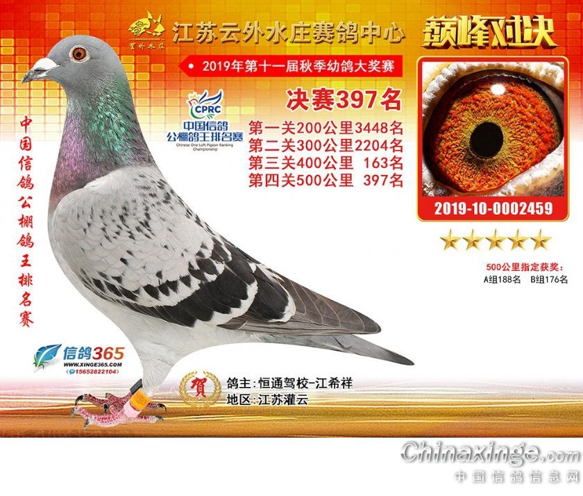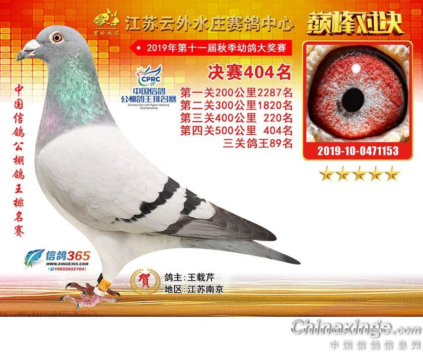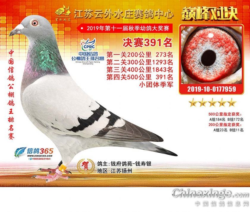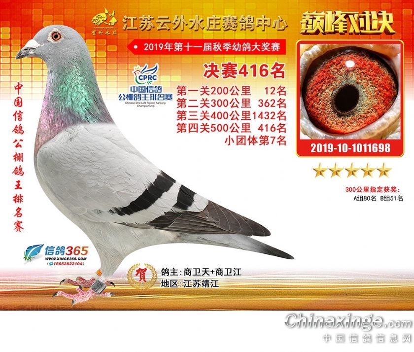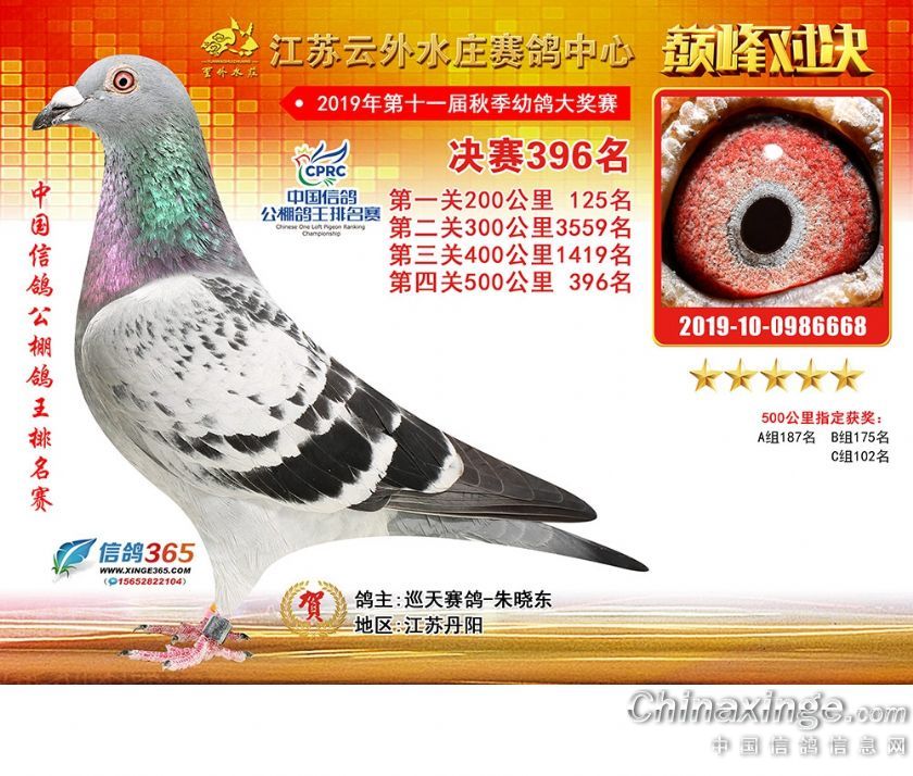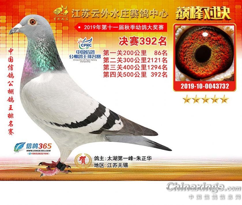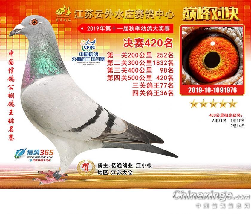 江苏云外水庄赛鸽中心2019年获奖鸽391-420名