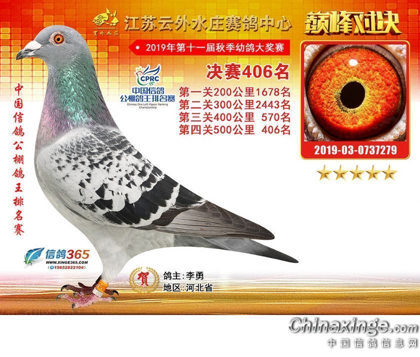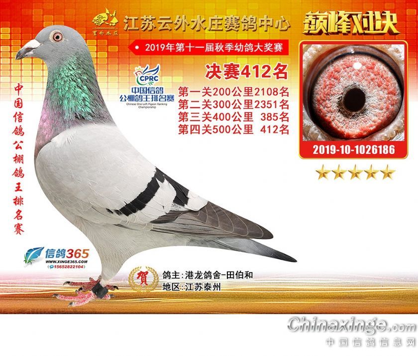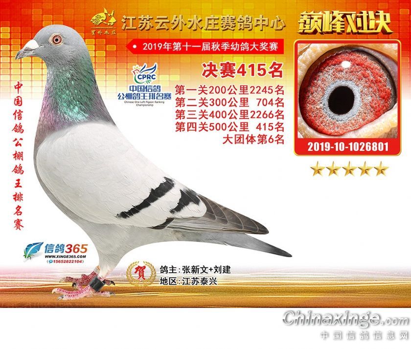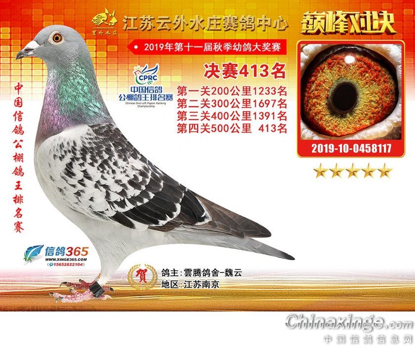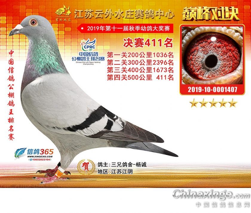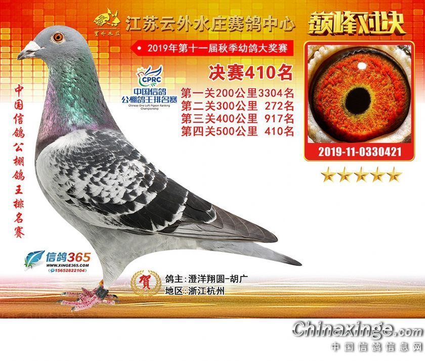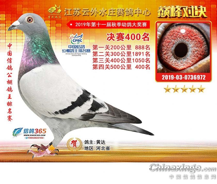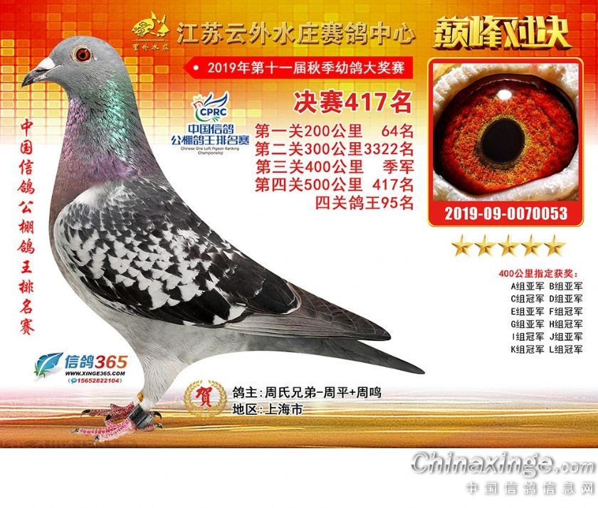 江苏云外水庄赛鸽中心2019年获奖鸽391-420名