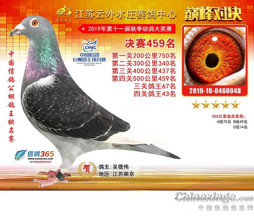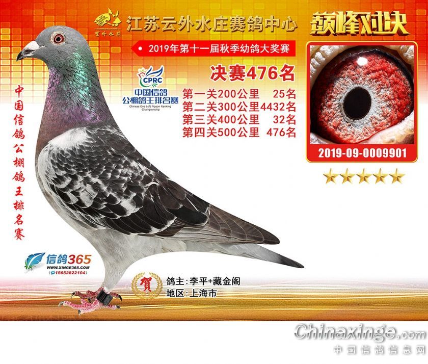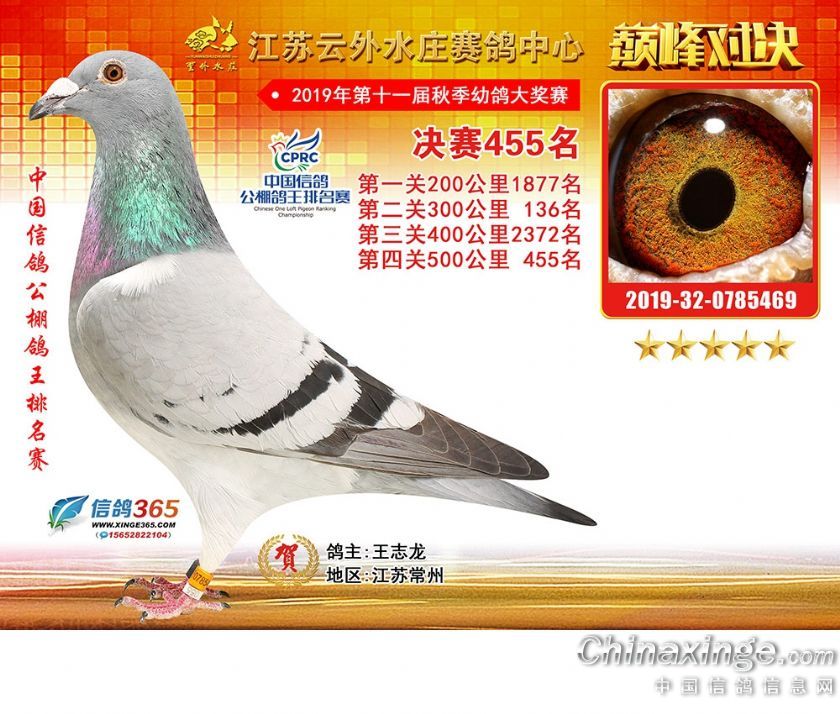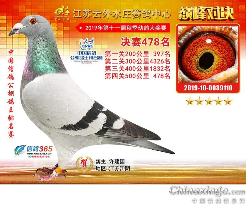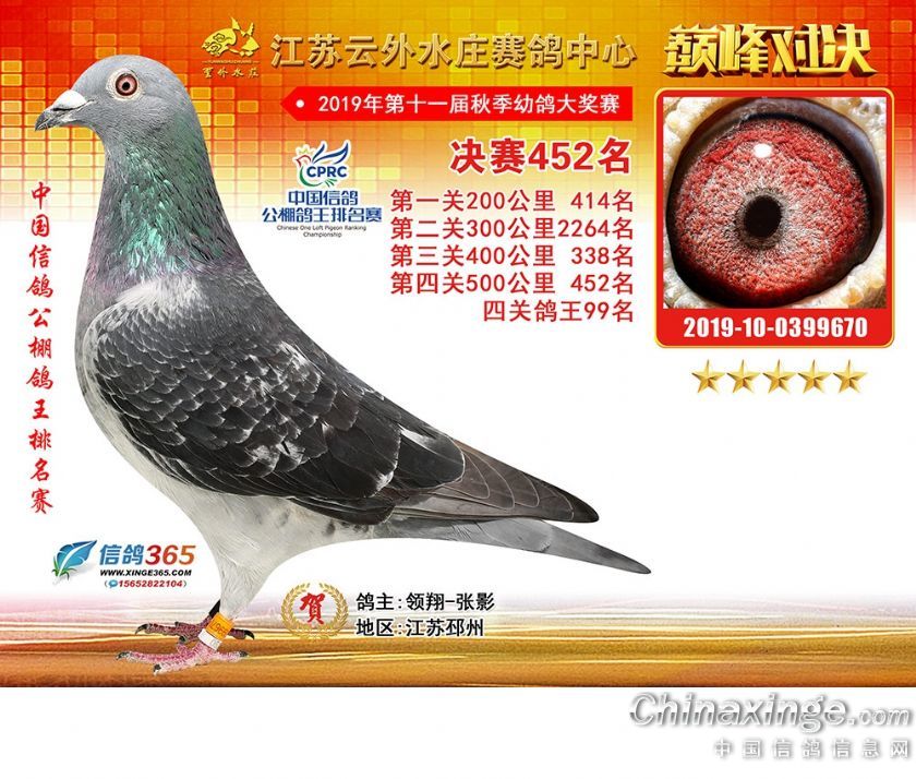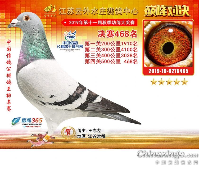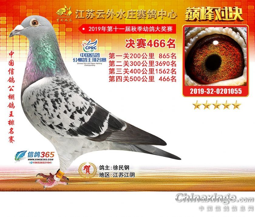 江苏云外水庄赛鸽中心2019年获奖鸽451-480名