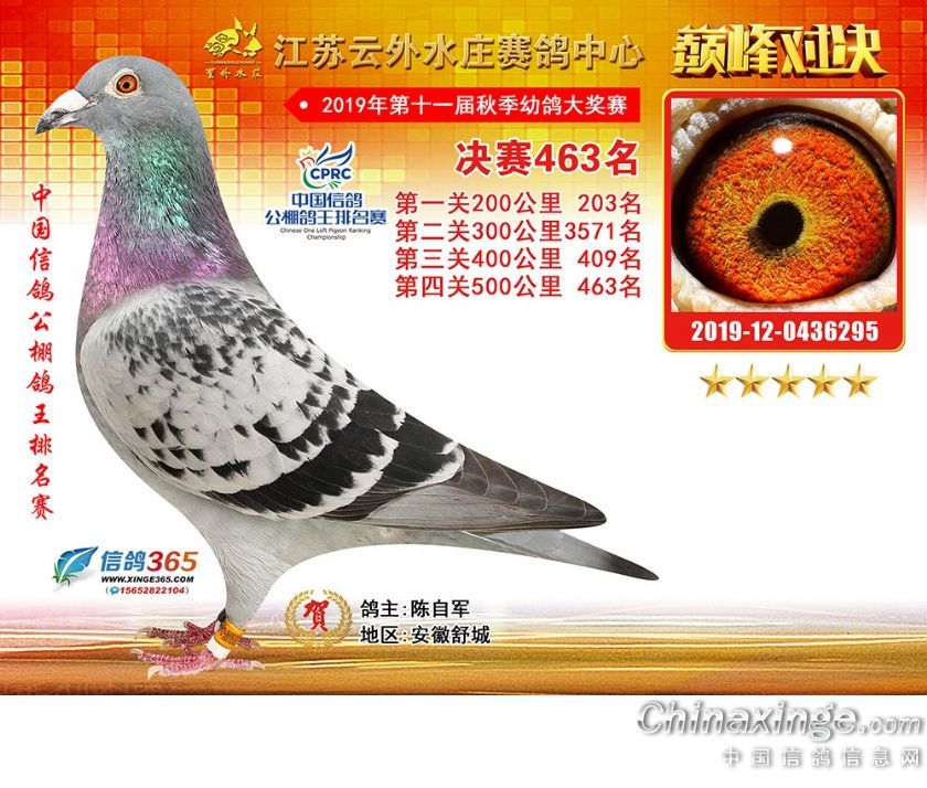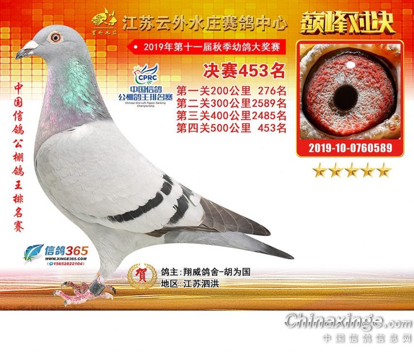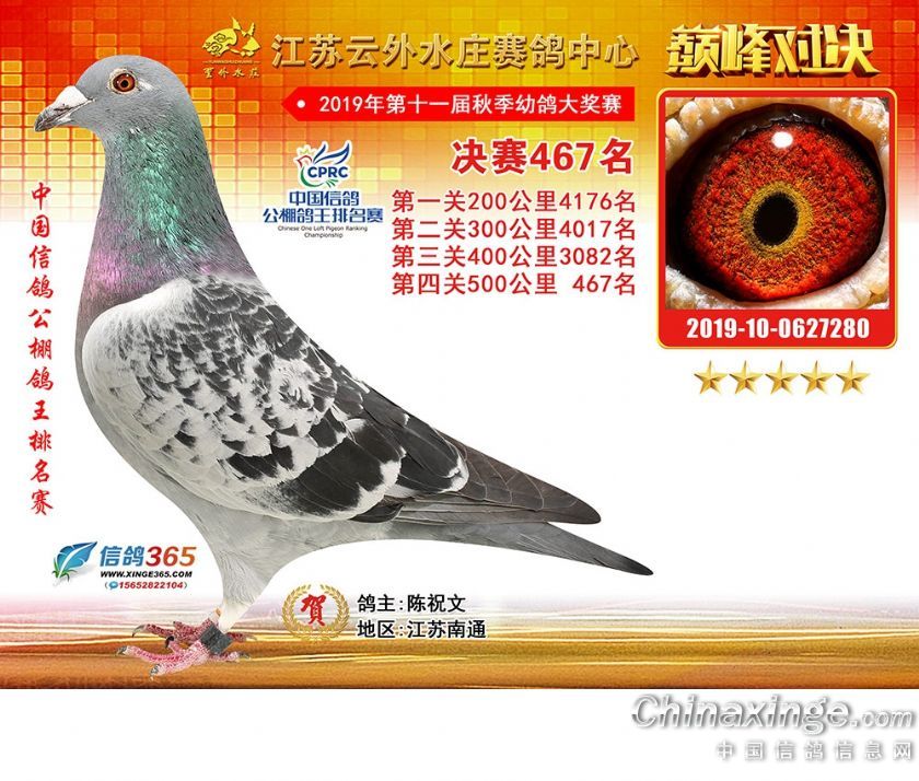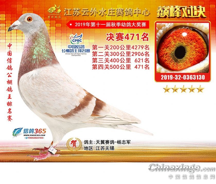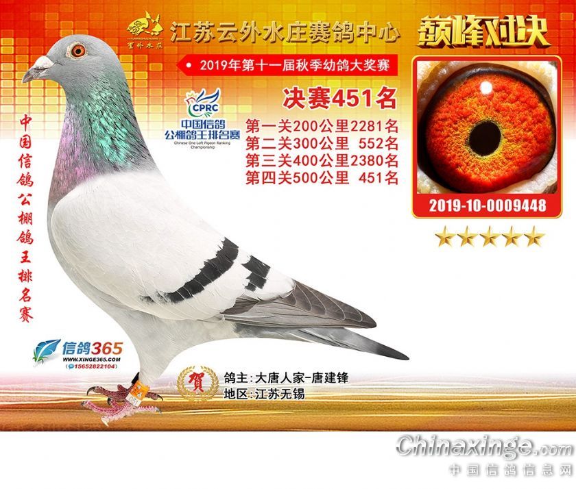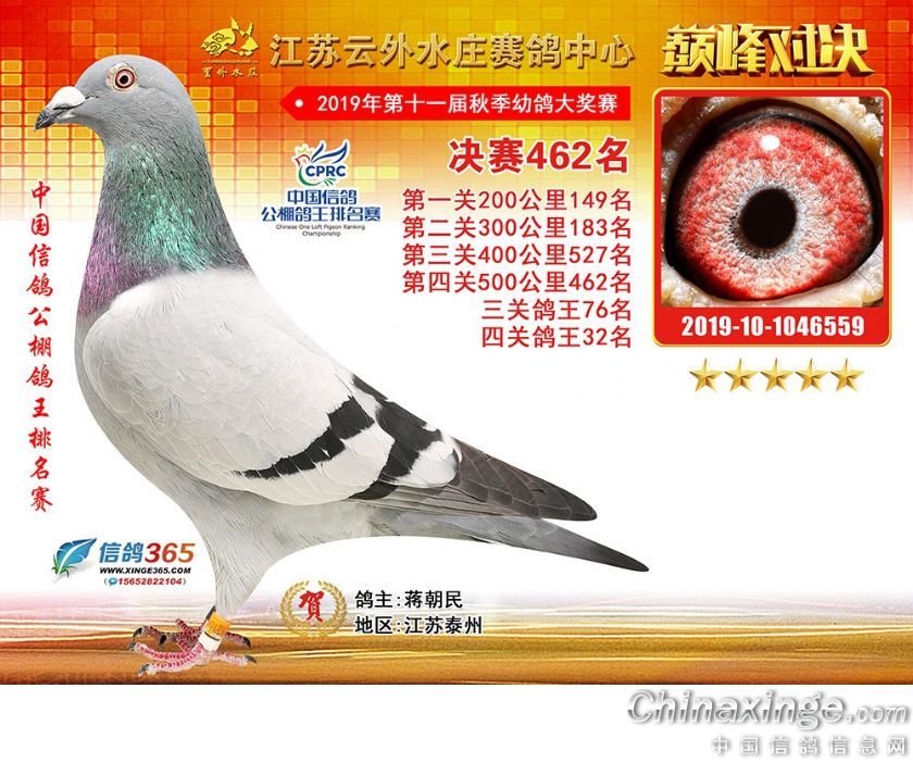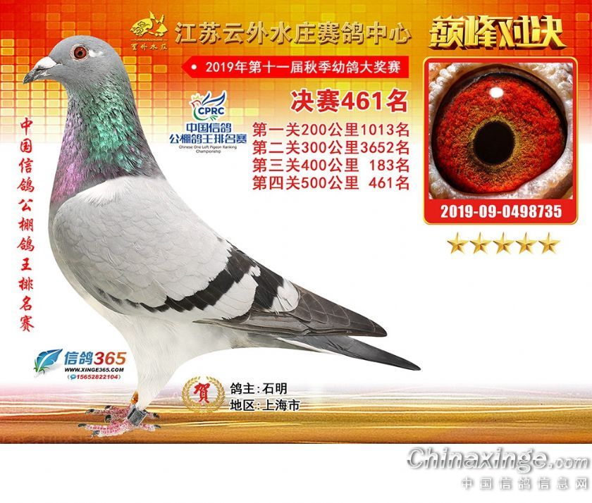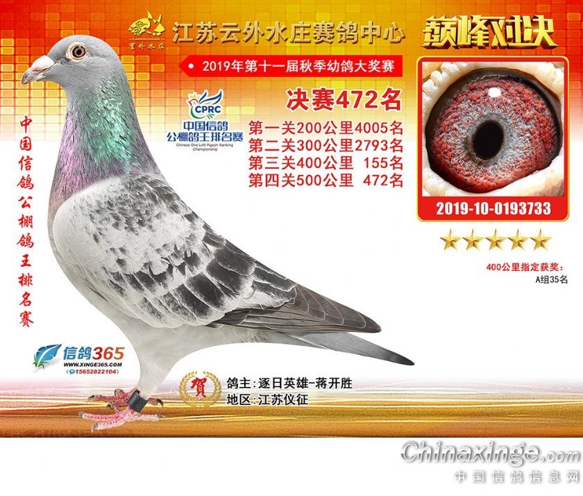 江苏云外水庄赛鸽中心2019年获奖鸽451-480名