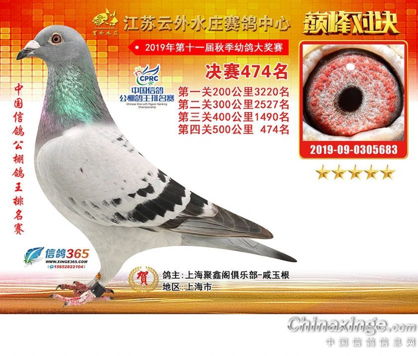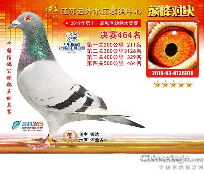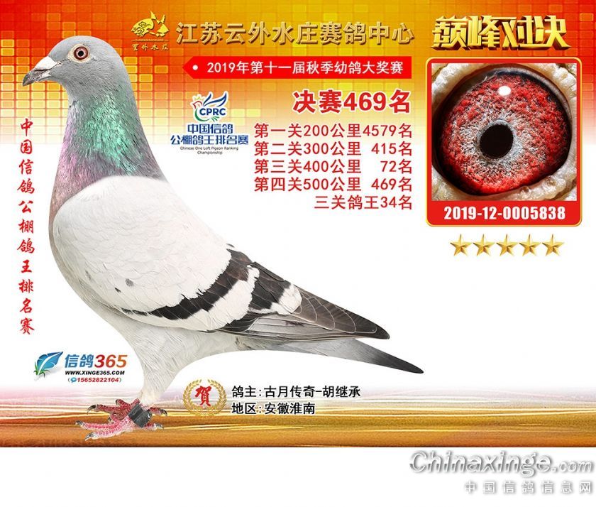 作品说明: 江苏云外水庄赛鸽中心2019年获奖鸽451-480名