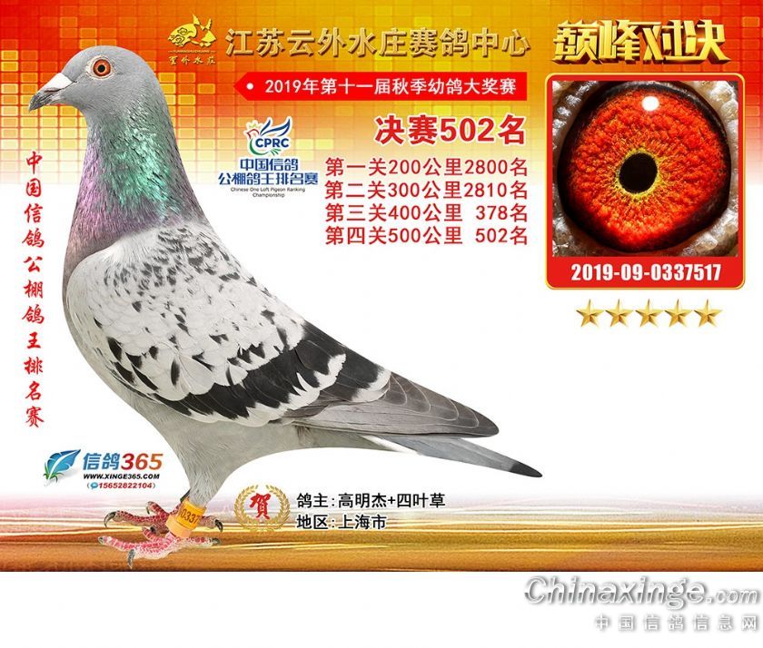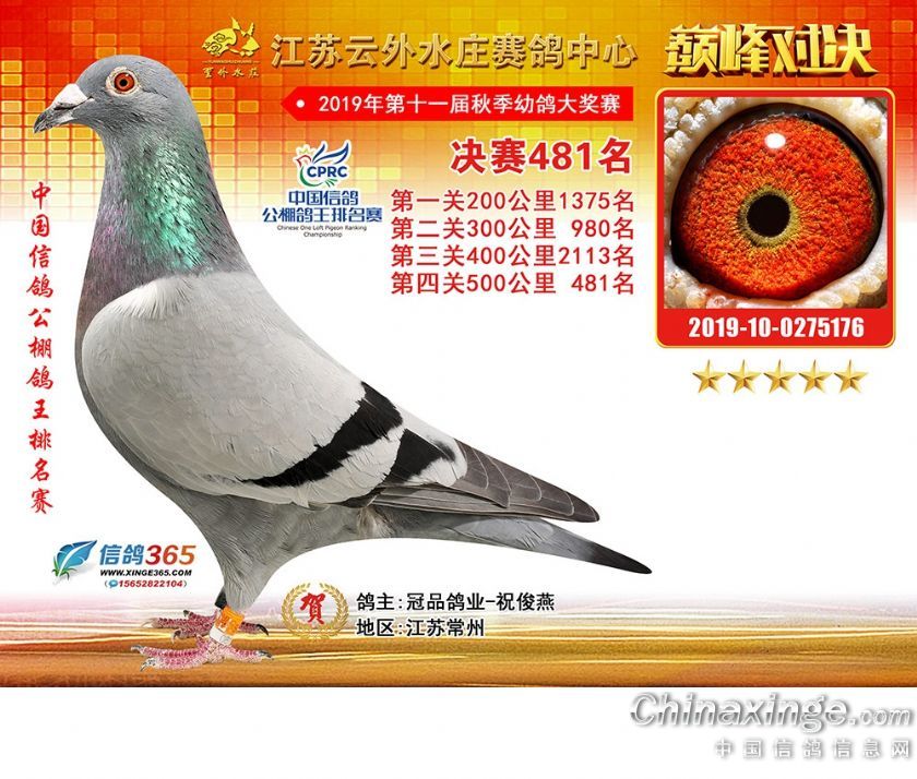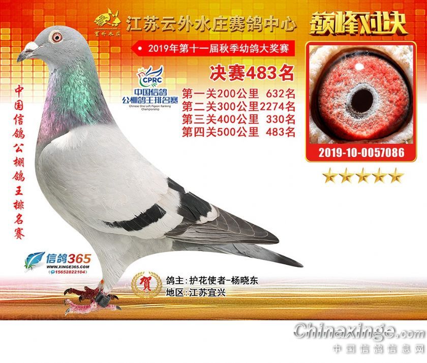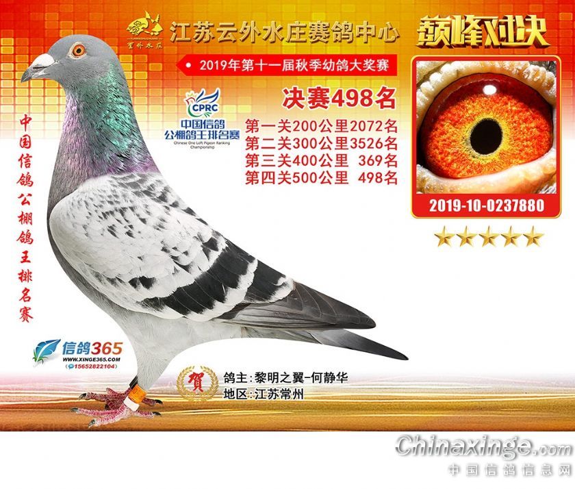 江苏云外水庄赛鸽中心2019年获奖鸽481-510名