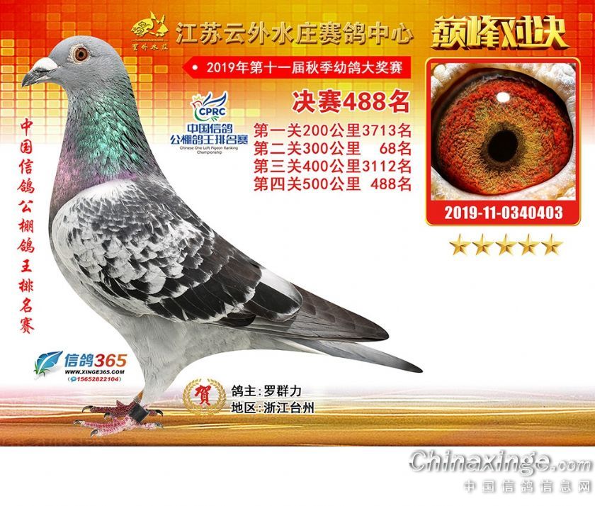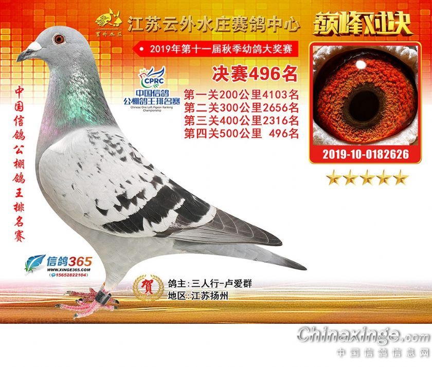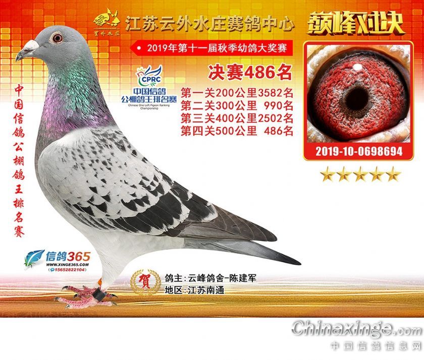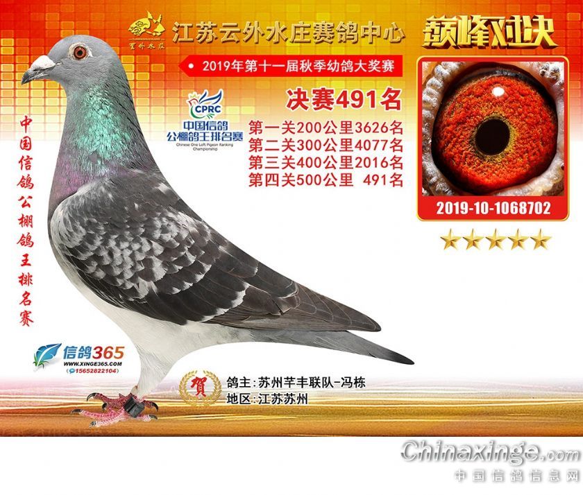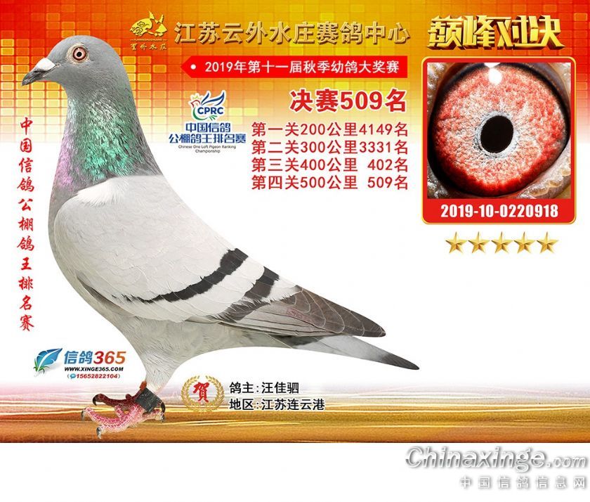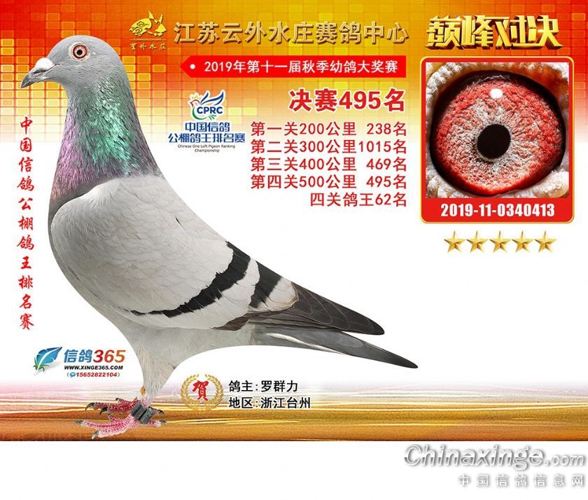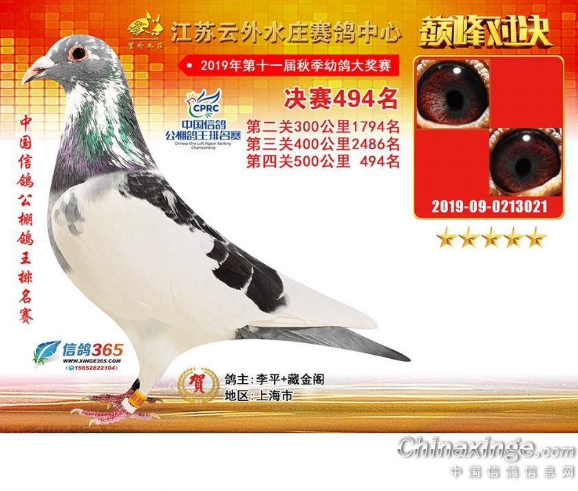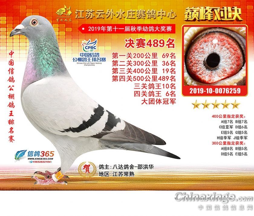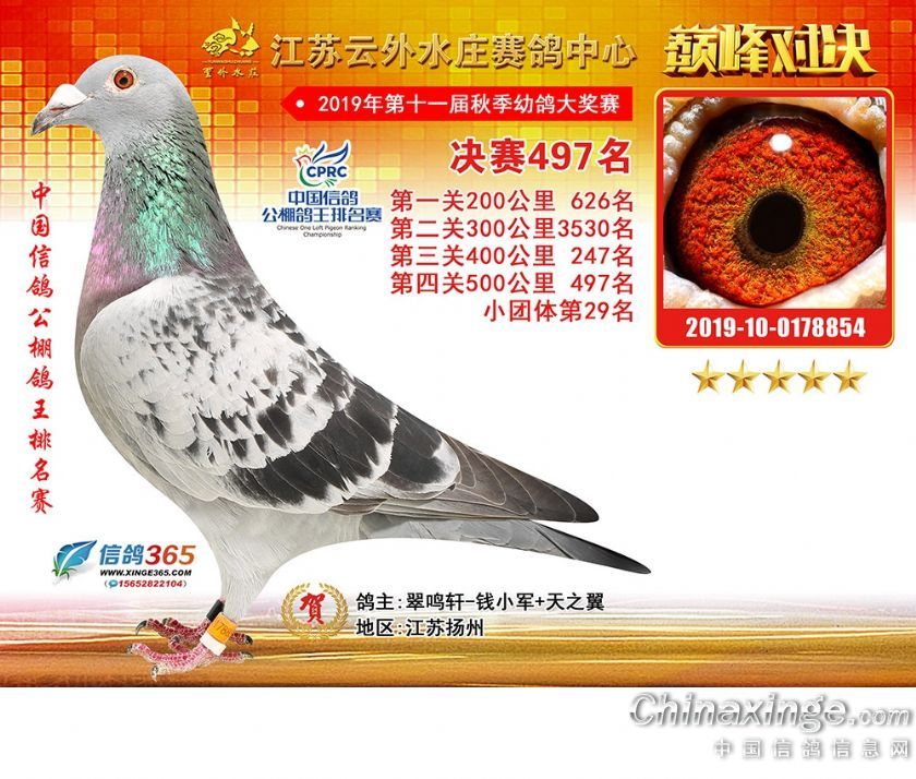 作品说明: 江苏云外水庄赛鸽中心2019年获奖鸽481-510名