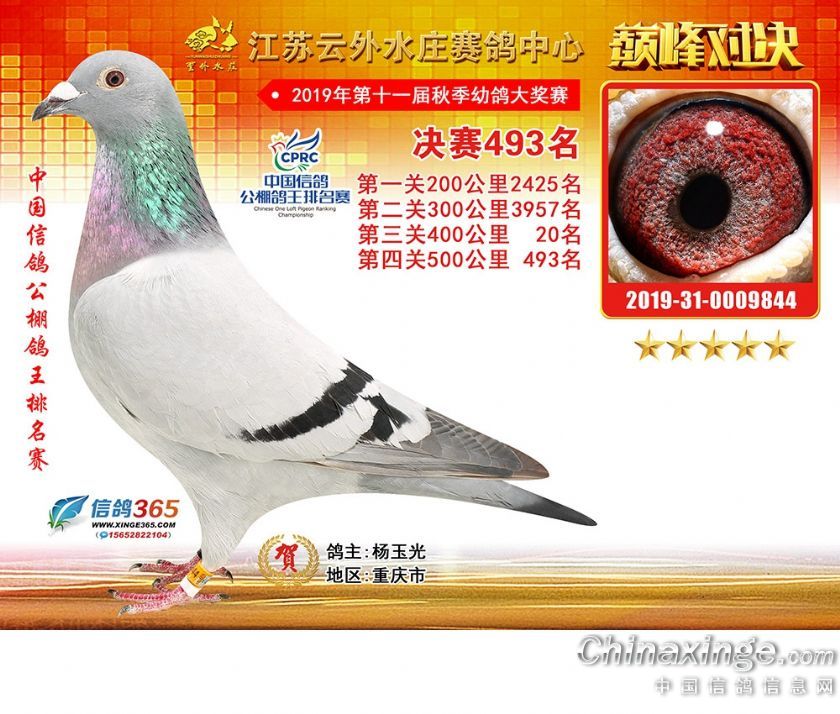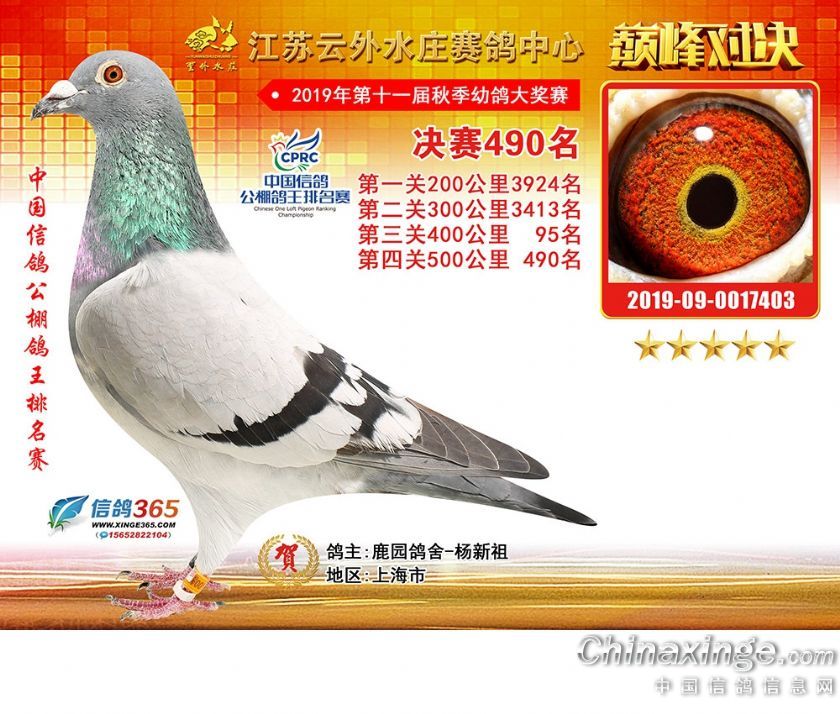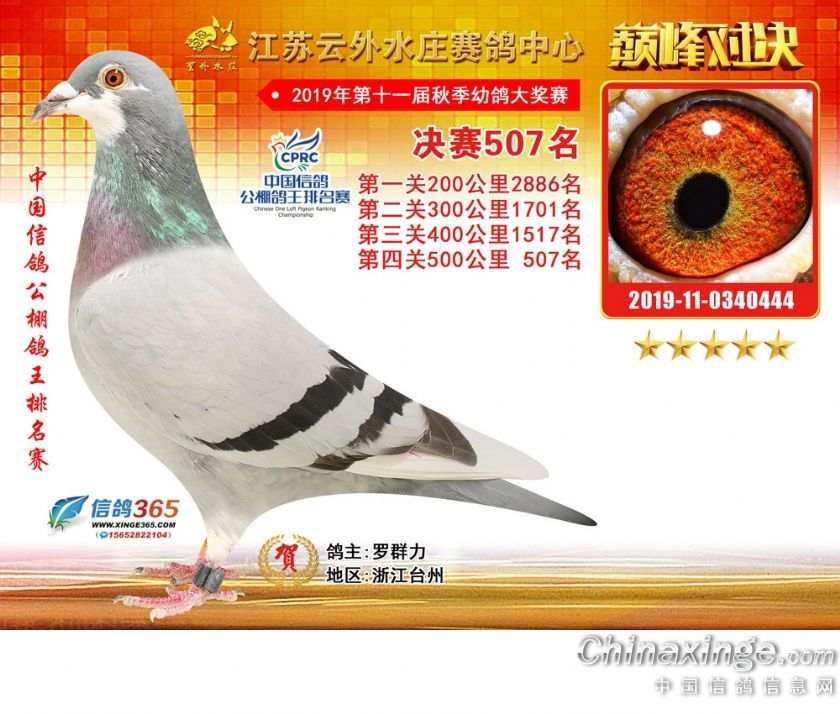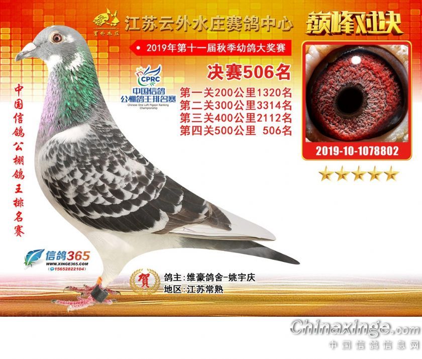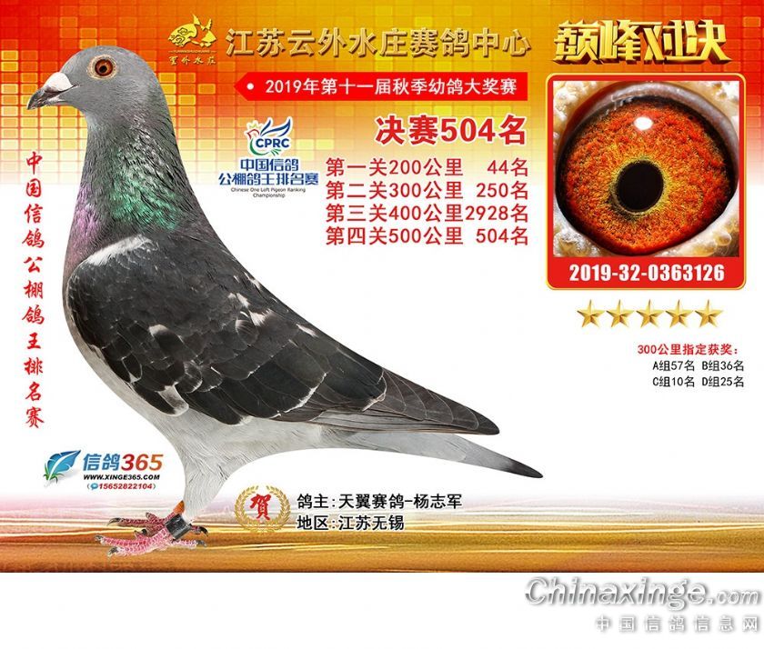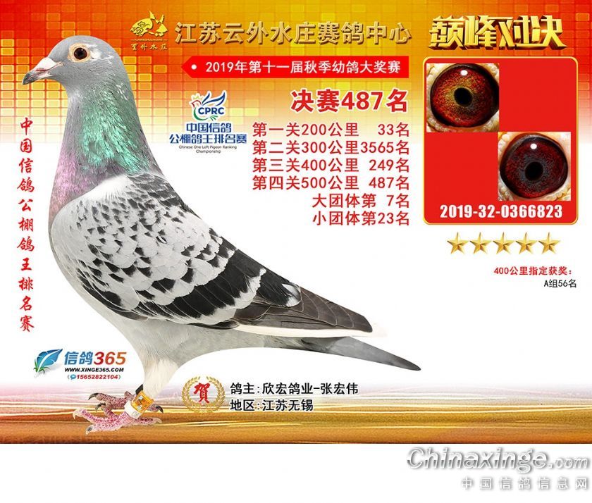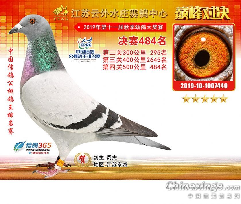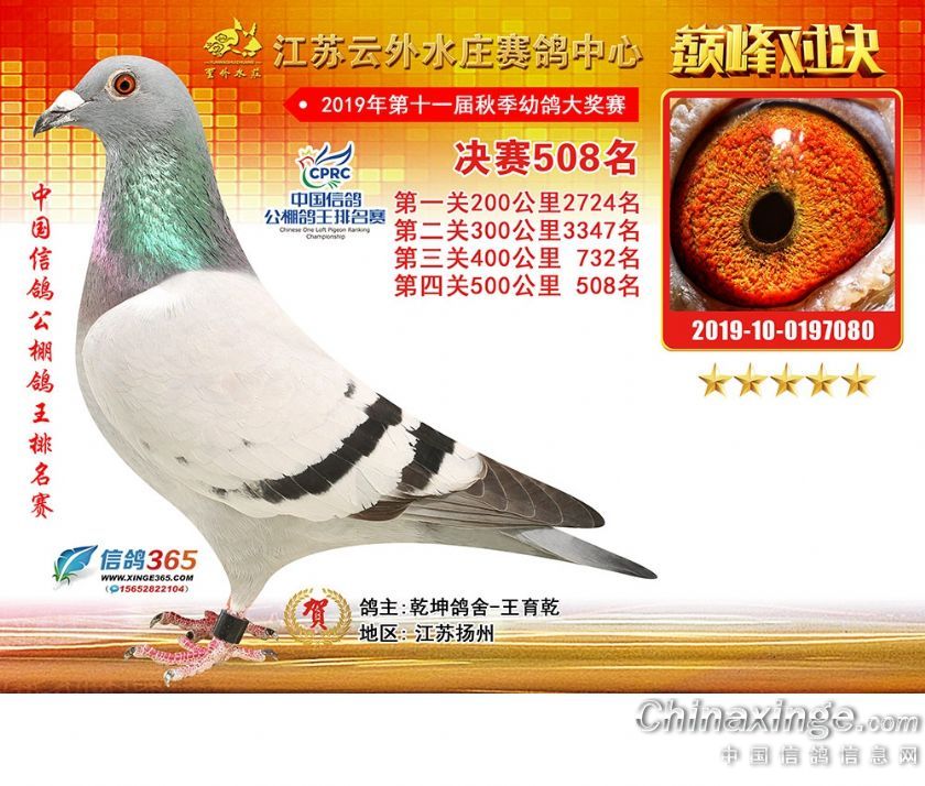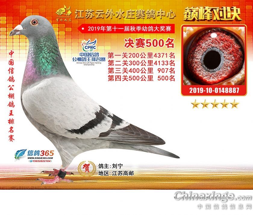 作品说明: 江苏云外水庄赛鸽中心2019年获奖鸽481-510名