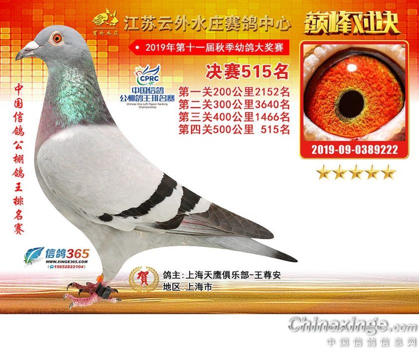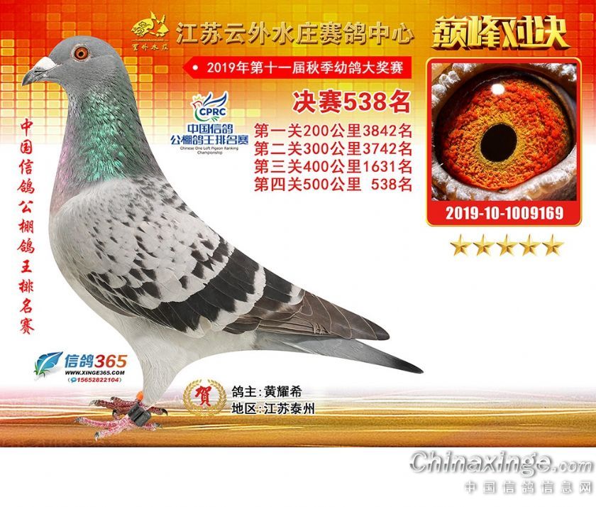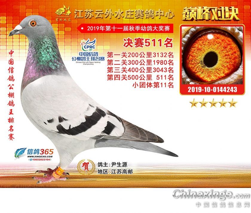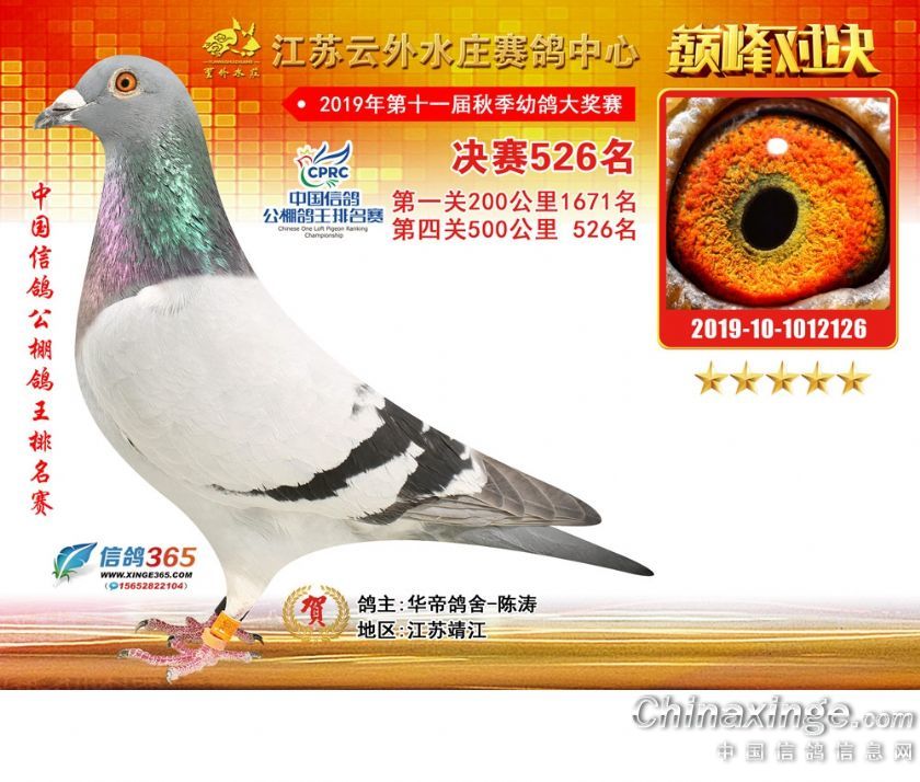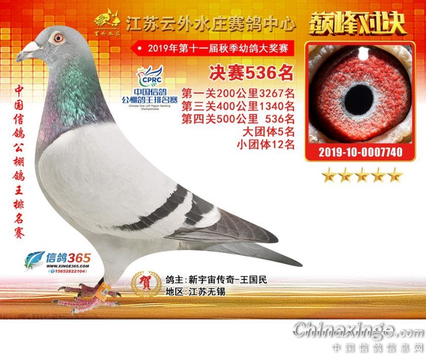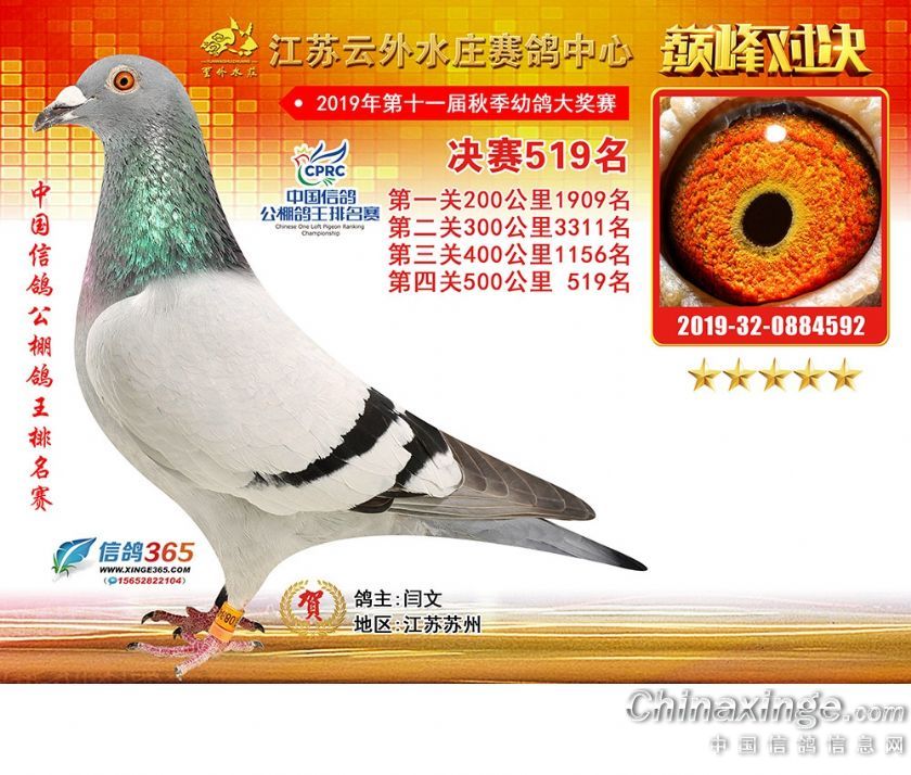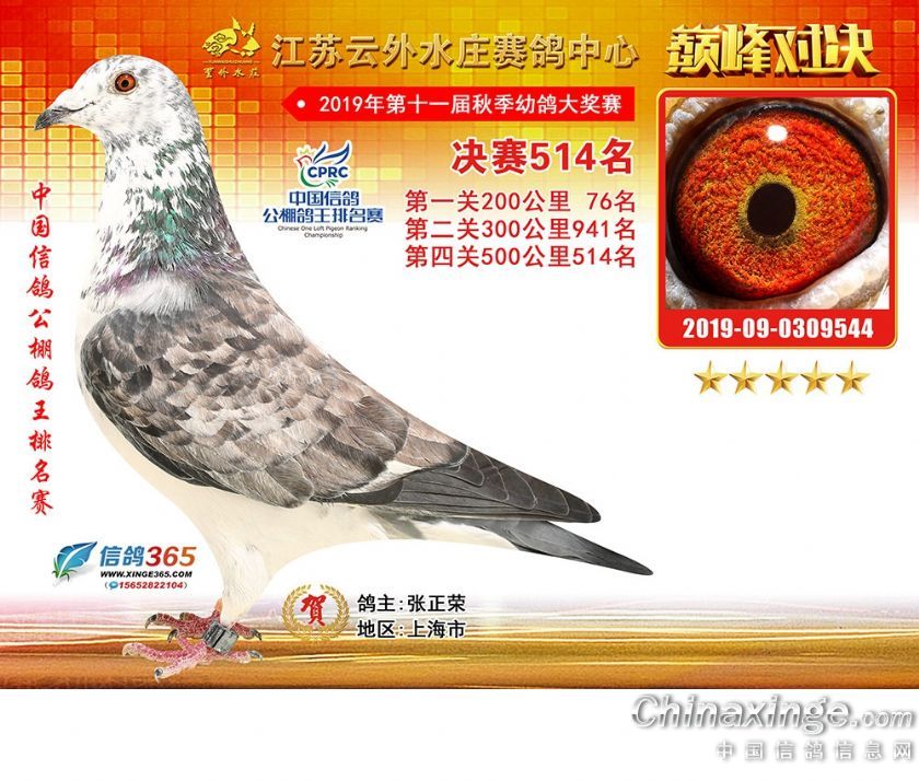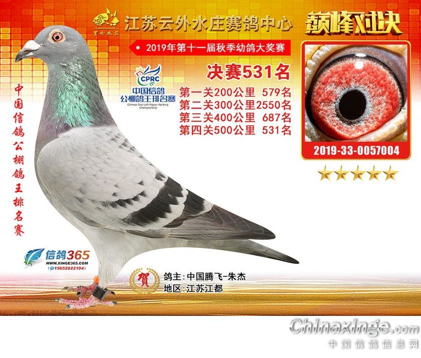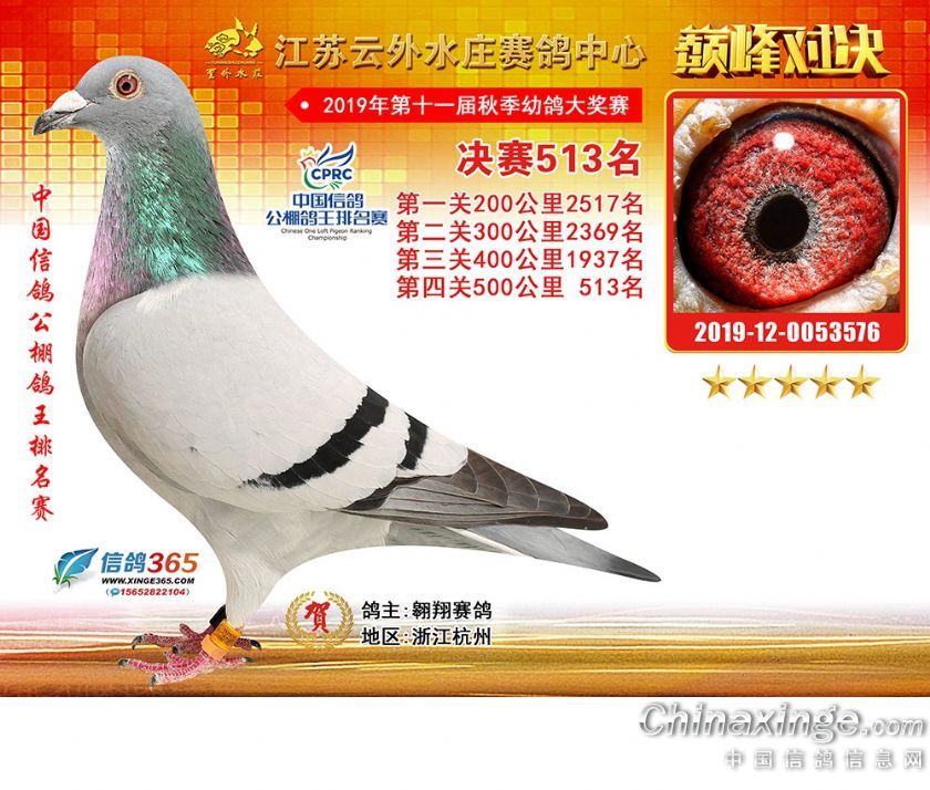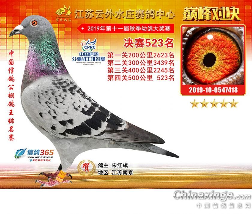 作品说明: 江苏云外水庄赛鸽中心2019年获奖鸽511-540名