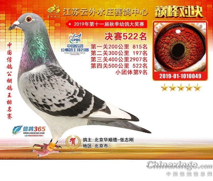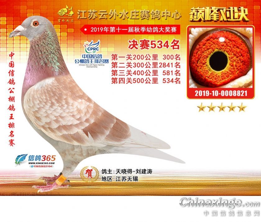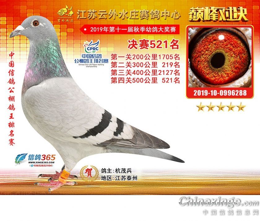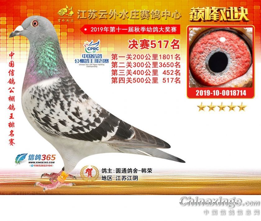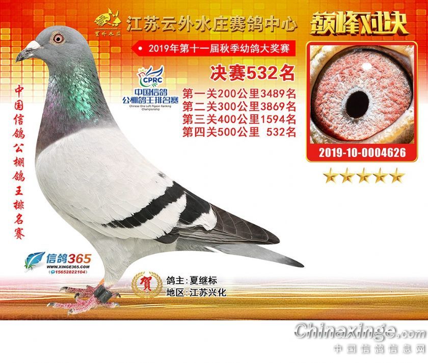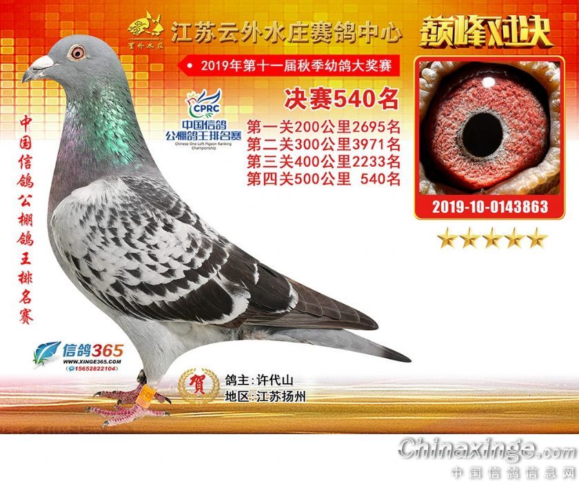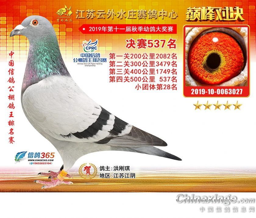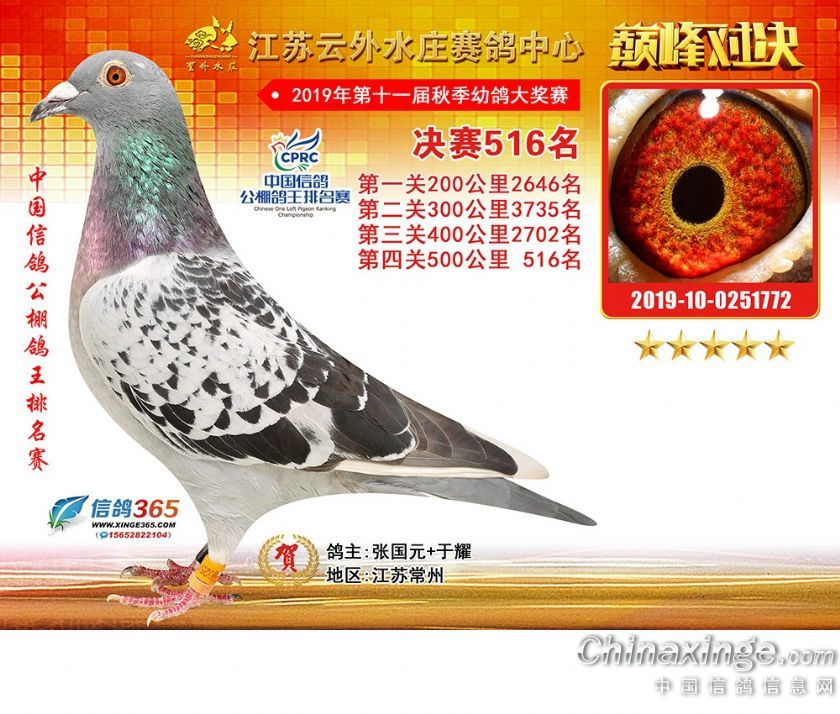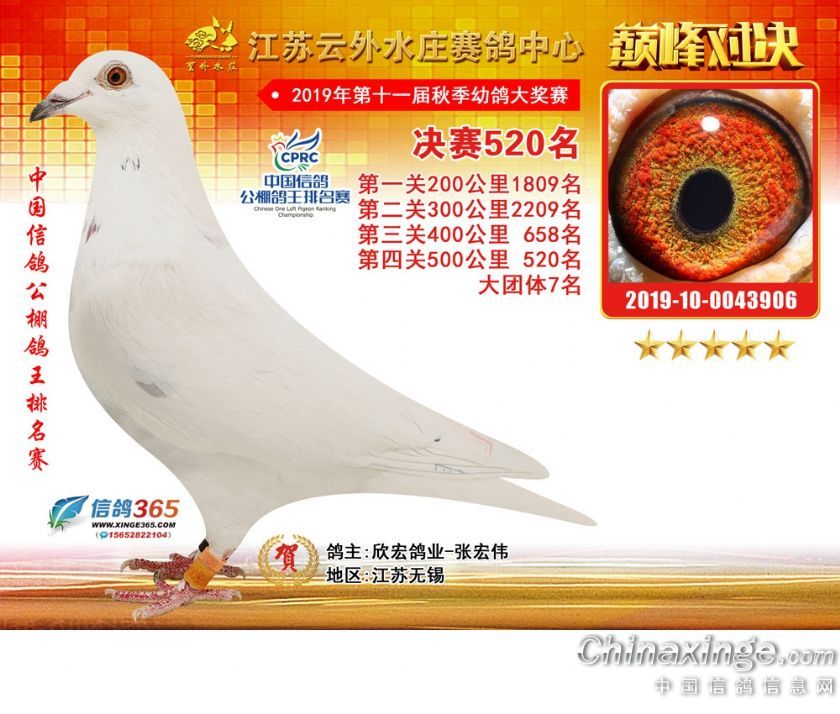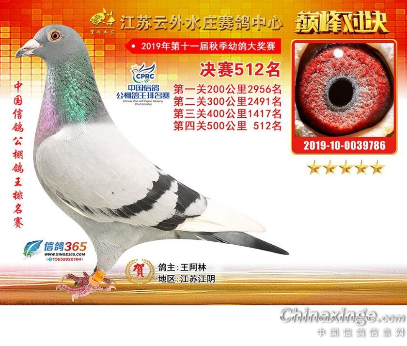 江苏云外水庄赛鸽中心2019年获奖鸽511-540名