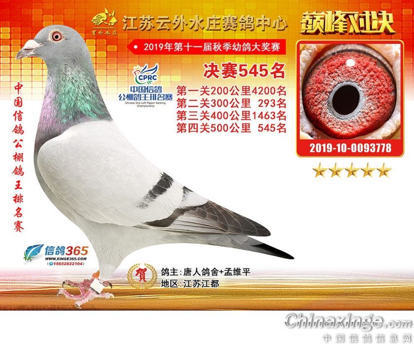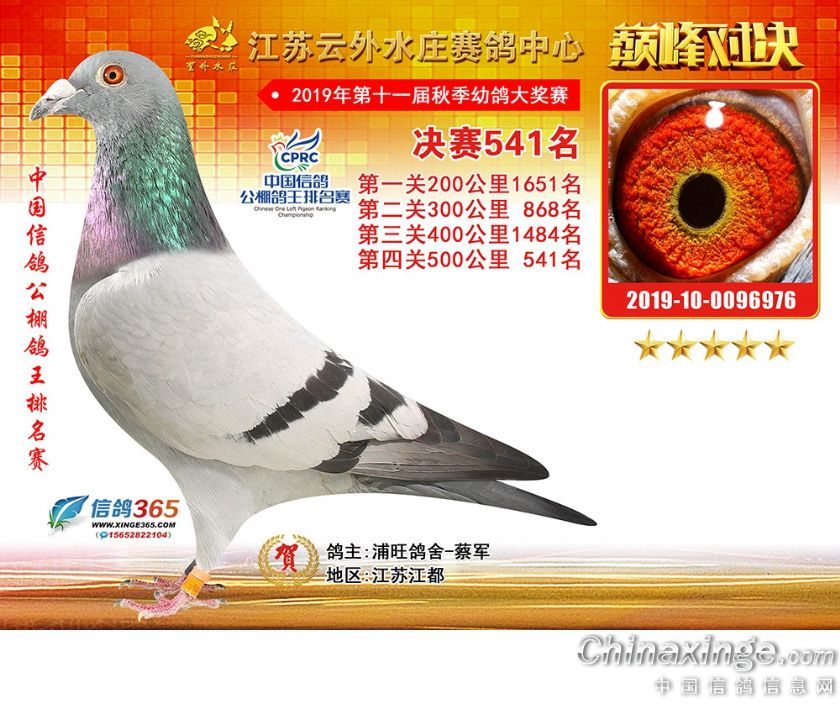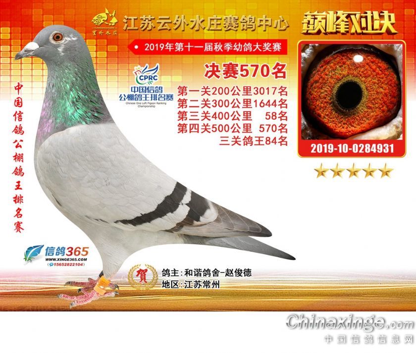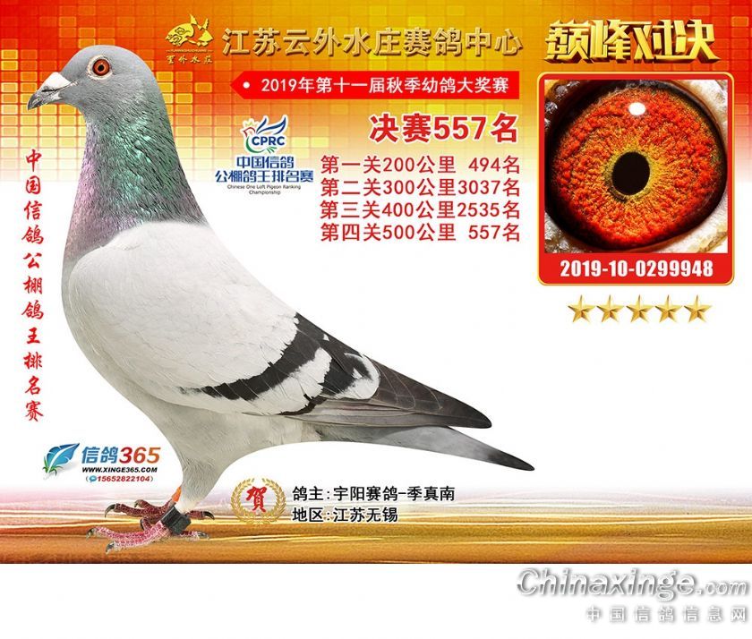 江苏云外水庄赛鸽中心2019年获奖鸽541-570名