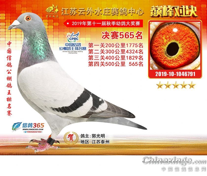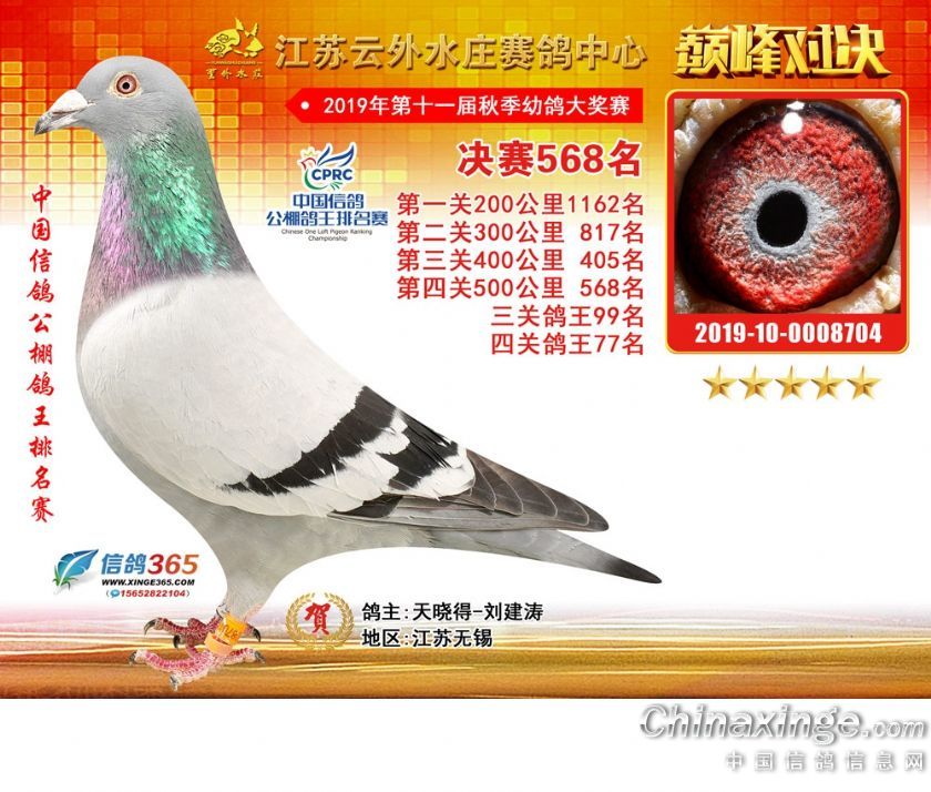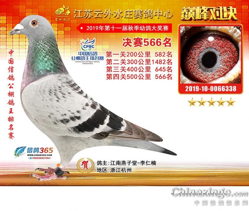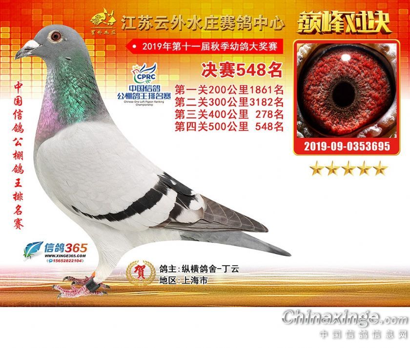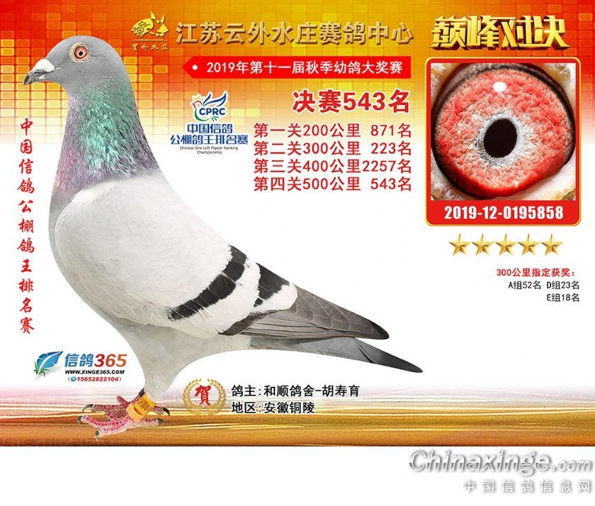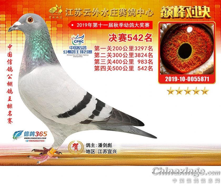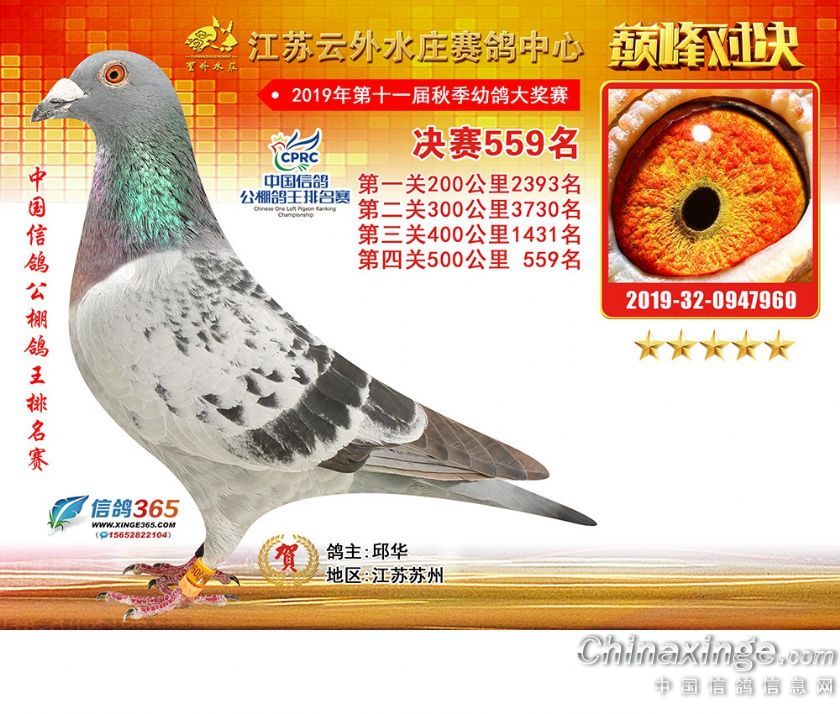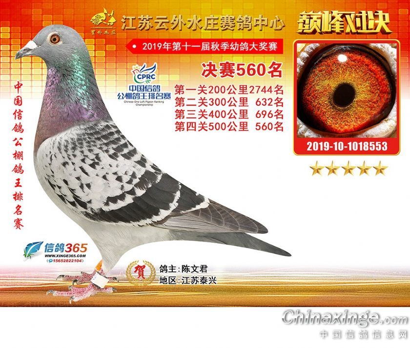 作品说明: 江苏云外水庄赛鸽中心2019年获奖鸽541-570名