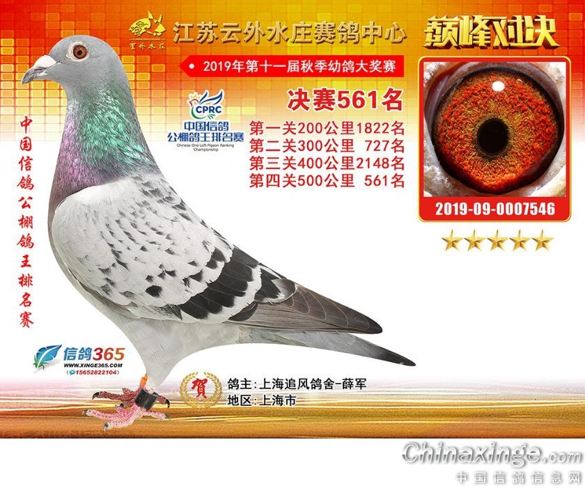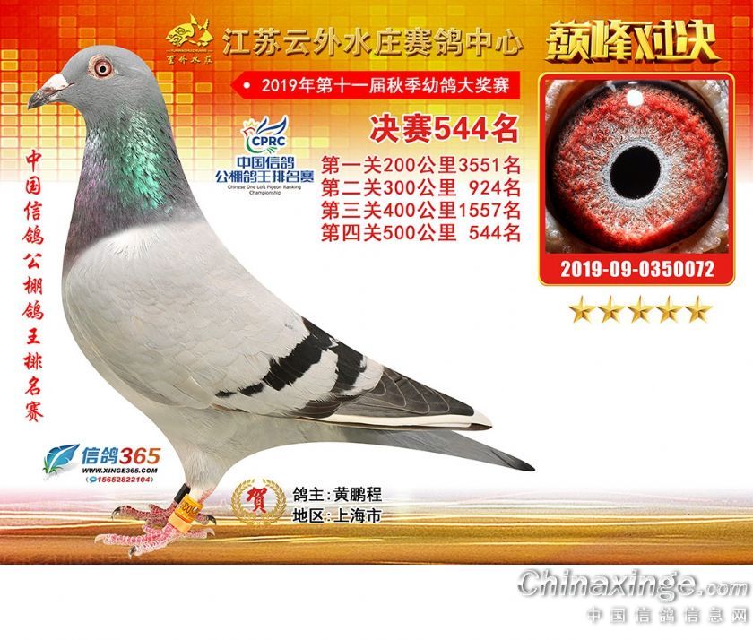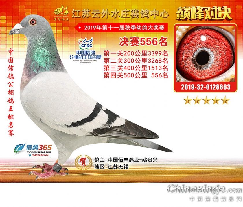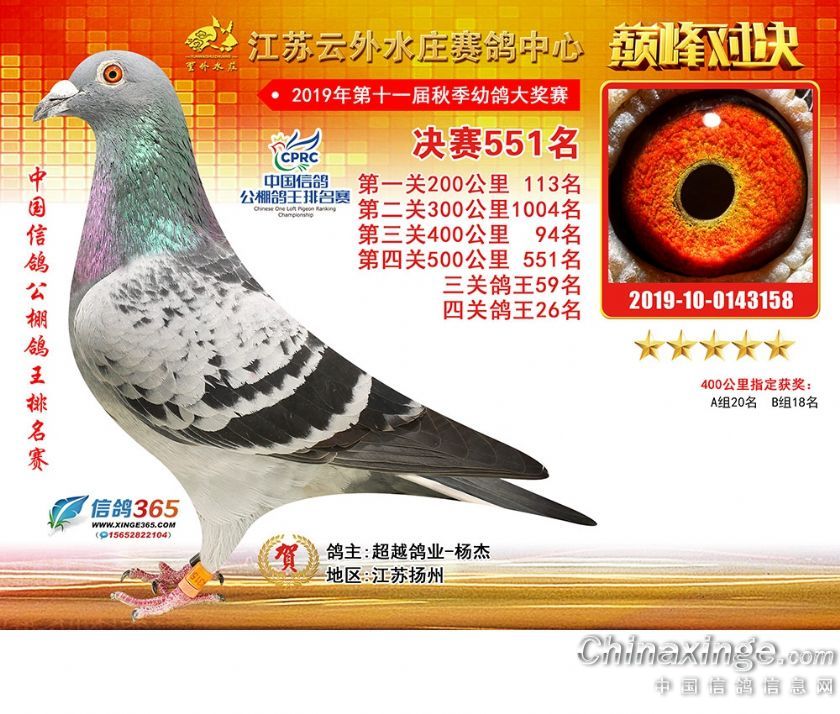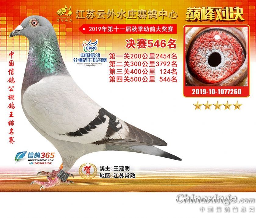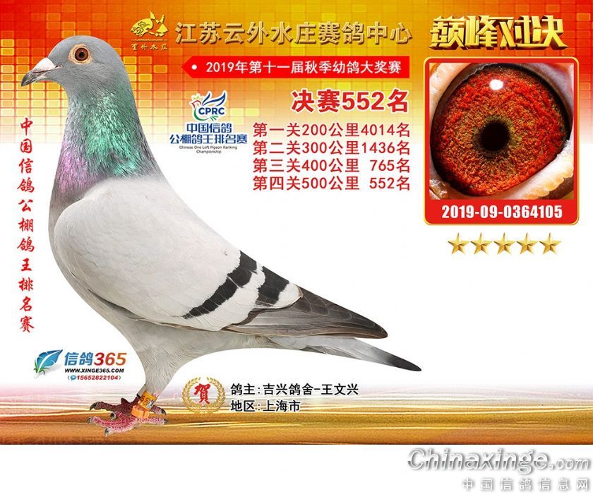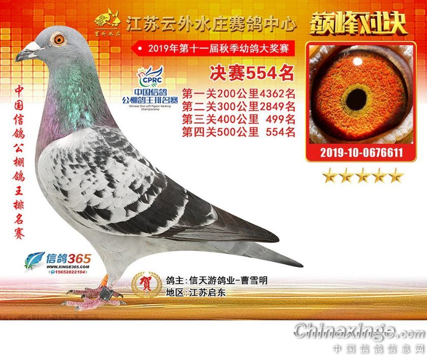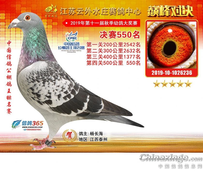 作品说明: 江苏云外水庄赛鸽中心2019年获奖鸽541-570名