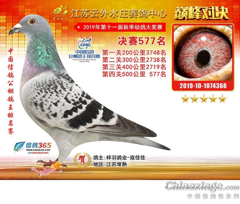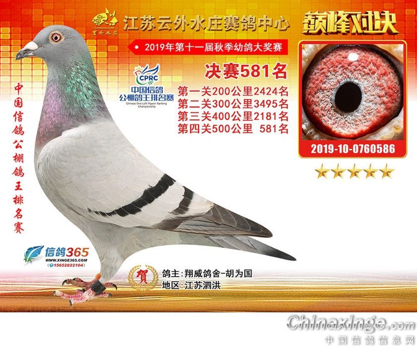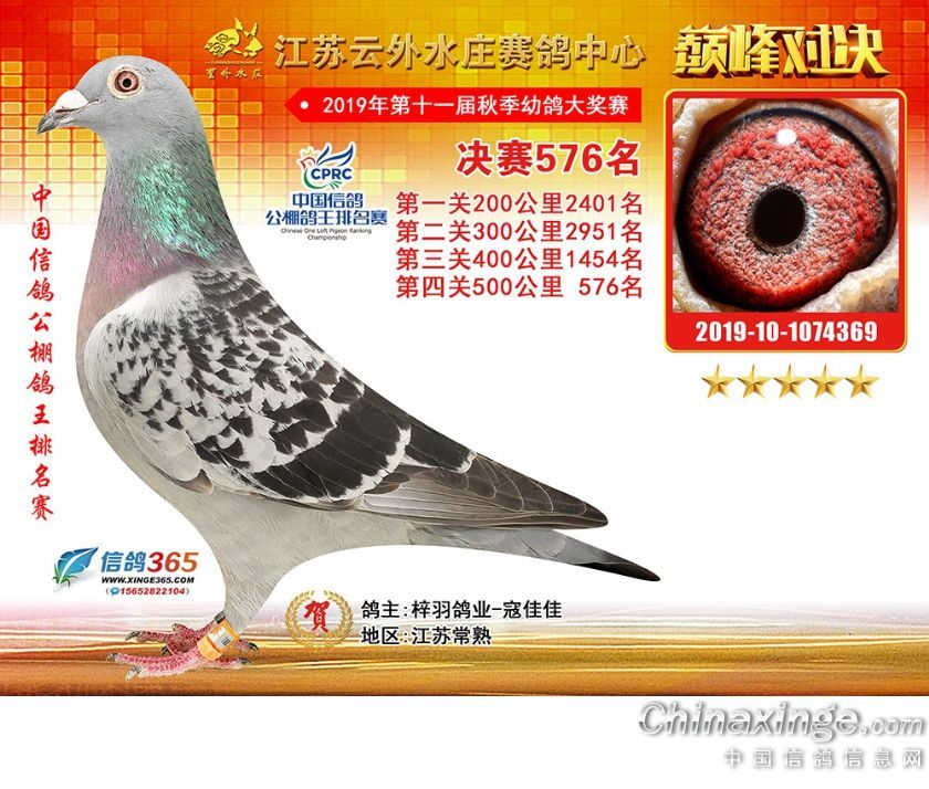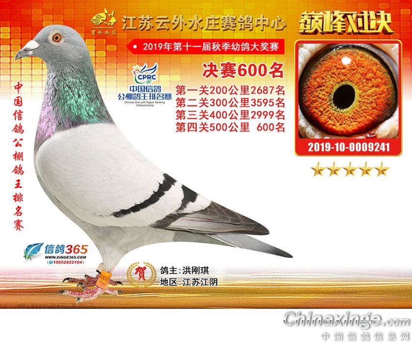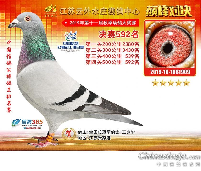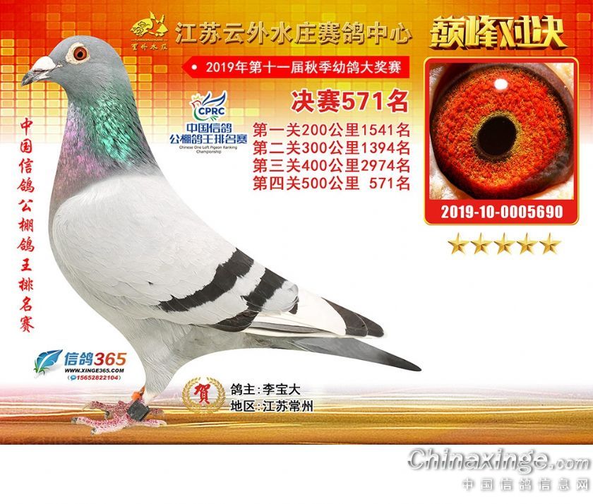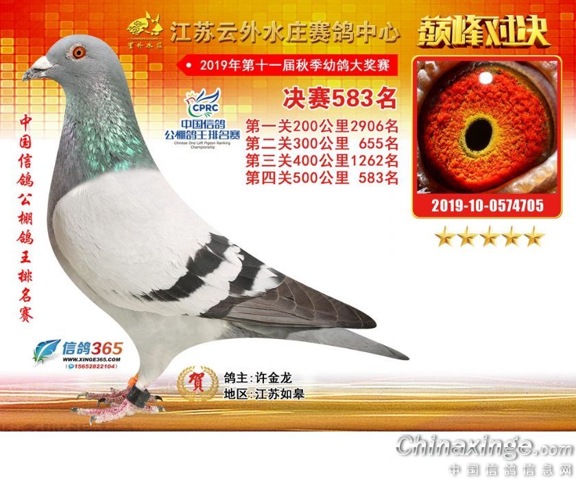 江苏云外水庄赛鸽中心2019年获奖鸽571-600名