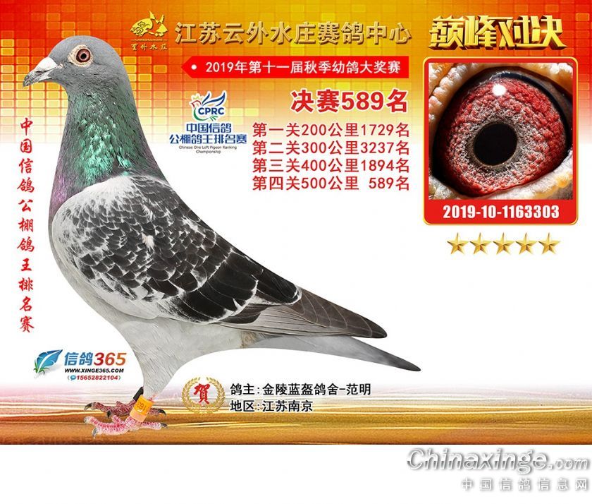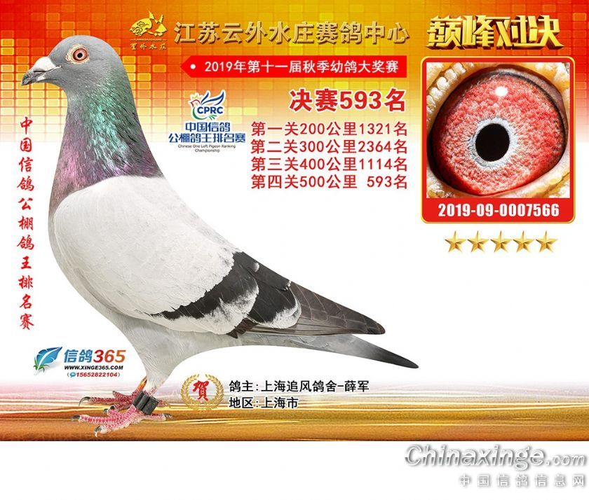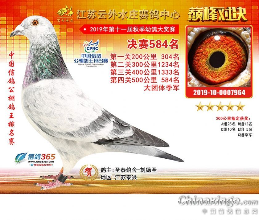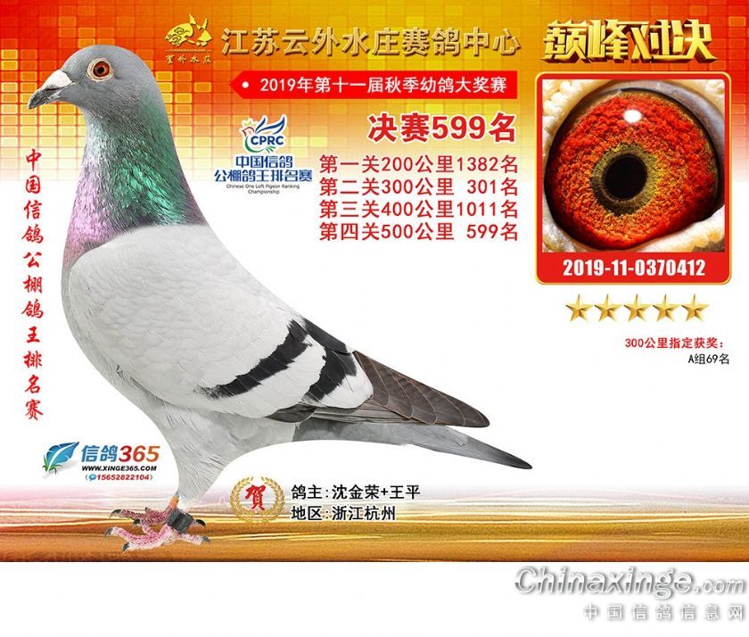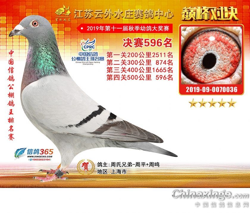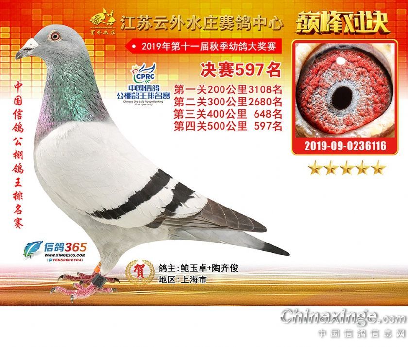 作品说明: 江苏云外水庄赛鸽中心2019年获奖鸽571-600名