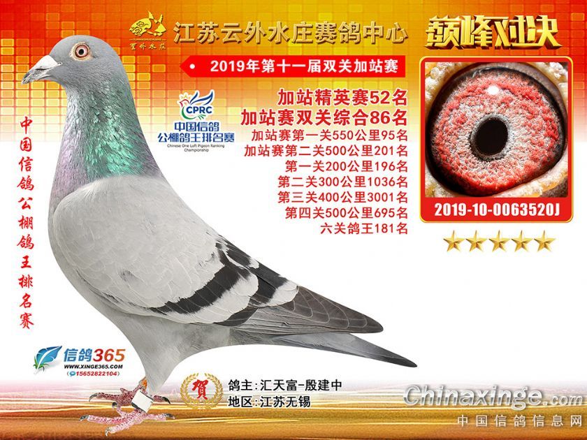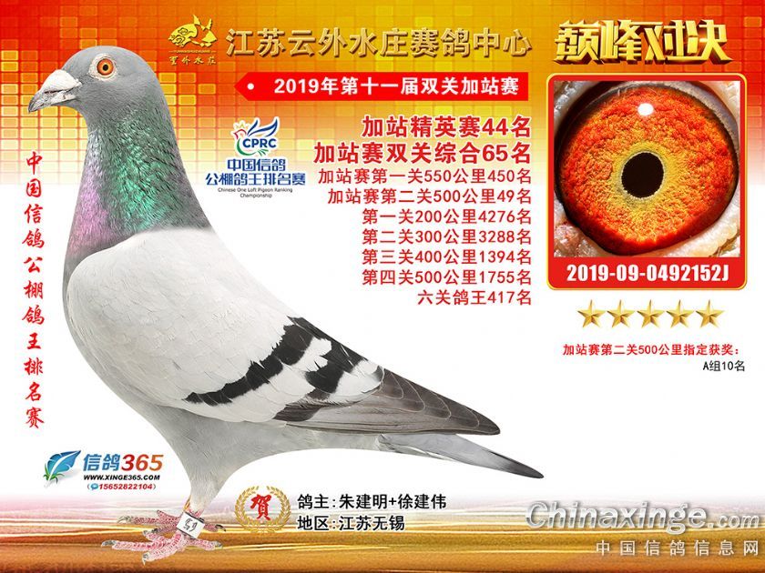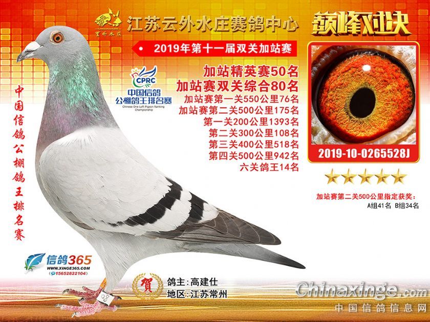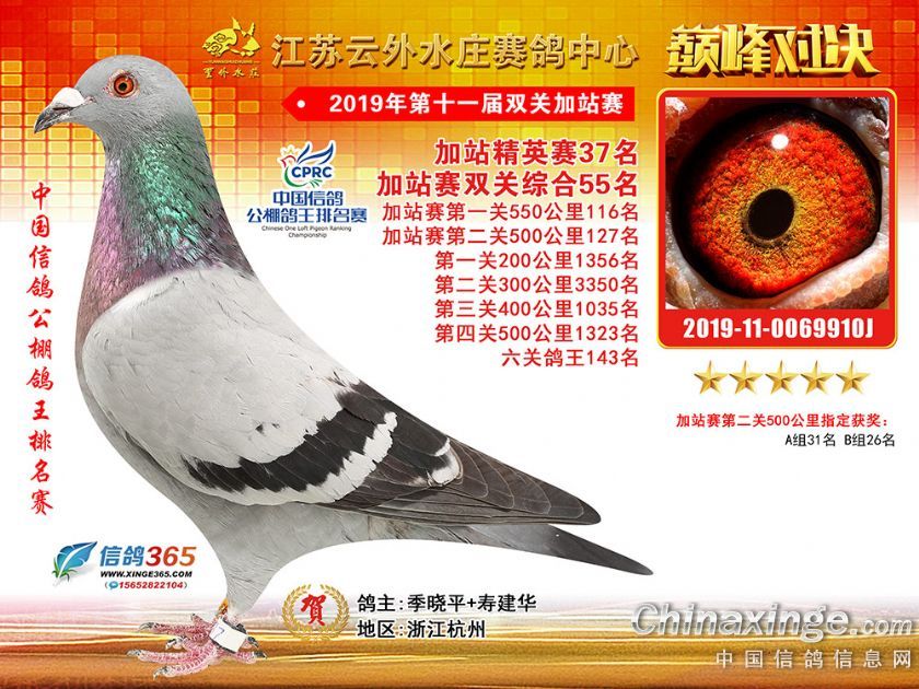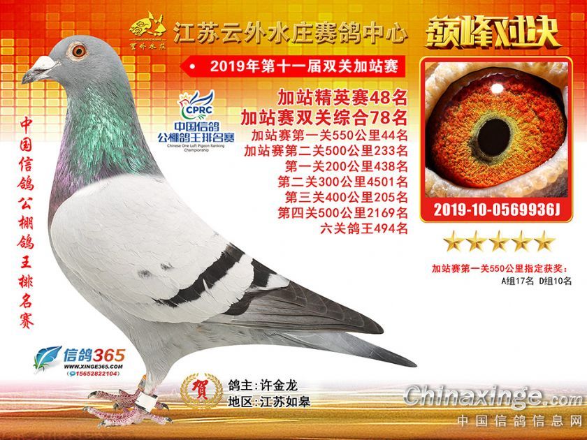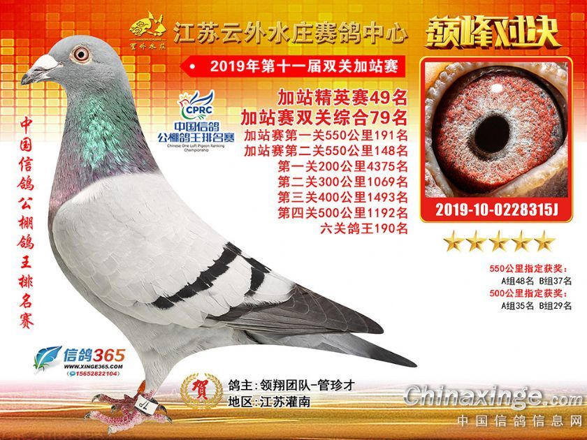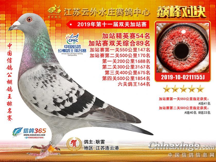 作品说明: 江苏云外水庄赛鸽中心2019年双关加站赛51-89名