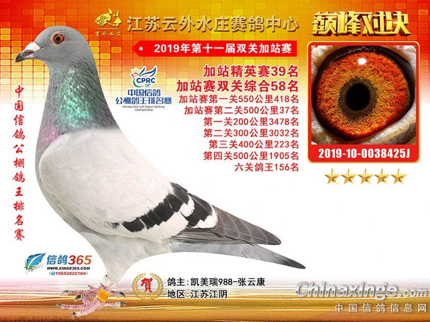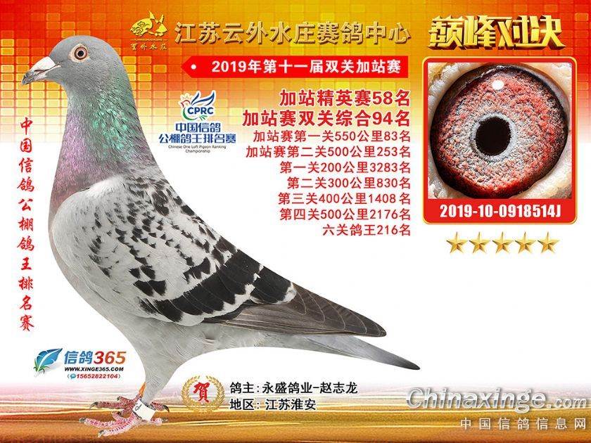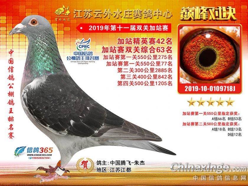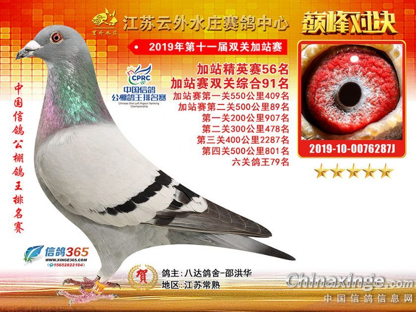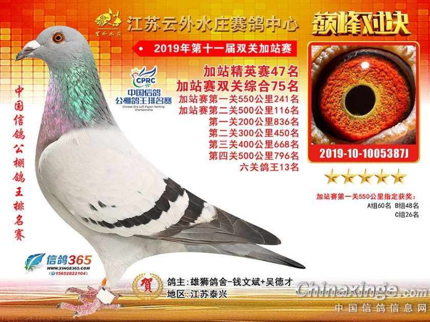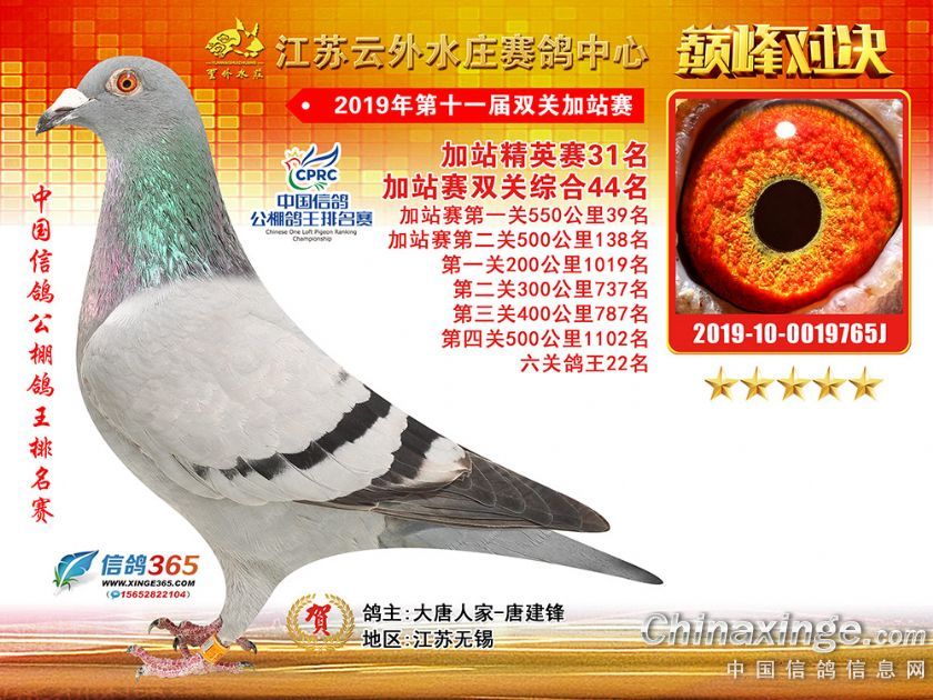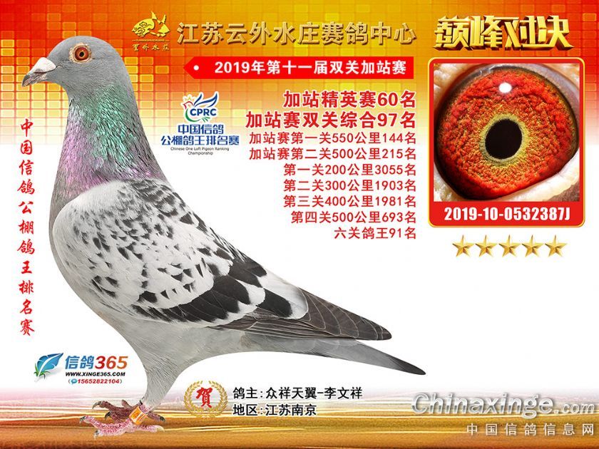 作品说明: 江苏云外水庄赛鸽中心2019年双关加站精英赛获奖鸽31-60名