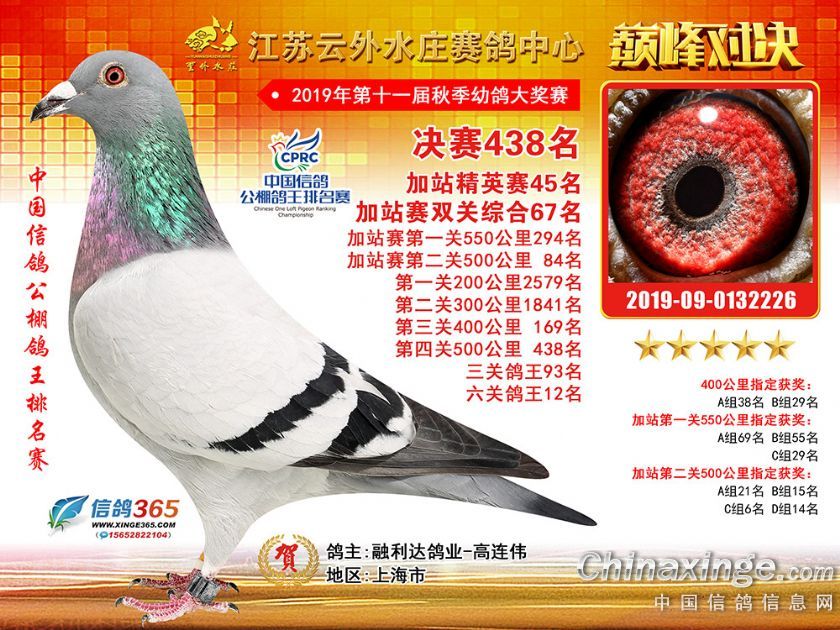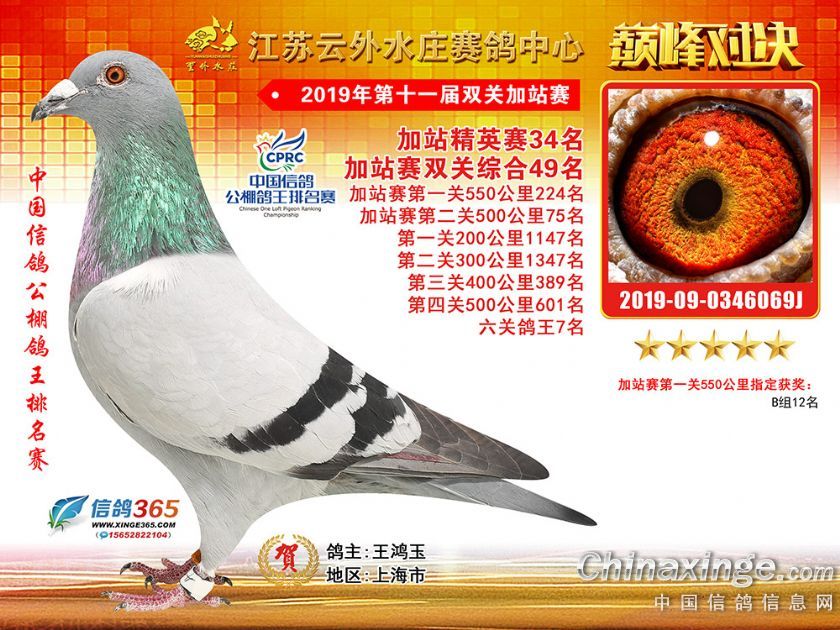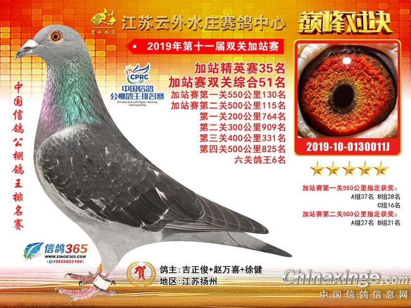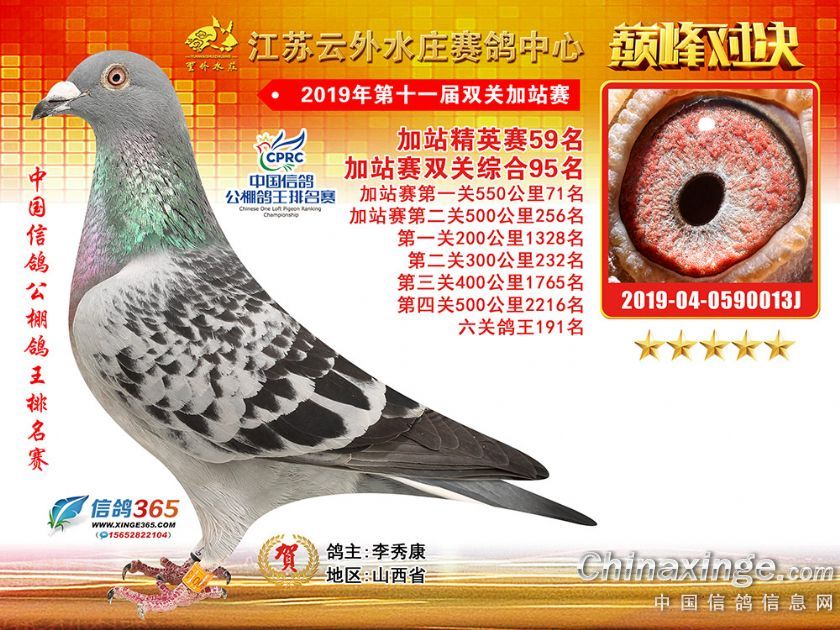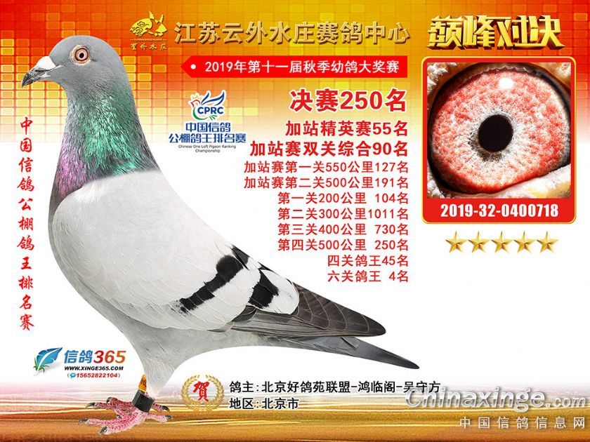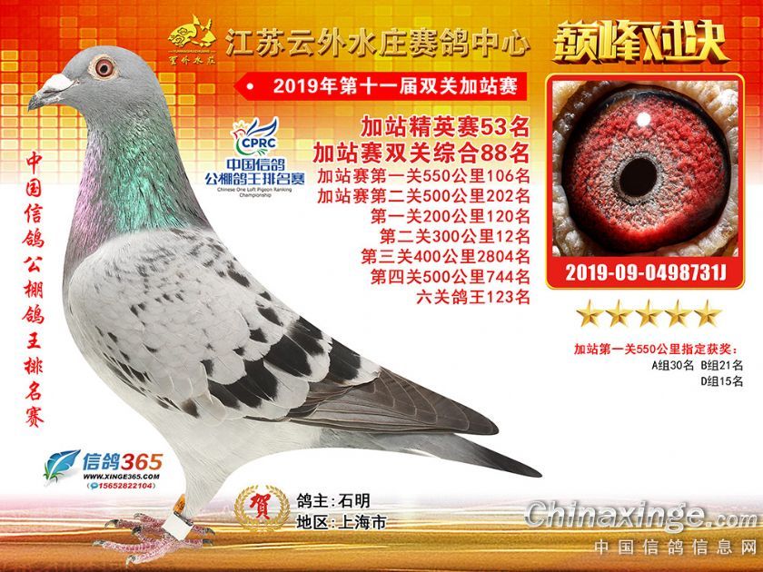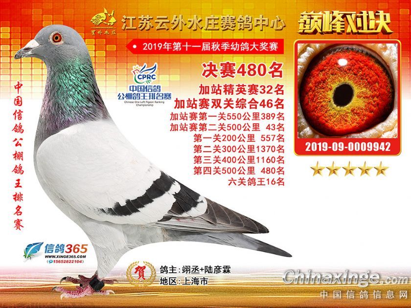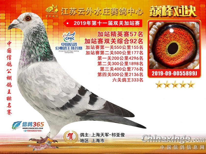 作品说明: 江苏云外水庄赛鸽中心2019年双关加站精英赛获奖鸽31-60名