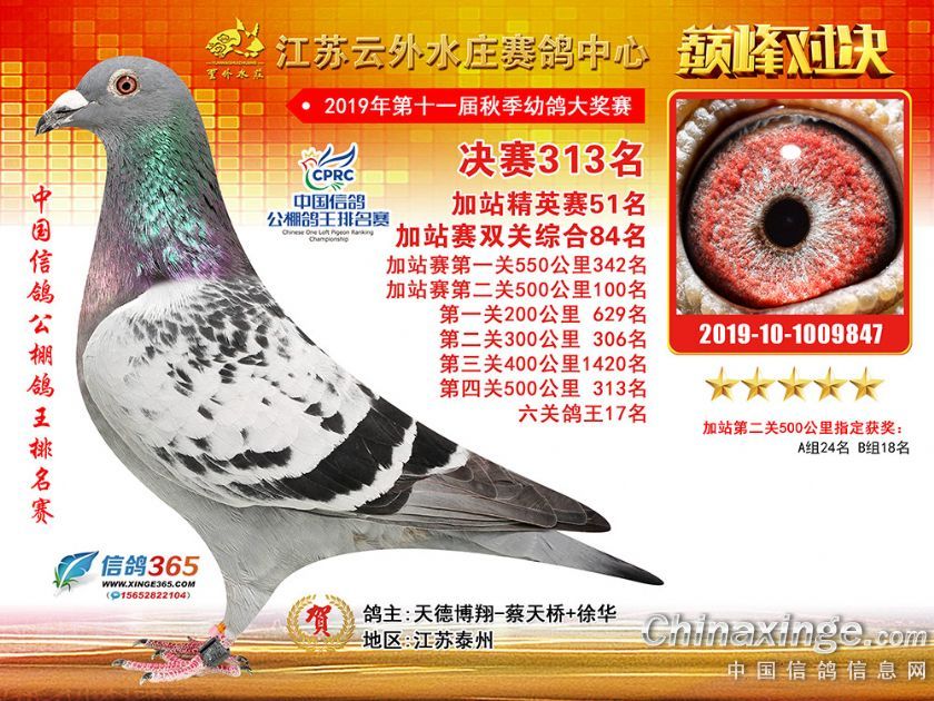 江苏云外水庄赛鸽中心2019年双关加站精英赛获奖鸽31-60名