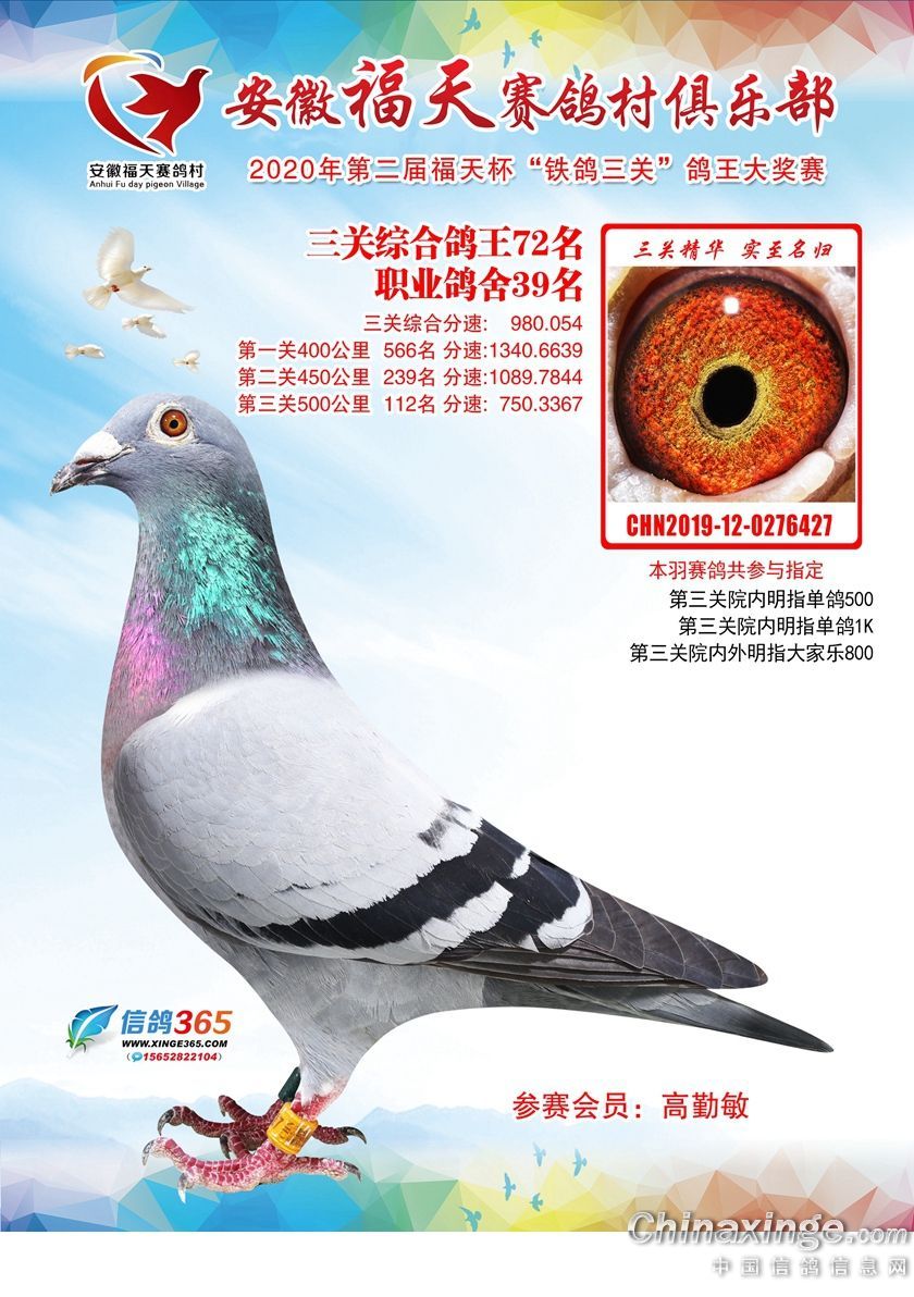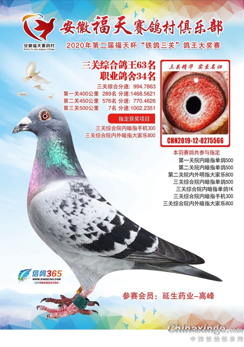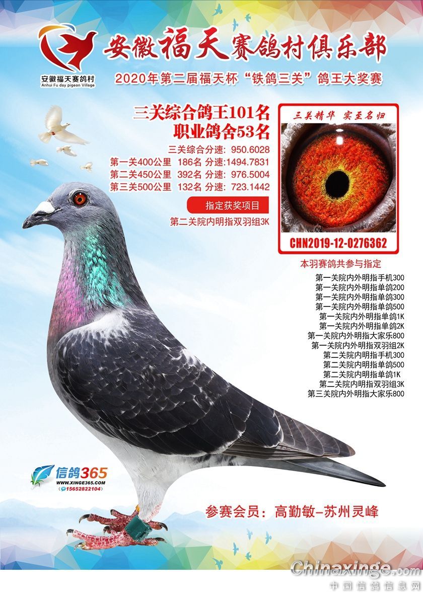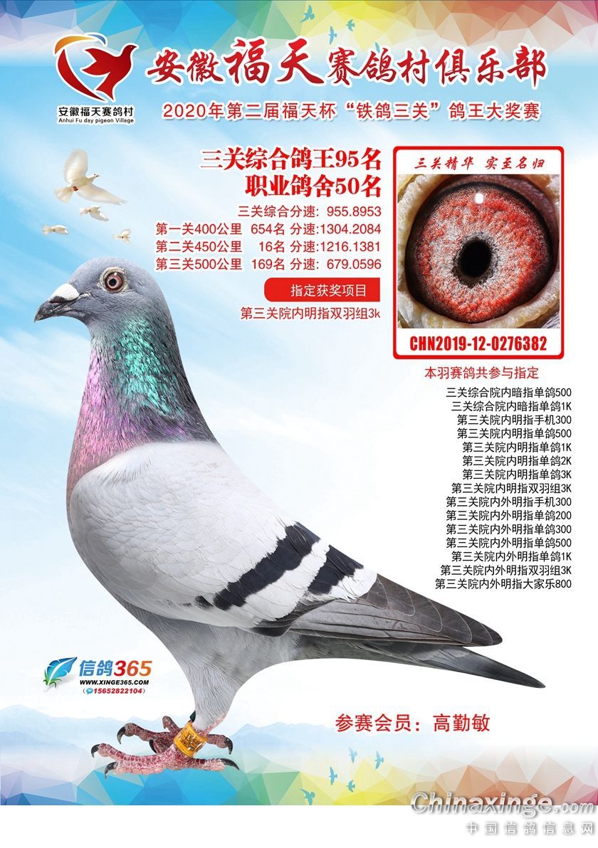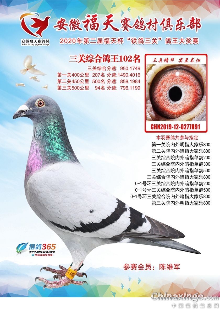 作品说明: 安徽福天俱乐部2020年铁鸽三关鸽王优胜鸽欣赏61-120名
