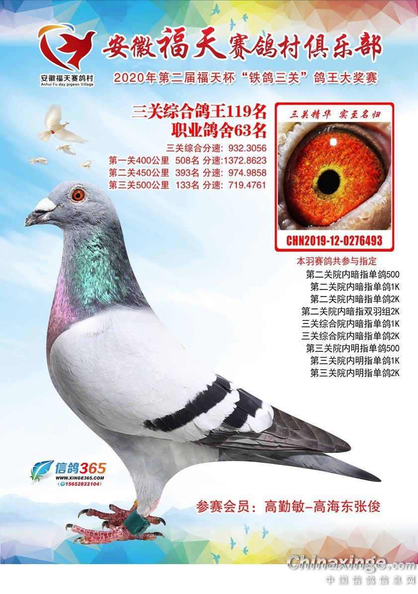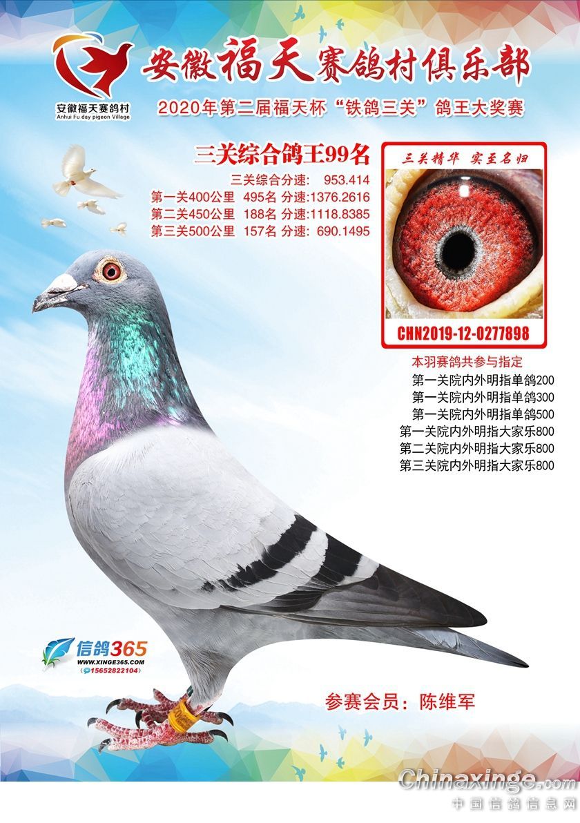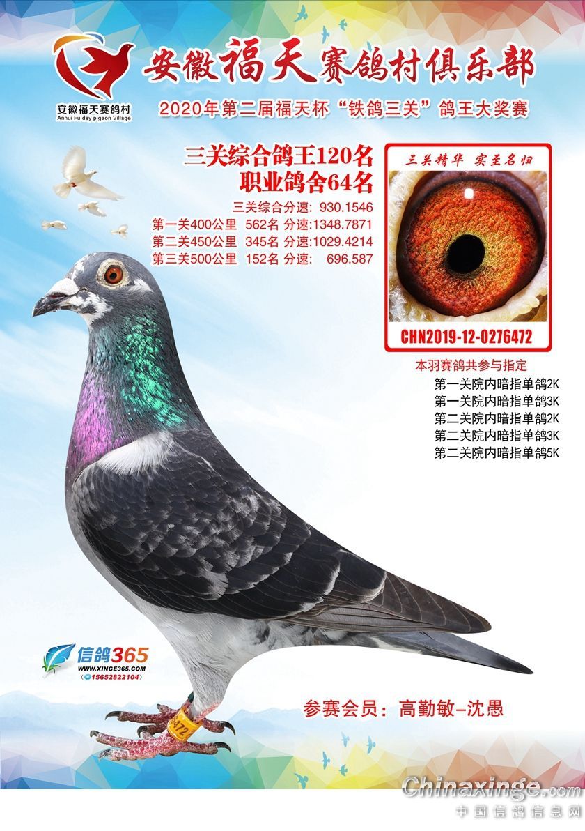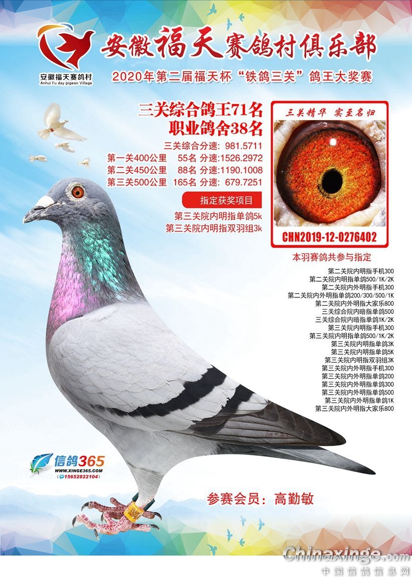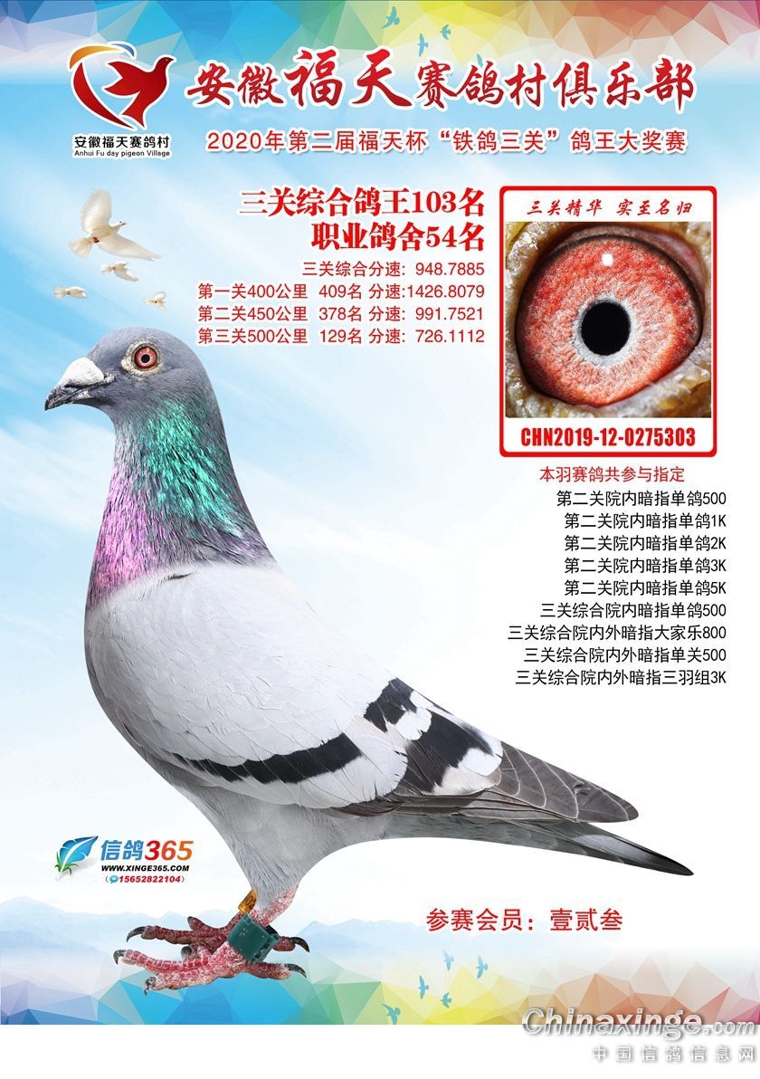 作品说明: 安徽福天俱乐部2020年铁鸽三关鸽王优胜鸽欣赏61-120名