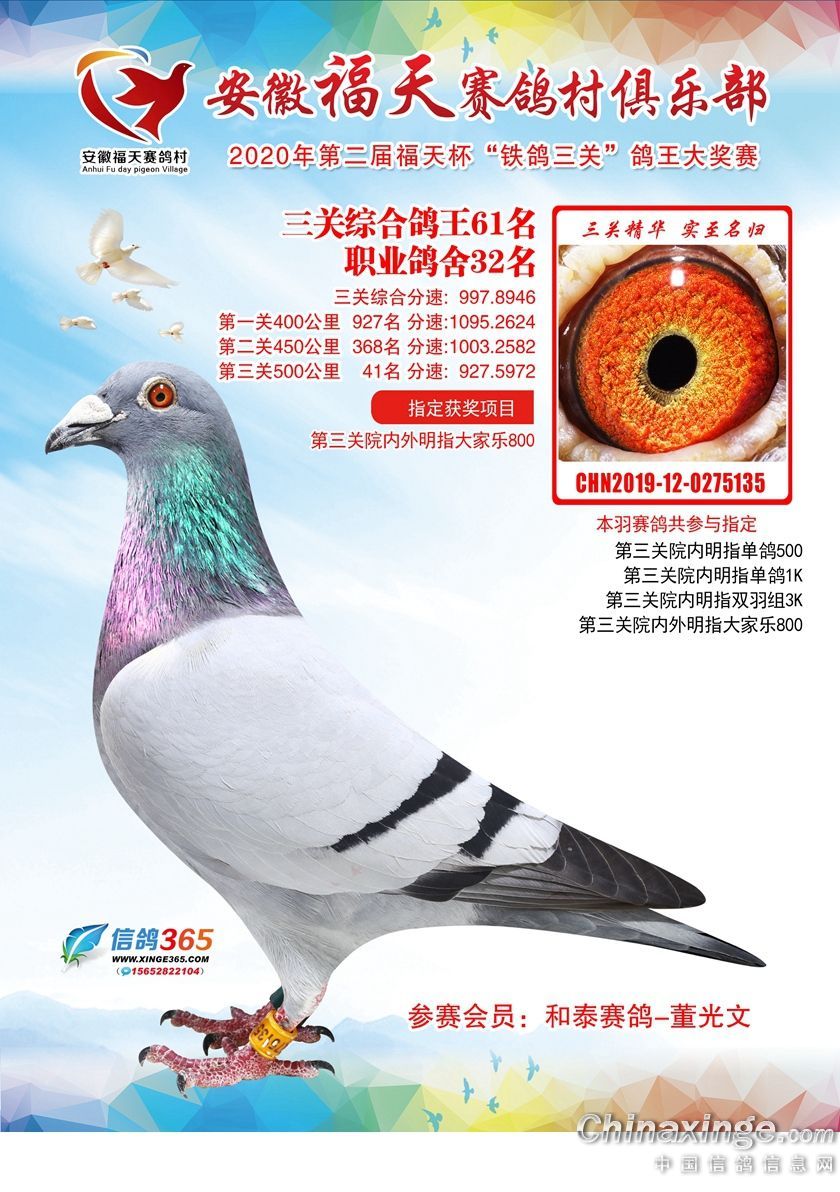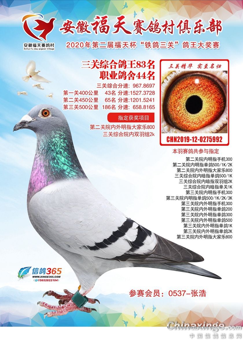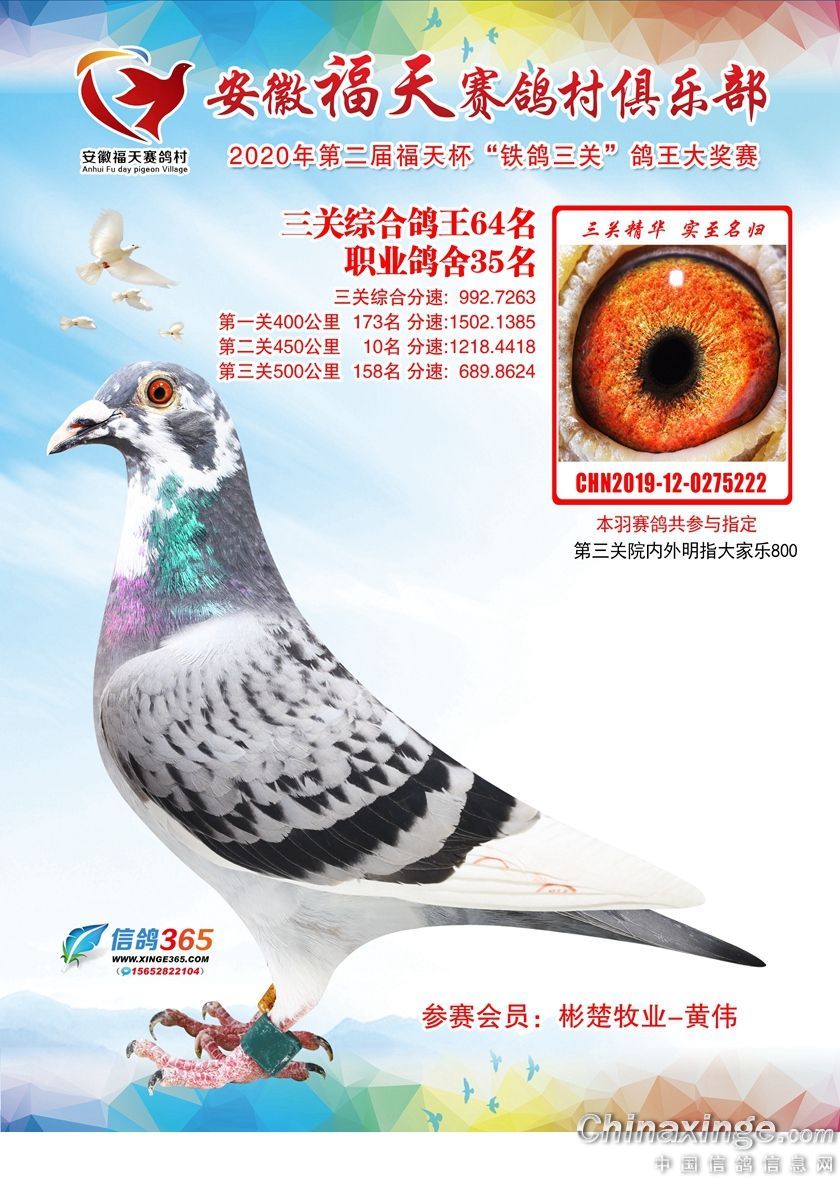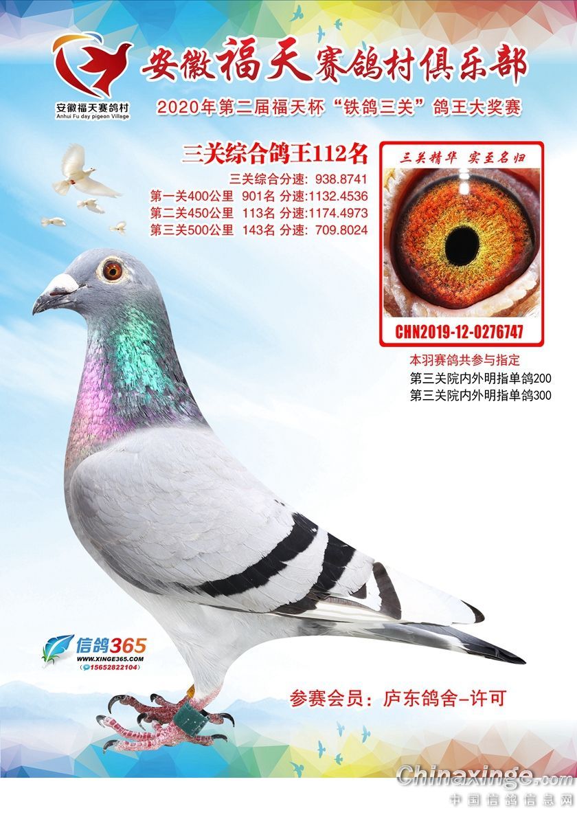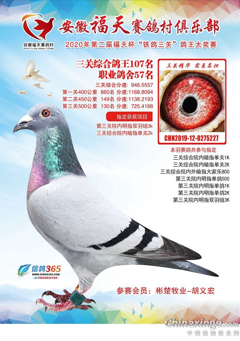 作品说明: 安徽福天俱乐部2020年铁鸽三关鸽王优胜鸽欣赏61-120名