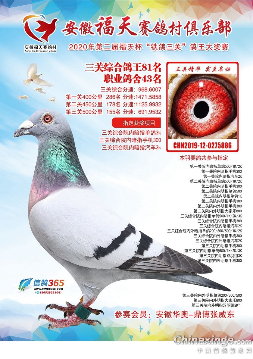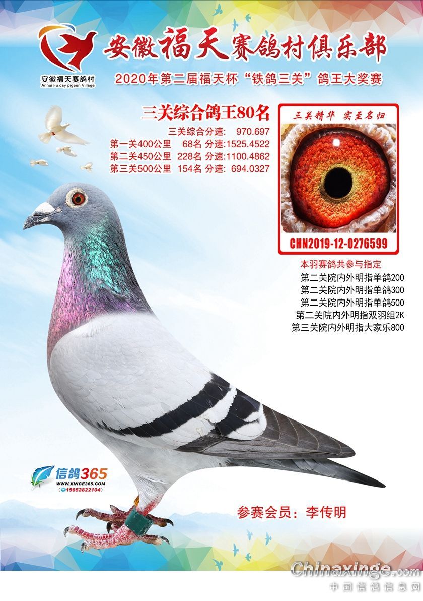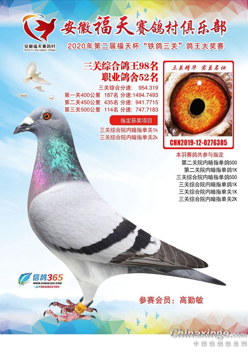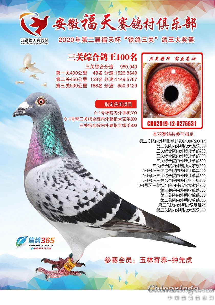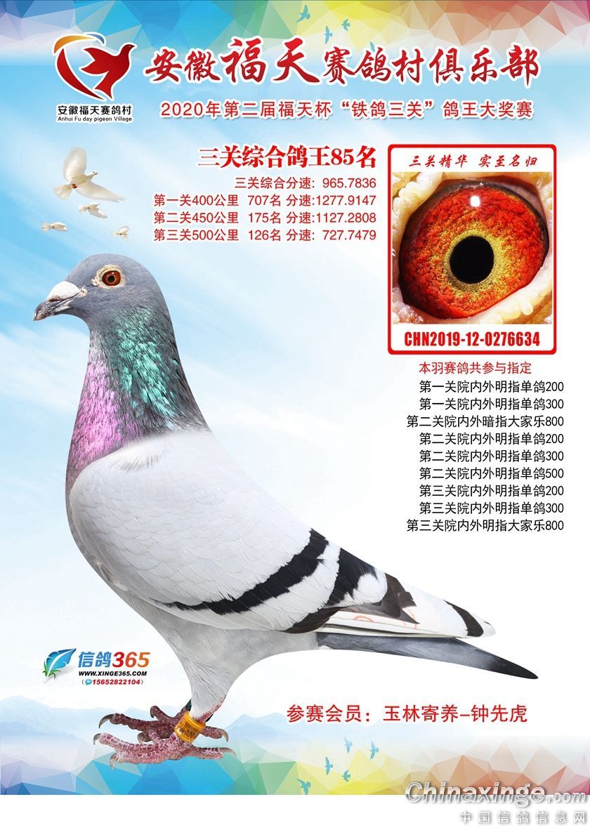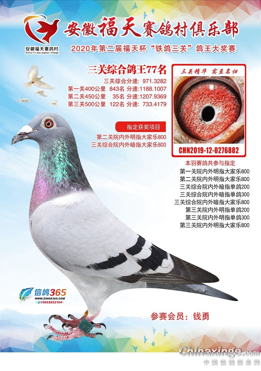 安徽福天俱乐部2020年铁鸽三关鸽王优胜鸽欣赏61-120名