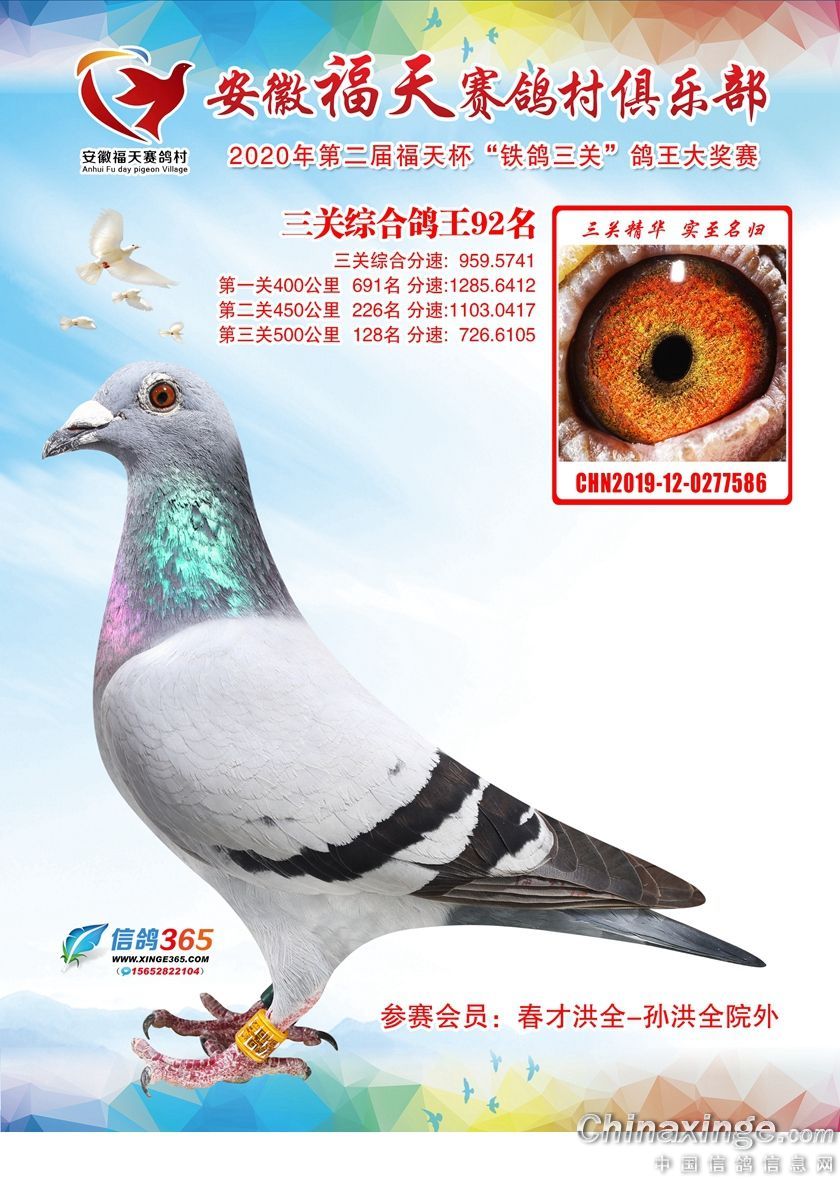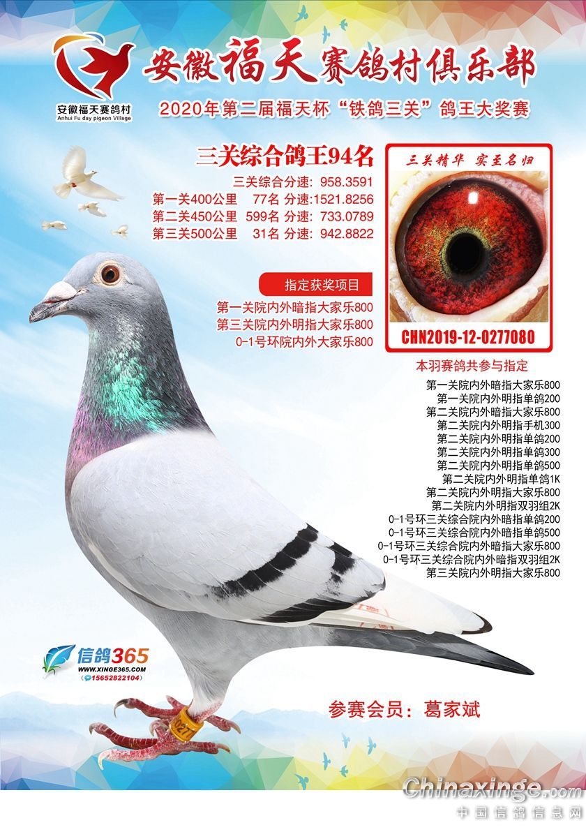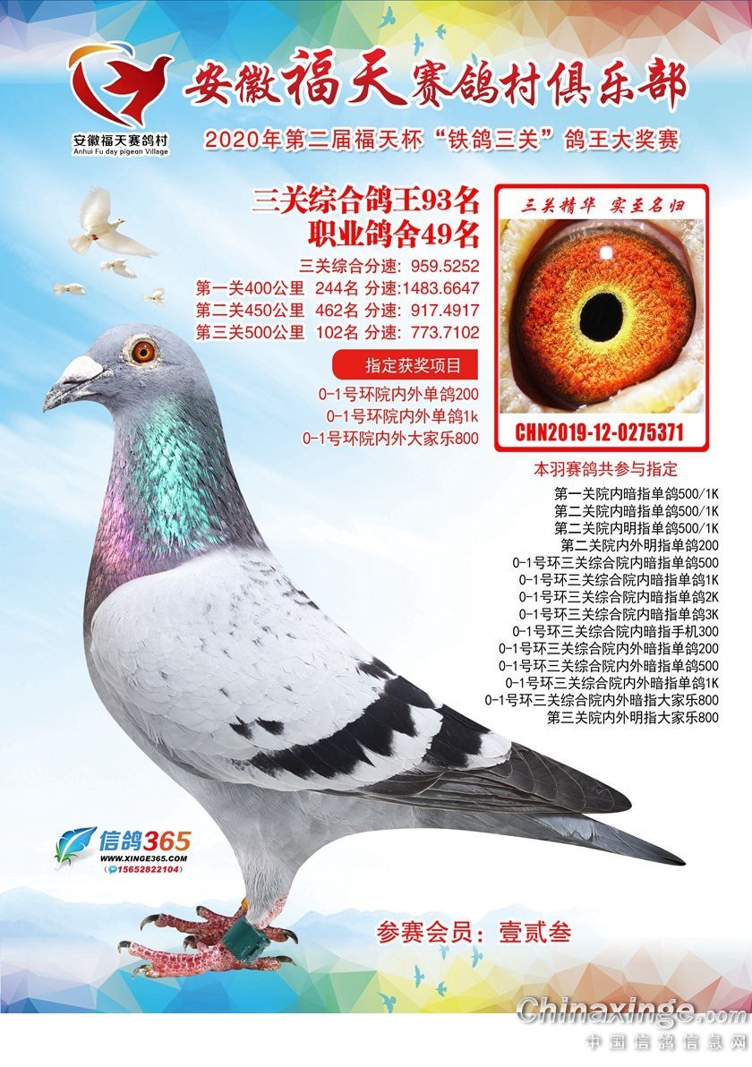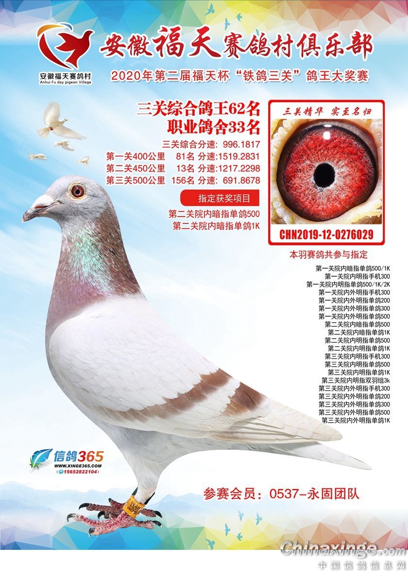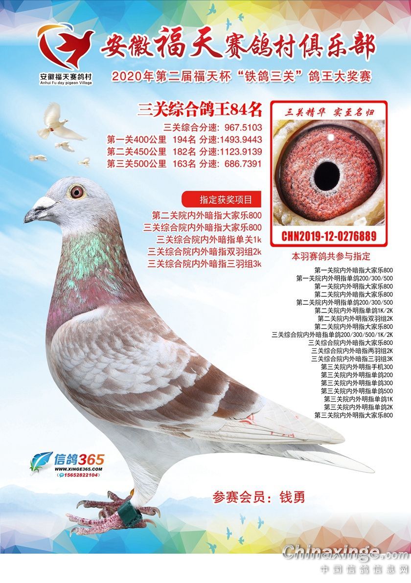 安徽福天俱乐部2020年铁鸽三关鸽王优胜鸽欣赏61-120名