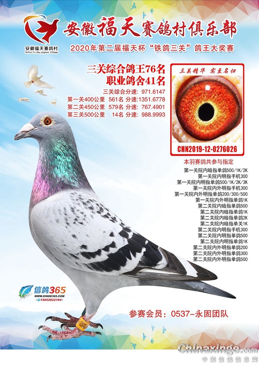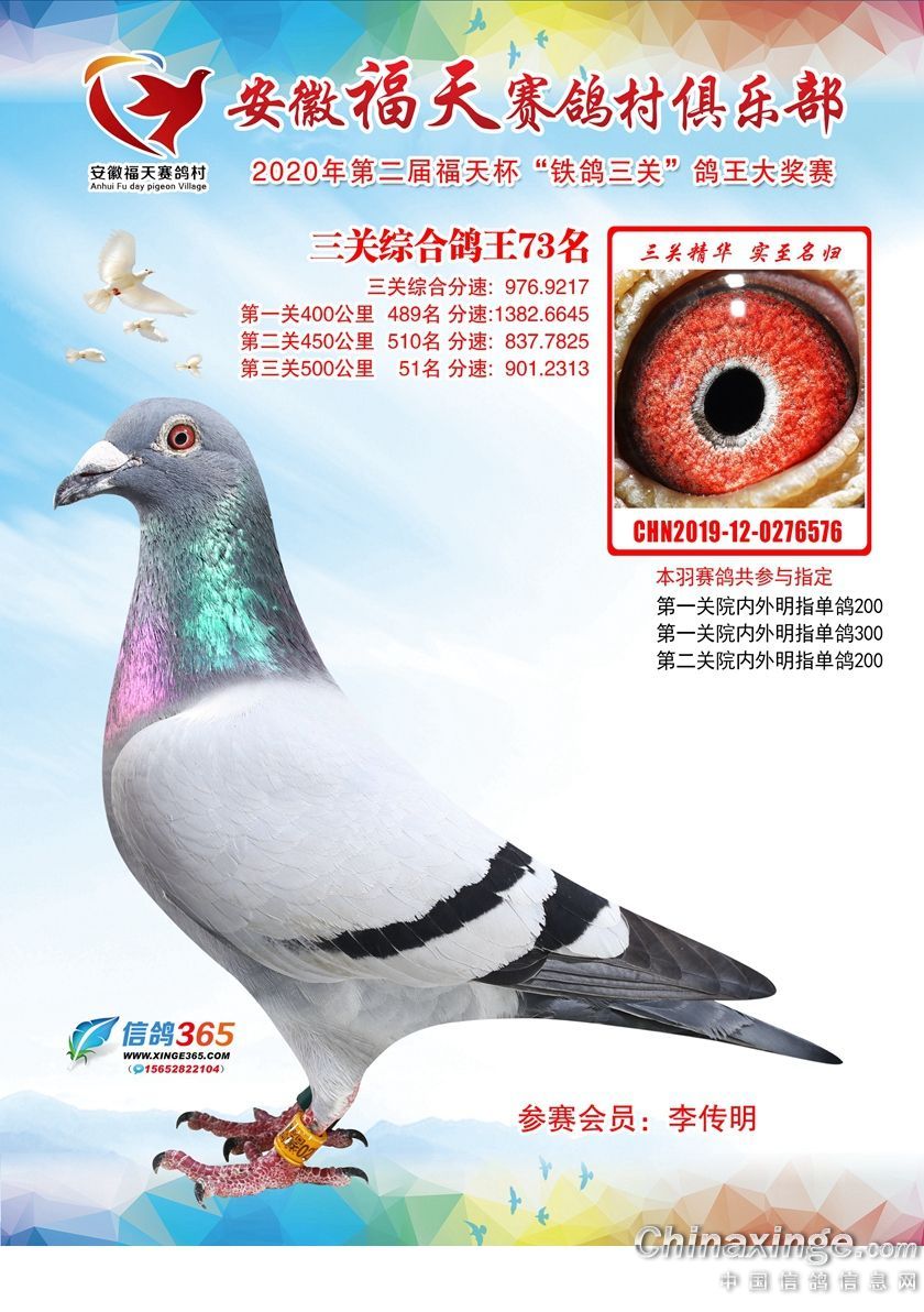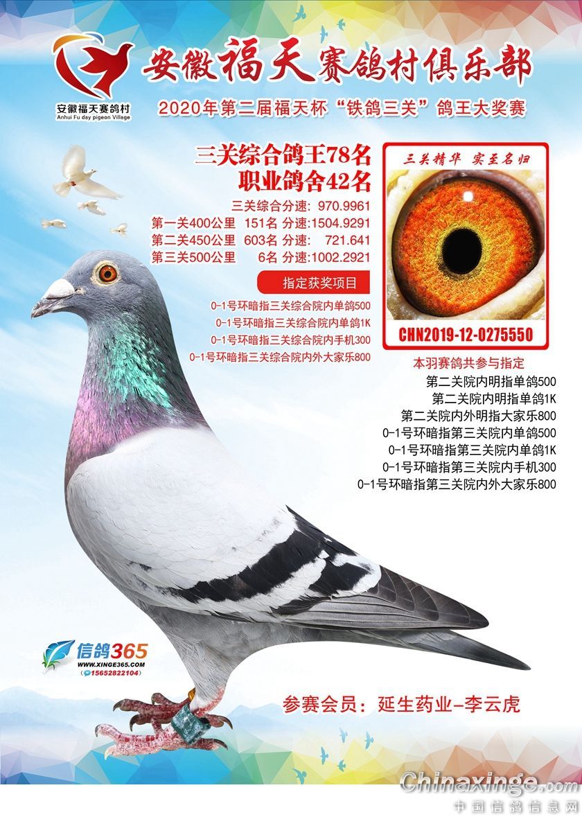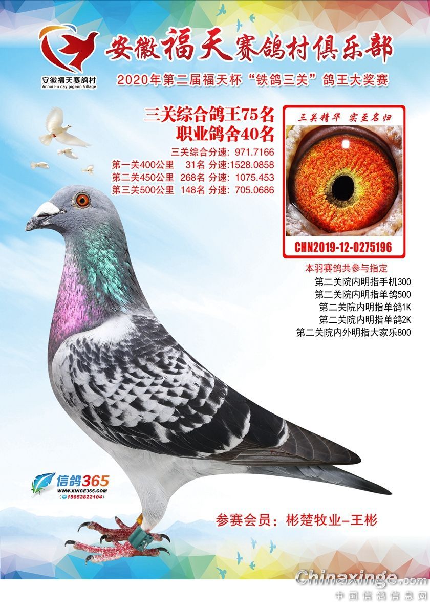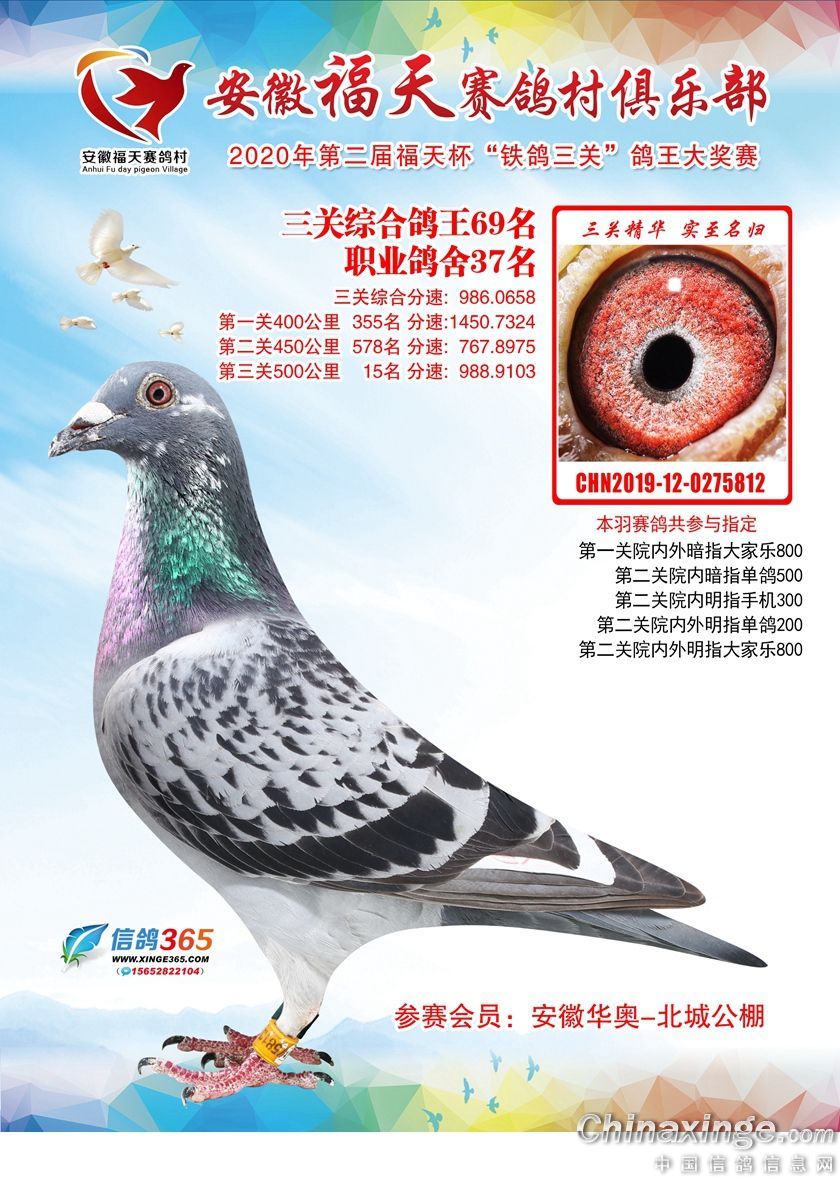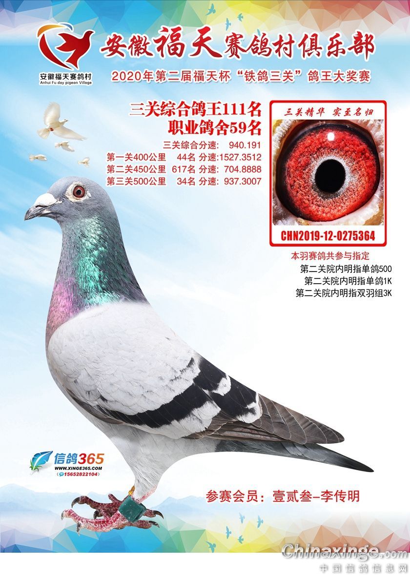 安徽福天俱乐部2020年铁鸽三关鸽王优胜鸽欣赏61-120名