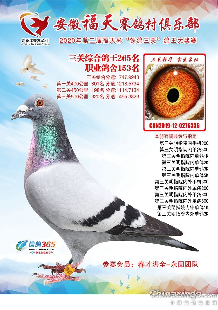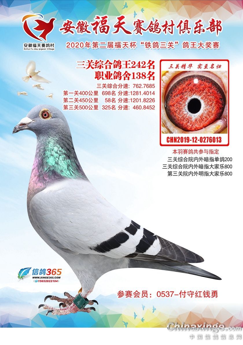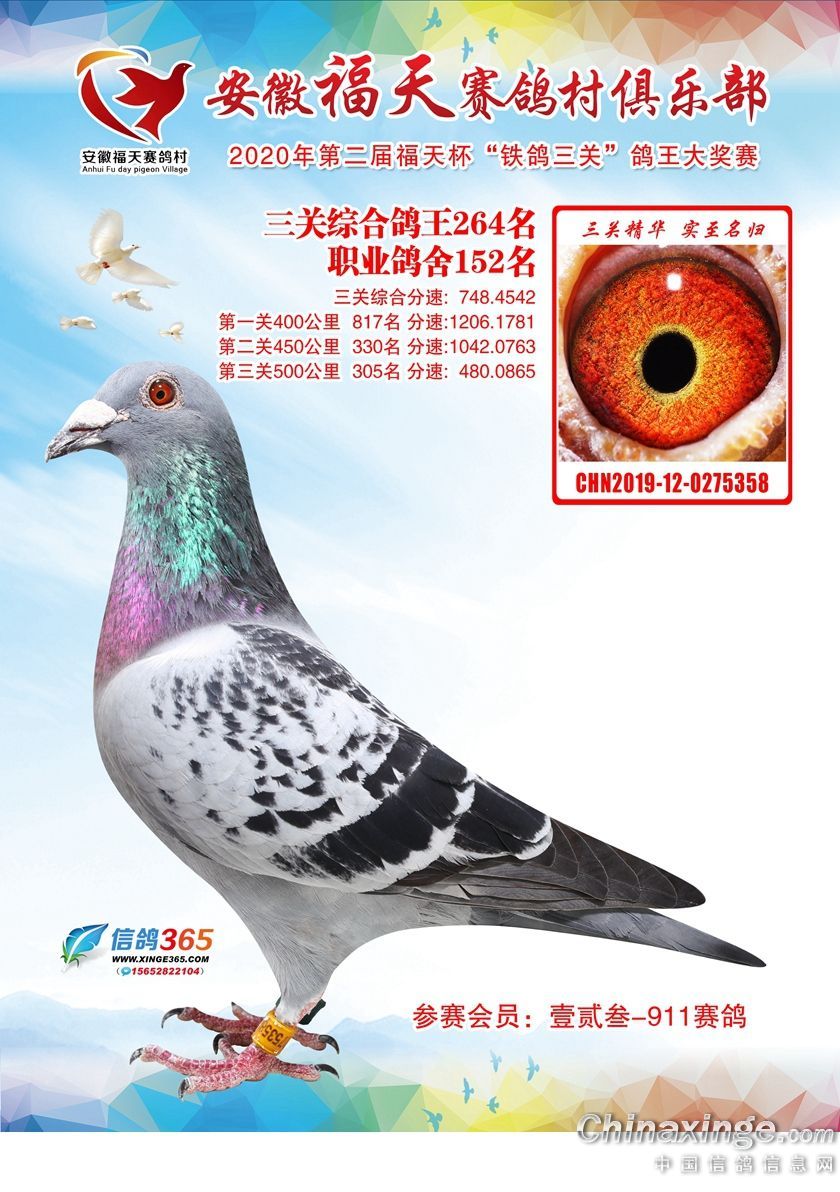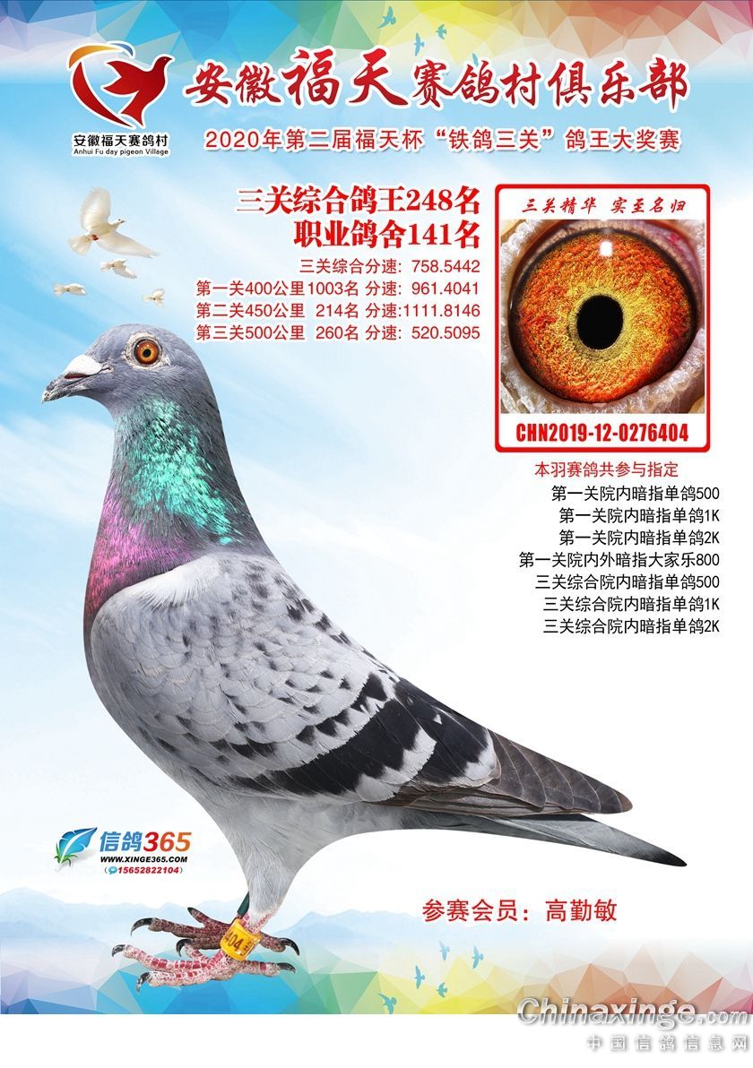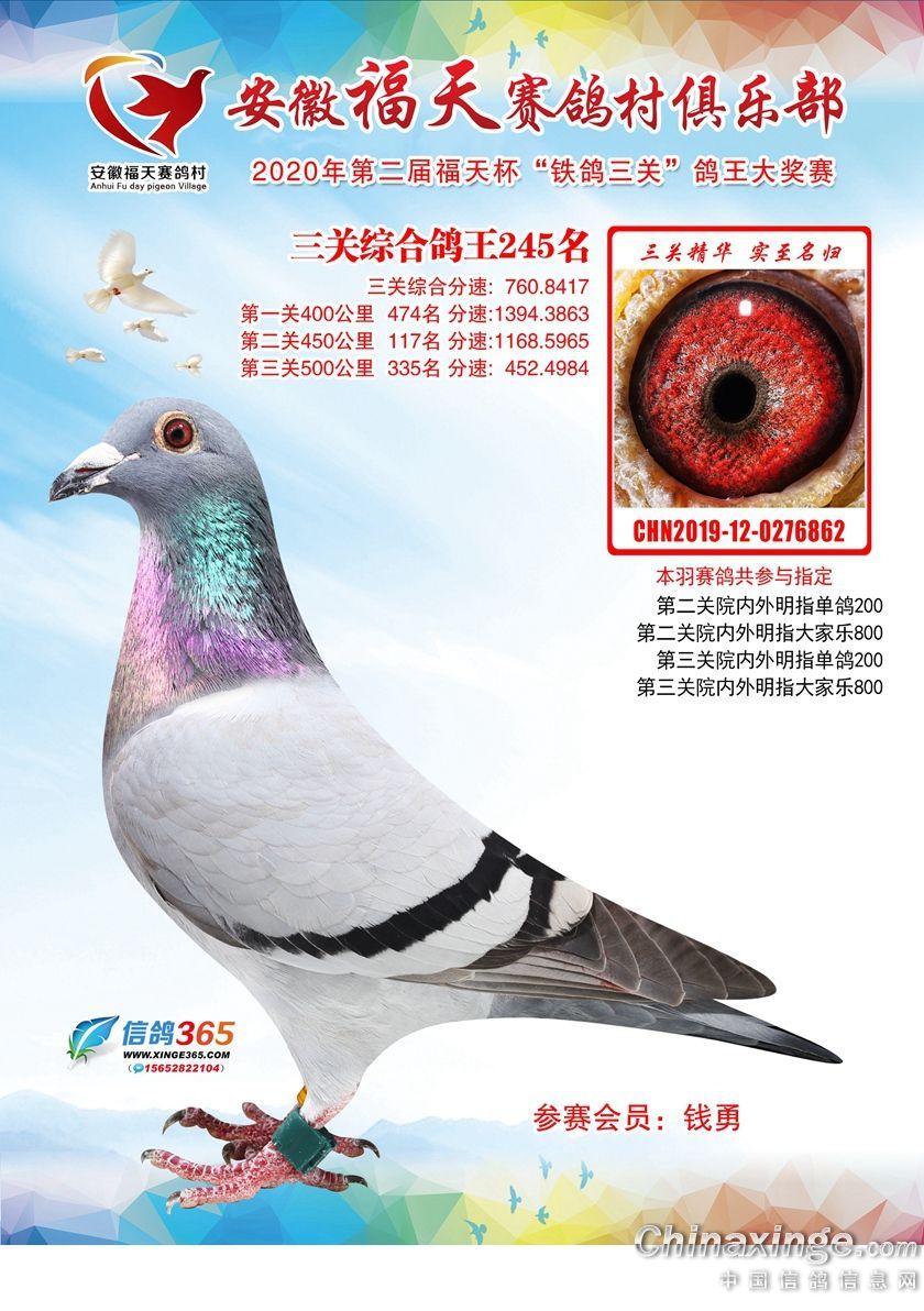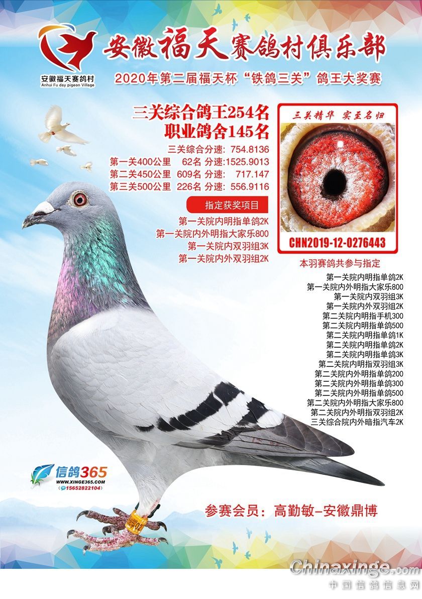 作品说明: 安徽福天俱乐部2020年铁鸽三关鸽王优胜鸽欣赏241-282名