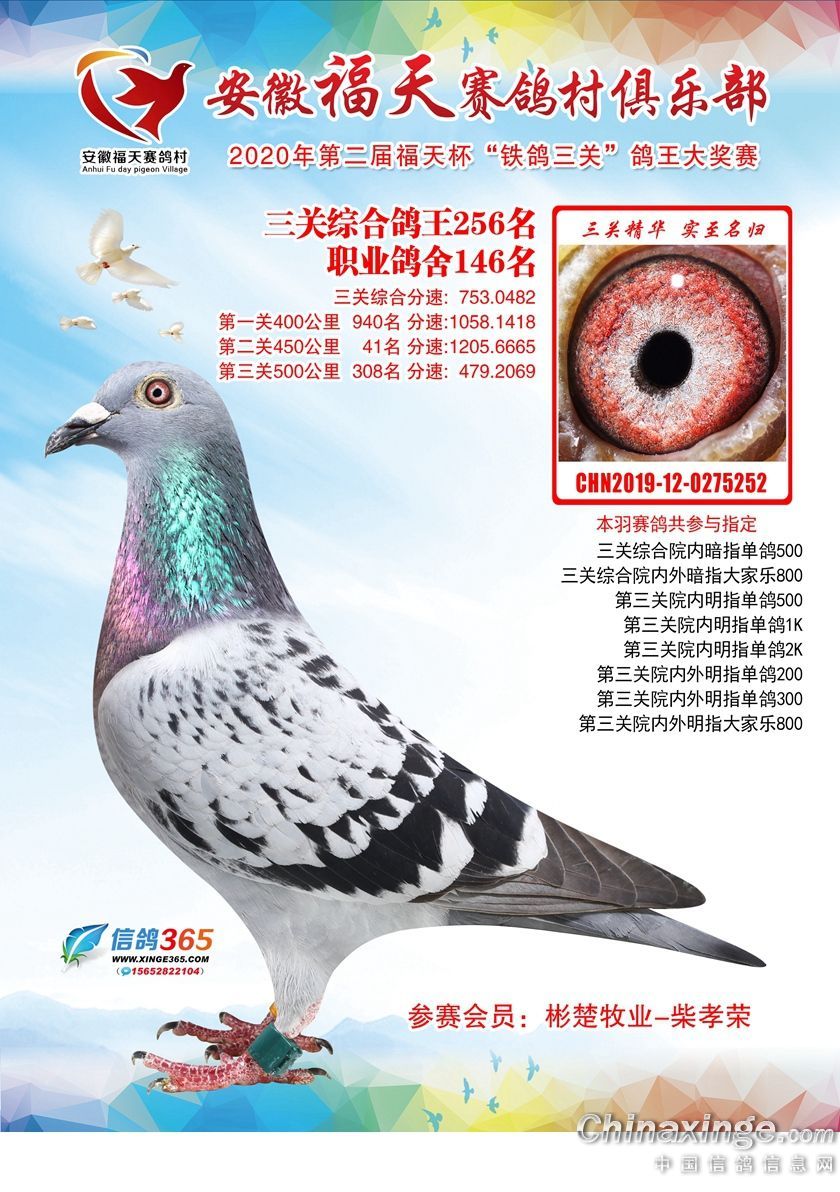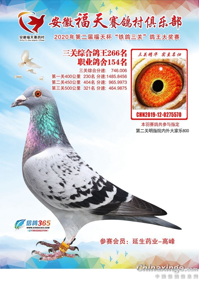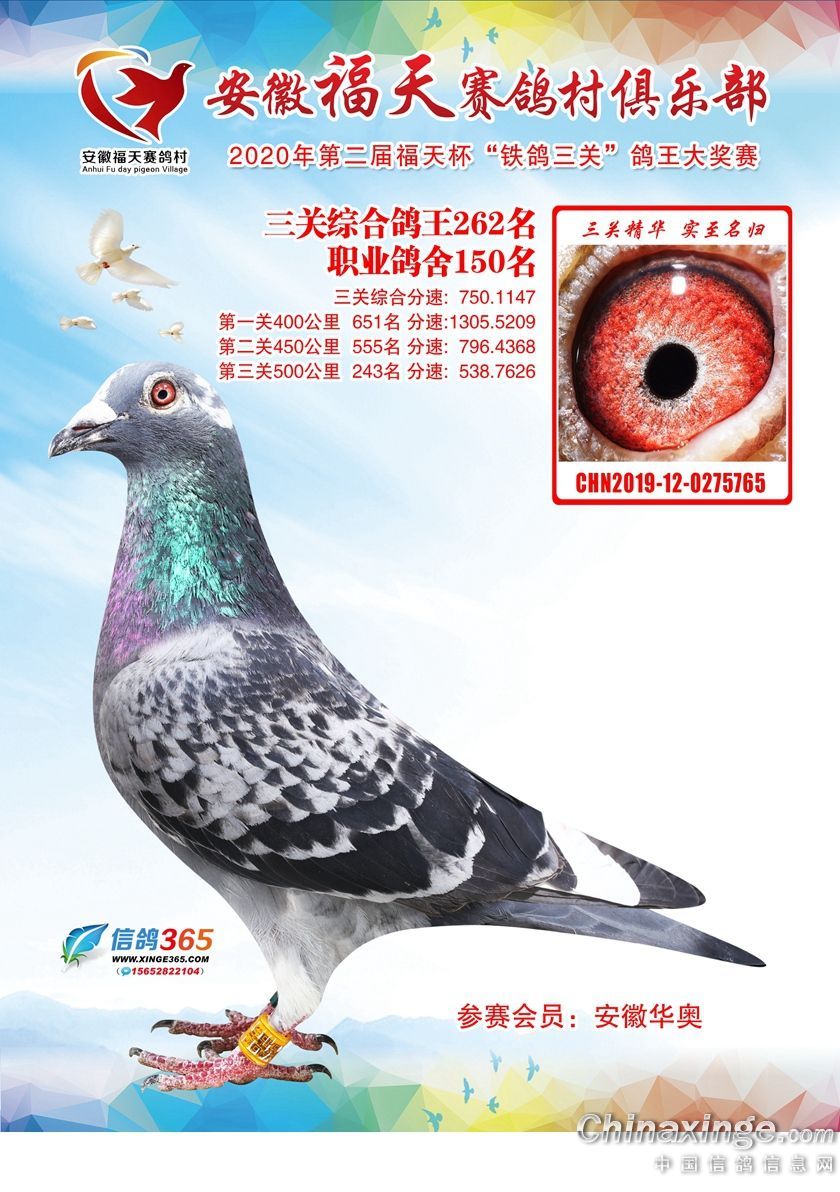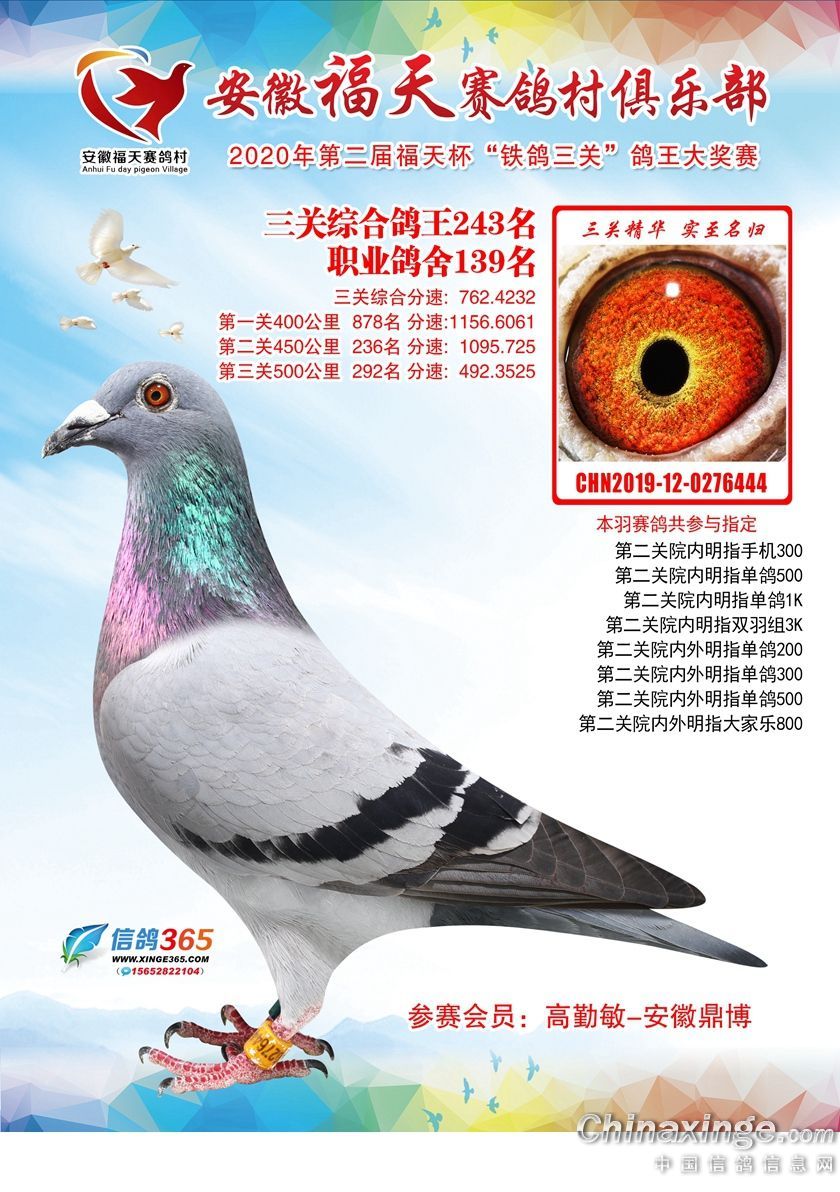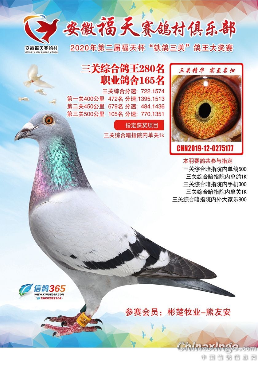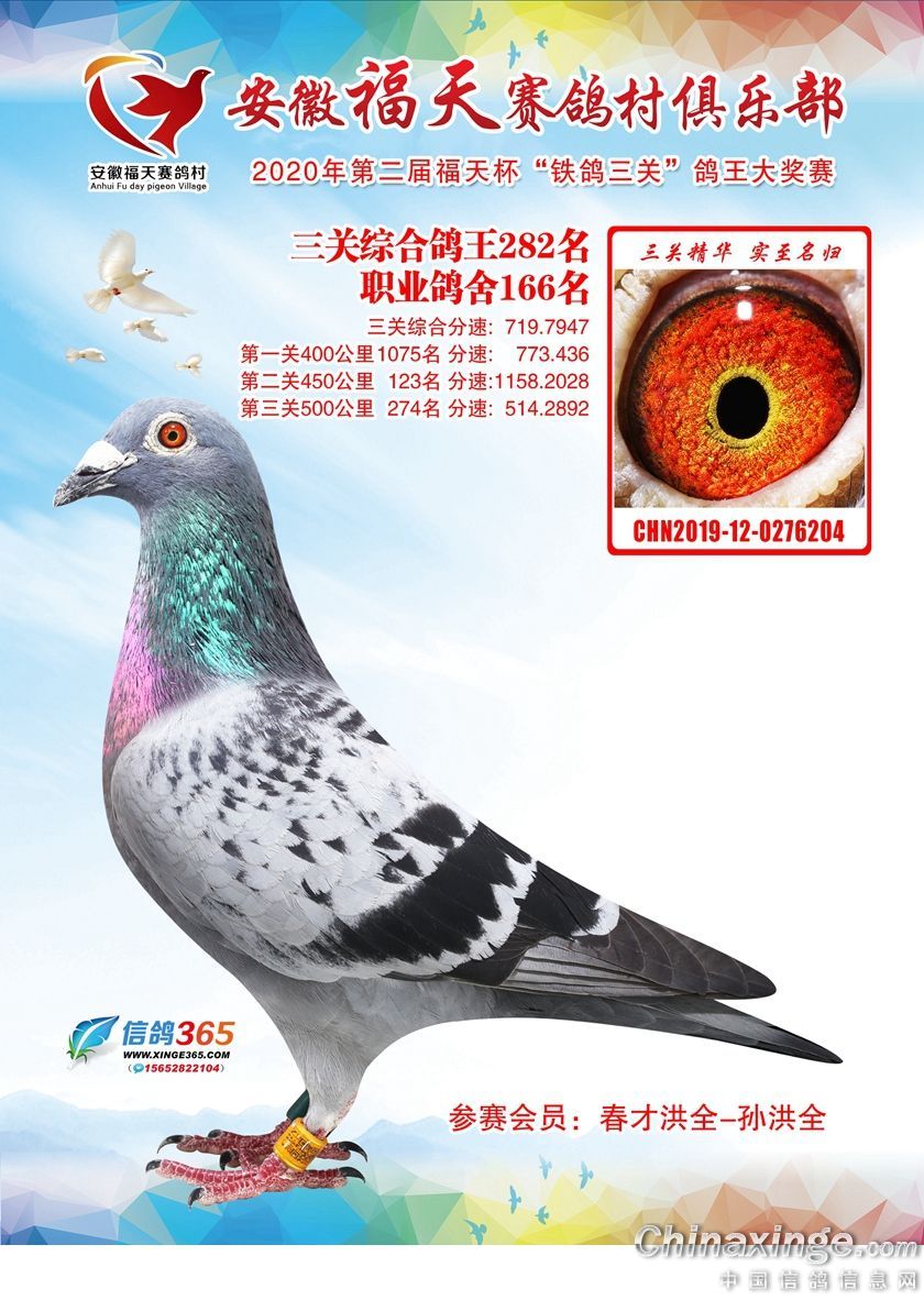 作品说明: 安徽福天俱乐部2020年铁鸽三关鸽王优胜鸽欣赏241-282名