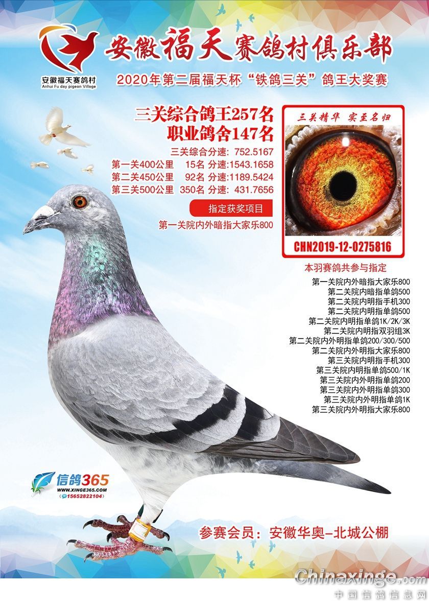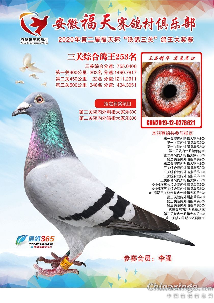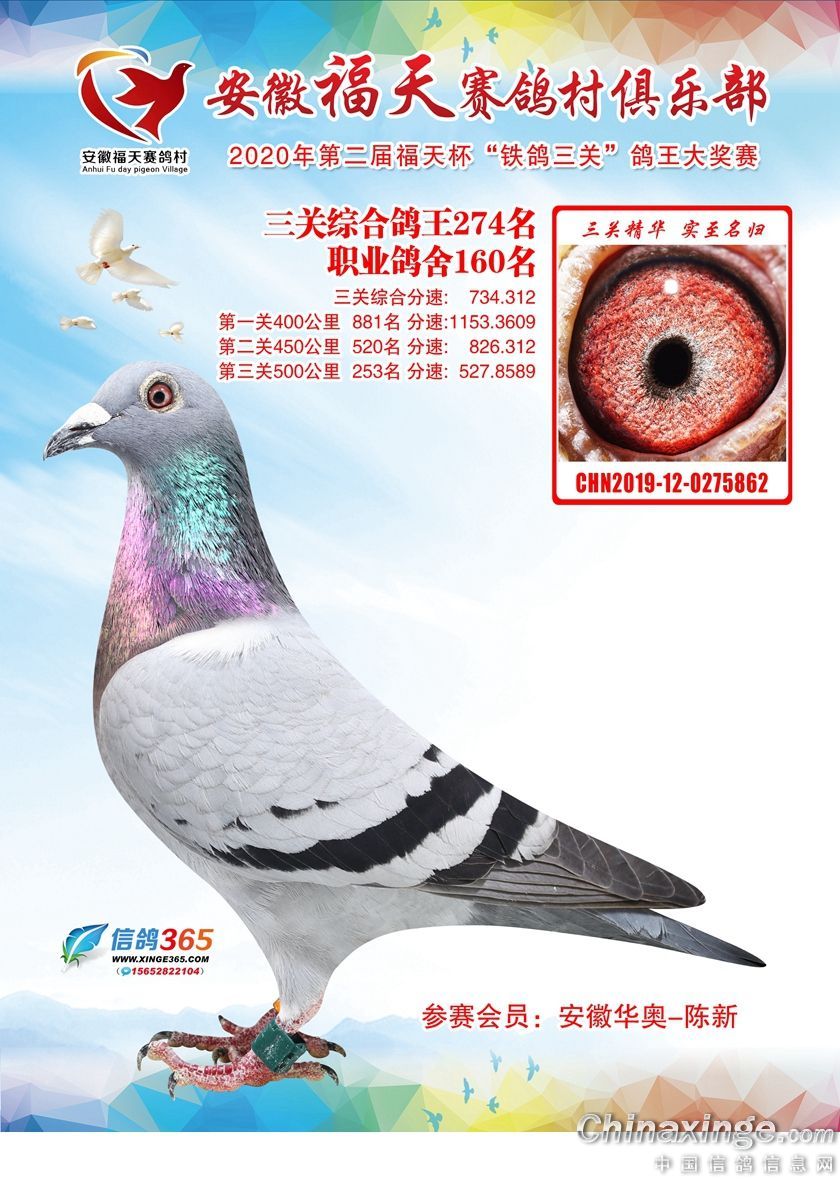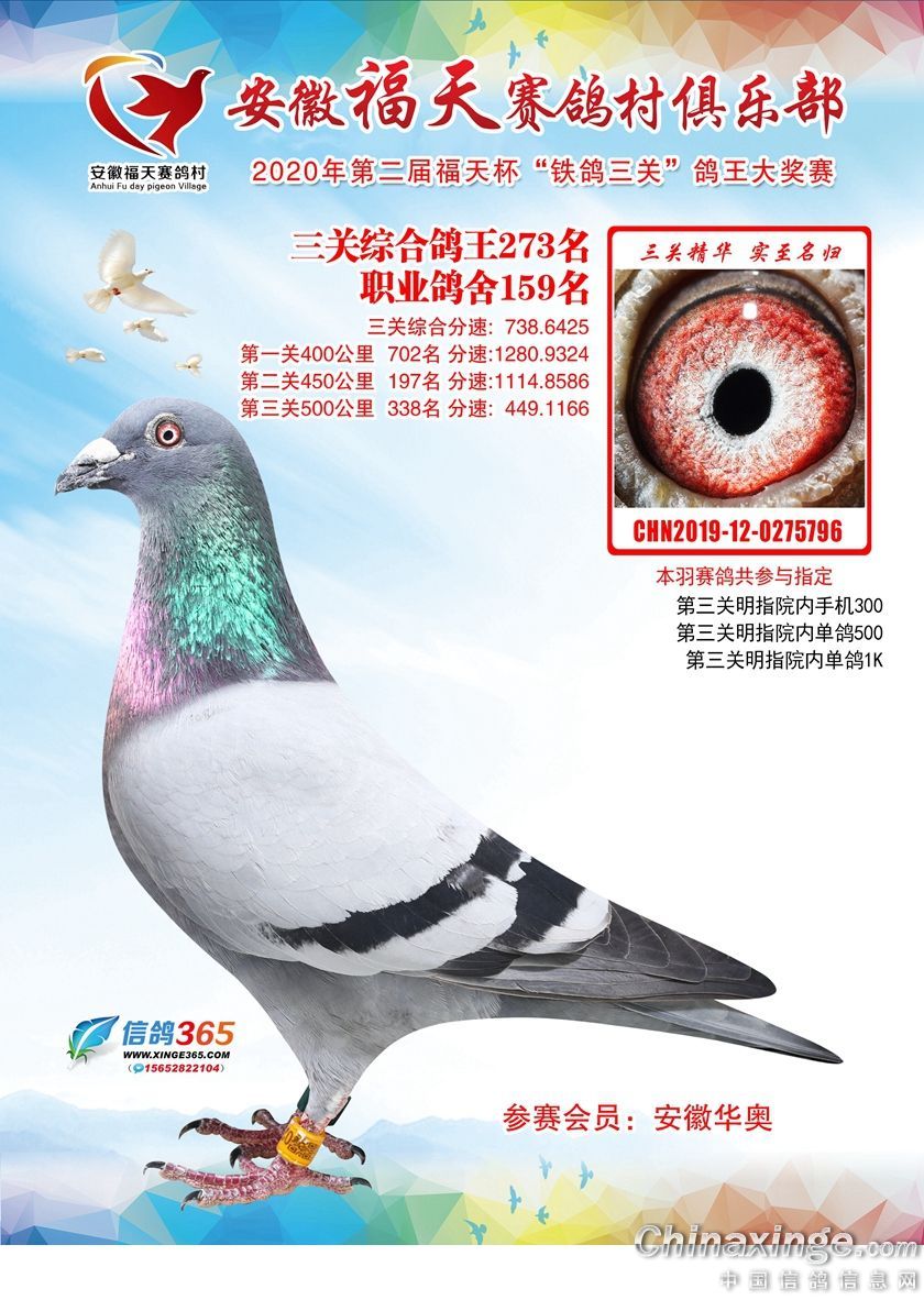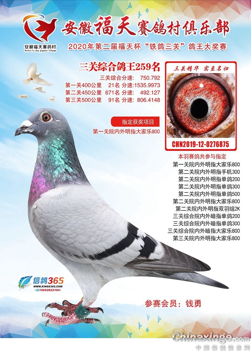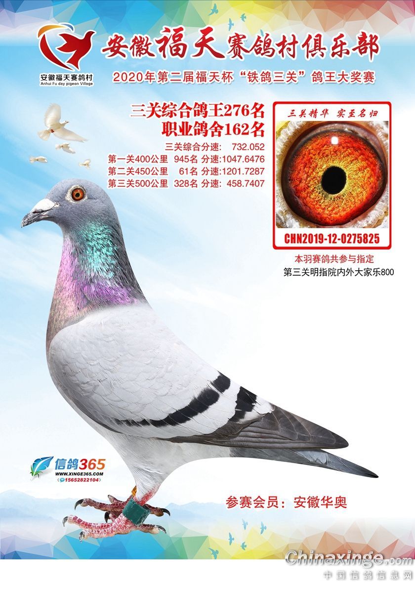 作品说明: 安徽福天俱乐部2020年铁鸽三关鸽王优胜鸽欣赏241-282名