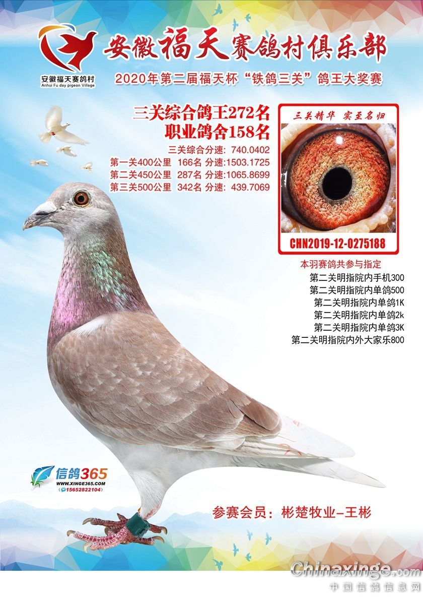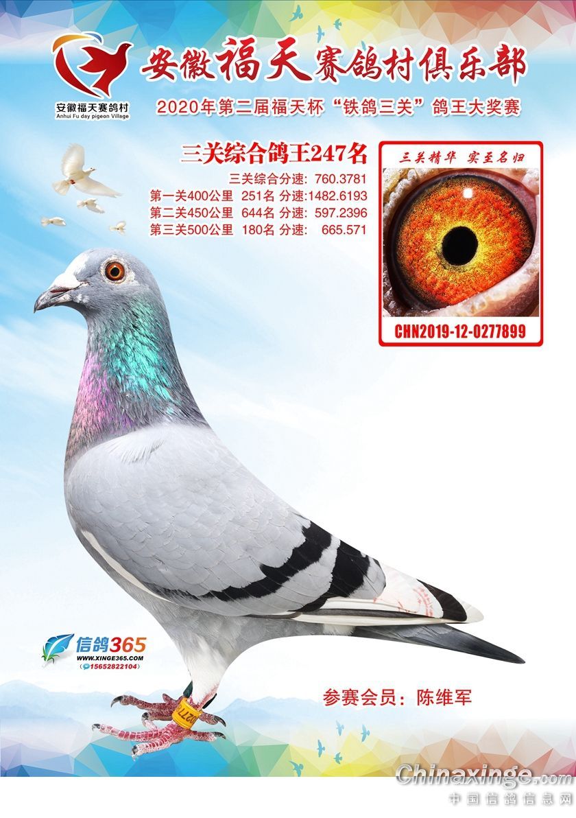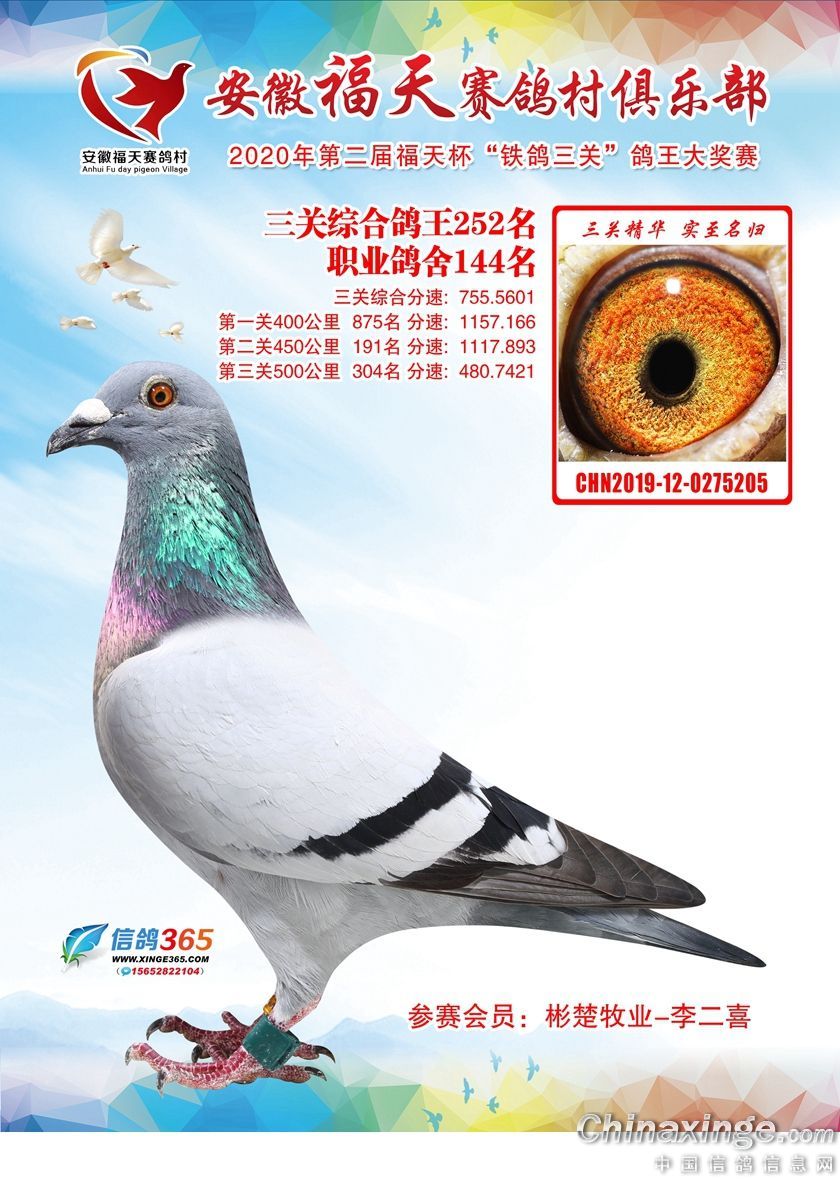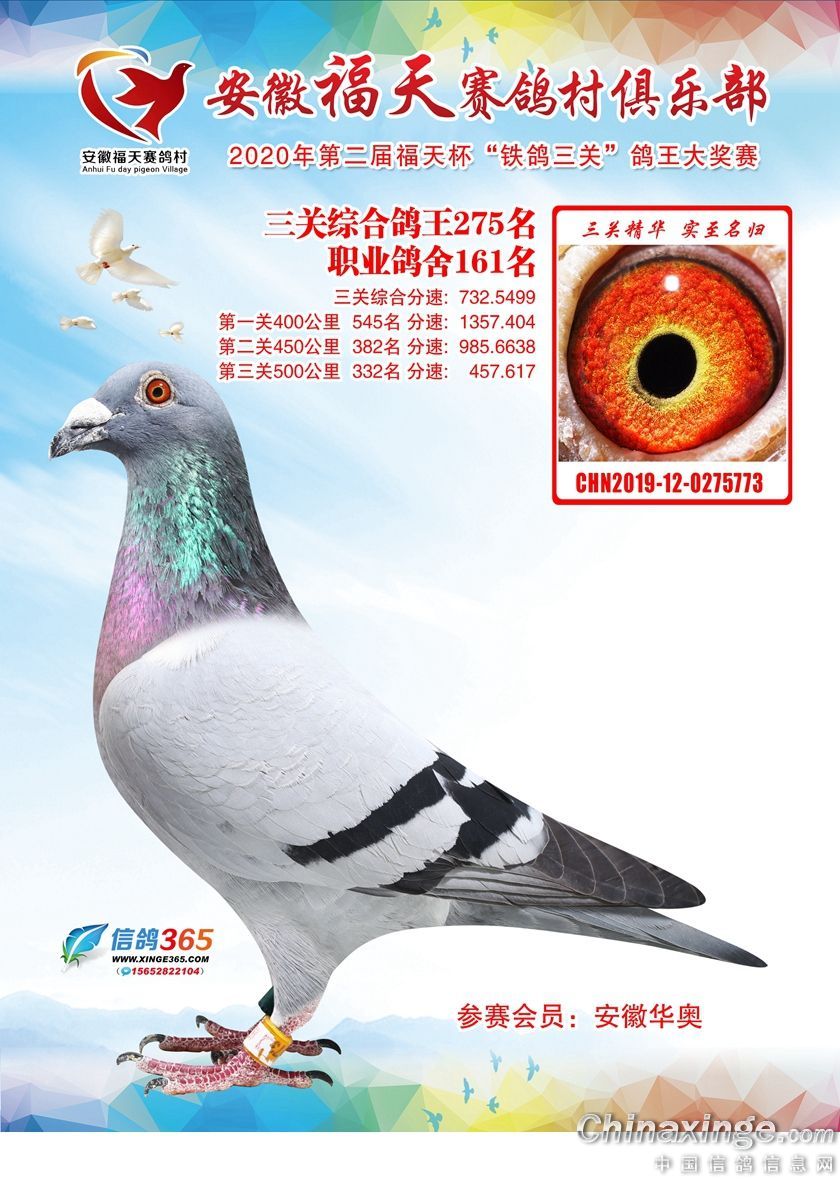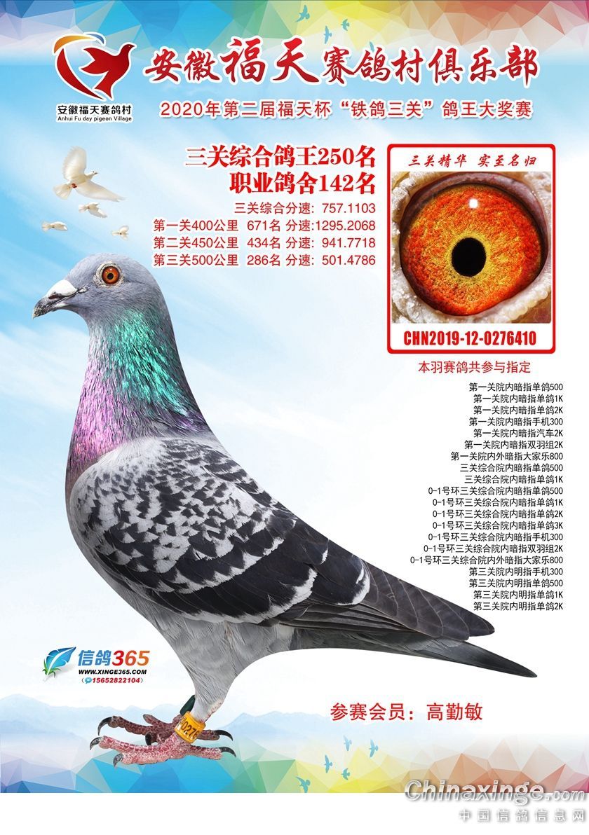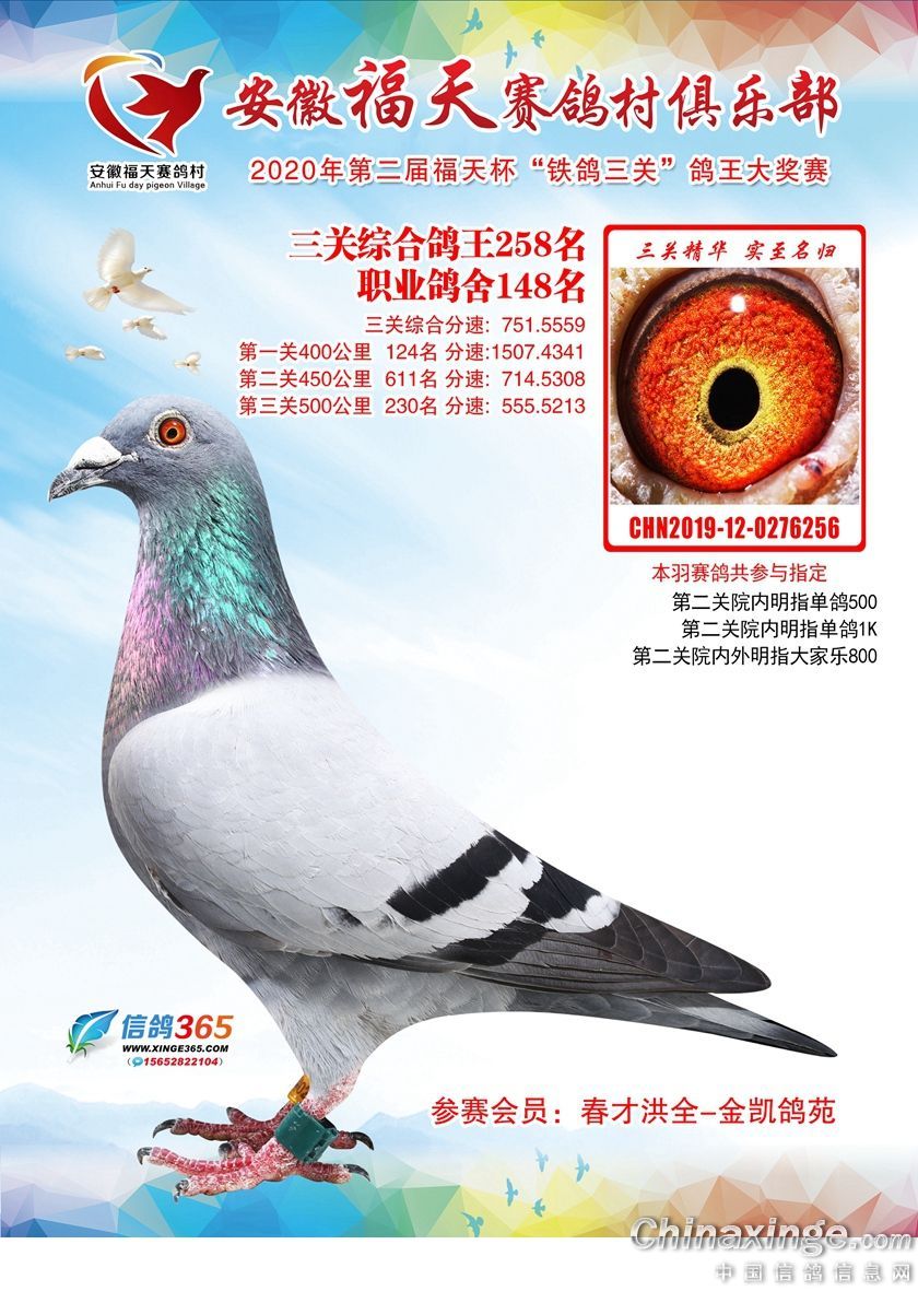 作品说明: 安徽福天俱乐部2020年铁鸽三关鸽王优胜鸽欣赏241-282名