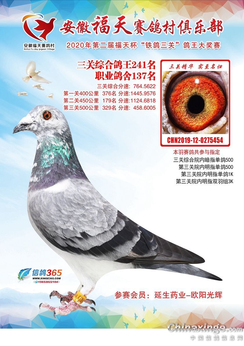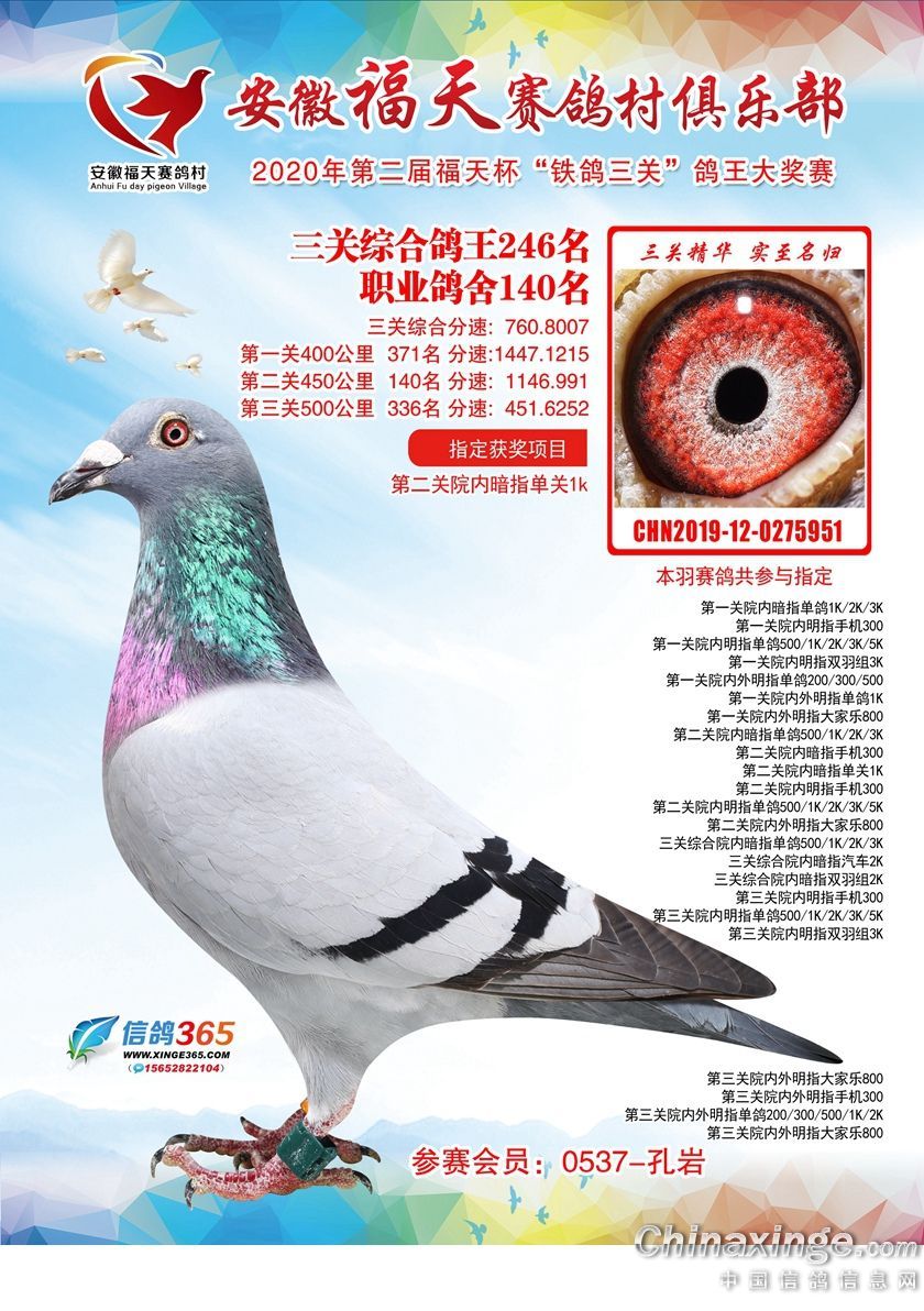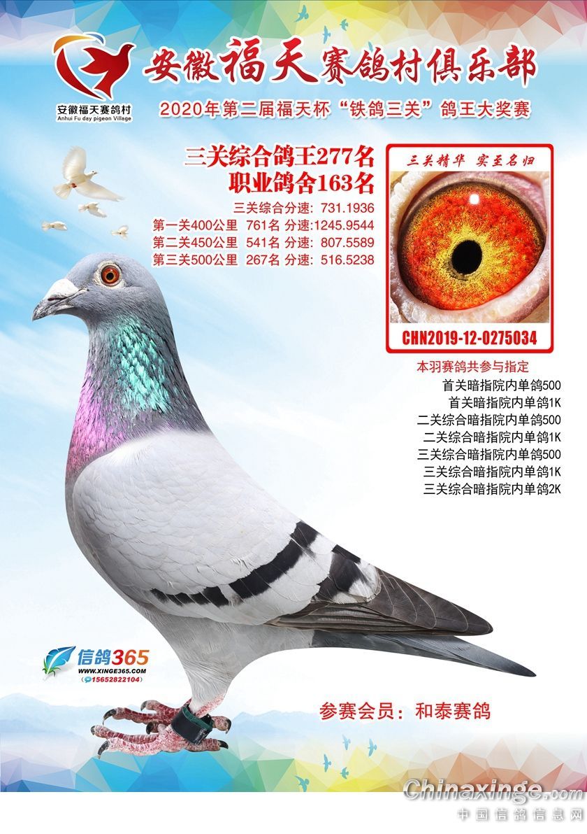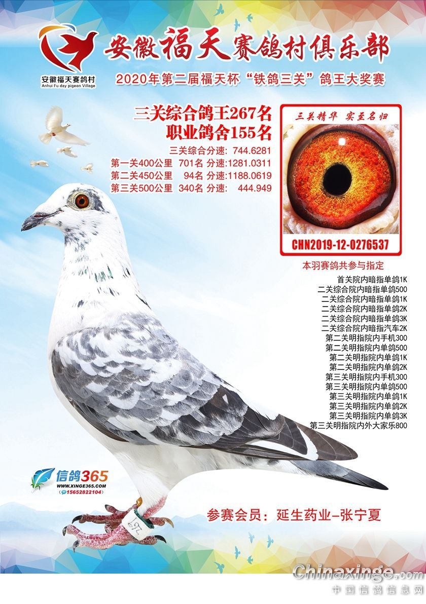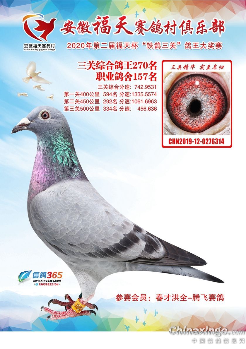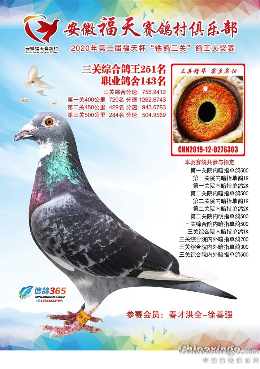 作品说明: 安徽福天俱乐部2020年铁鸽三关鸽王优胜鸽欣赏241-282名