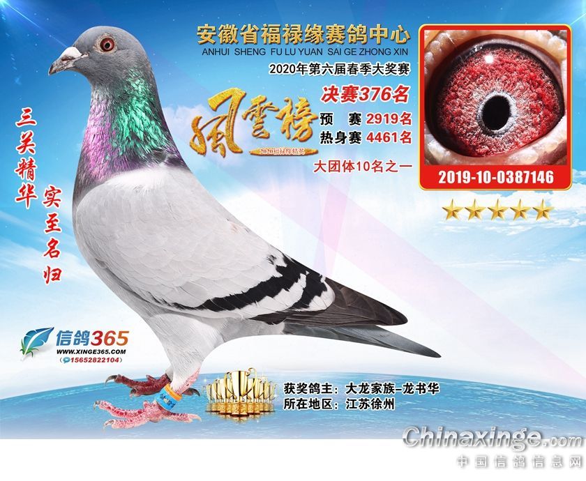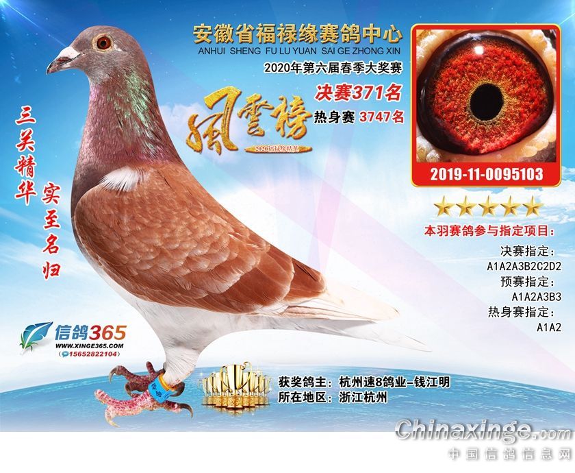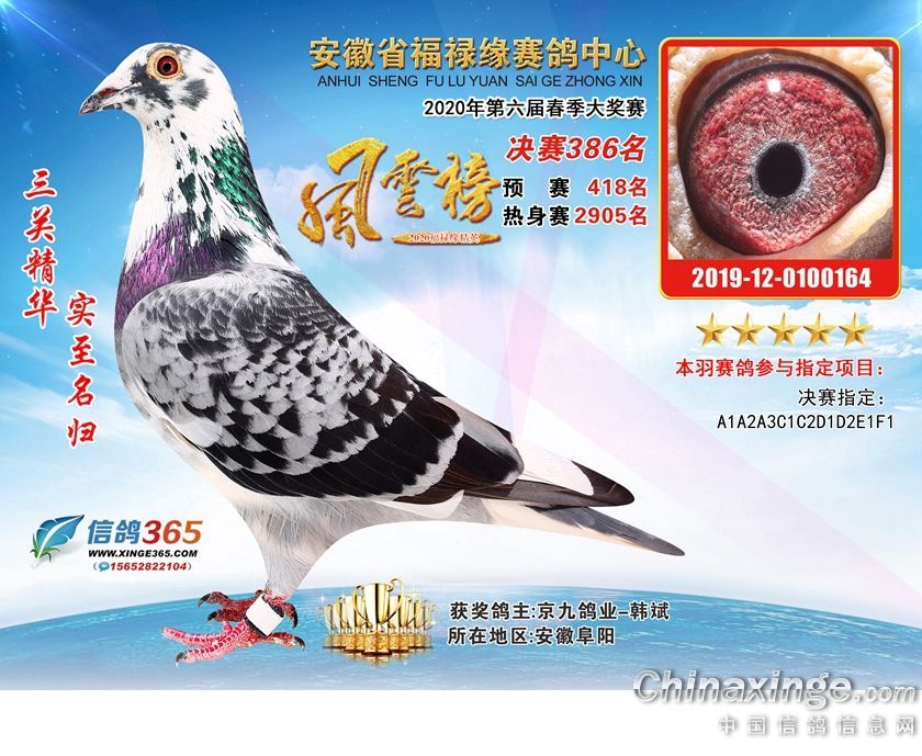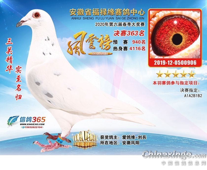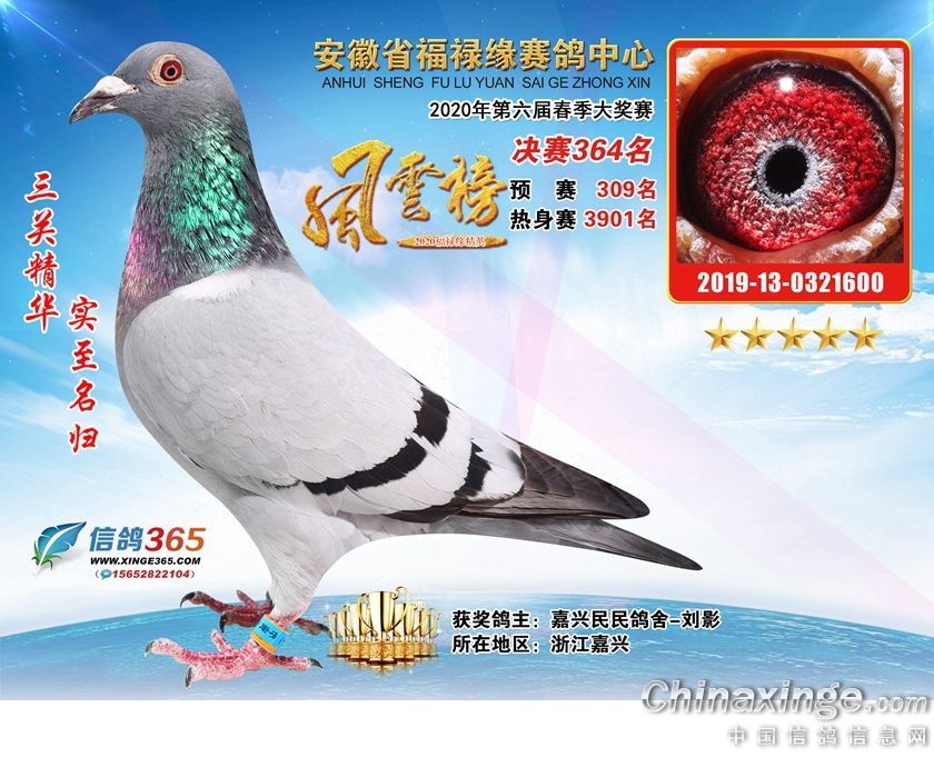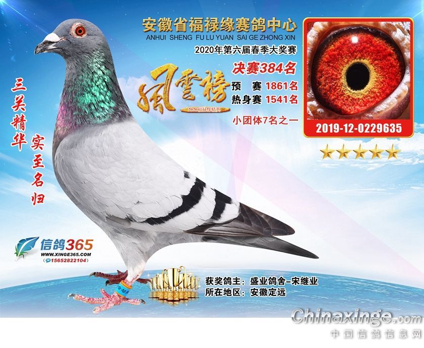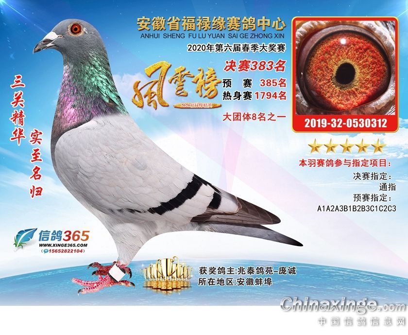 作品说明: 安徽福禄缘赛鸽中心2020年获奖鸽361-390名