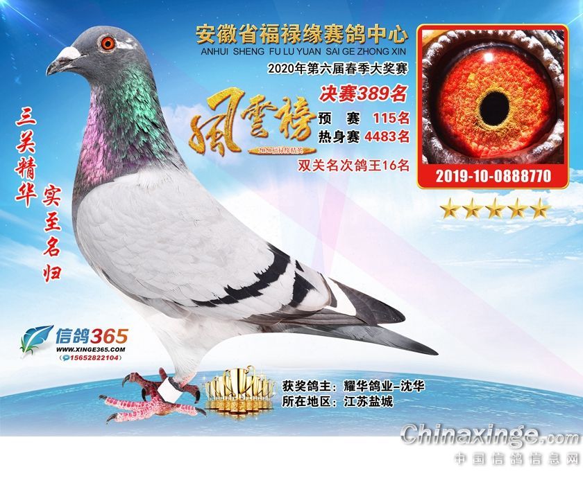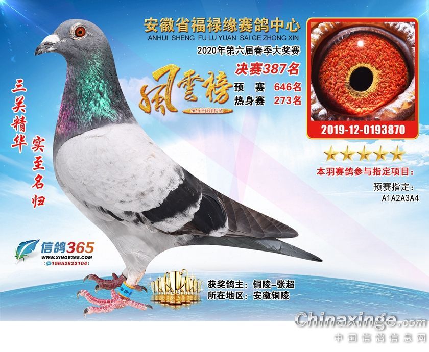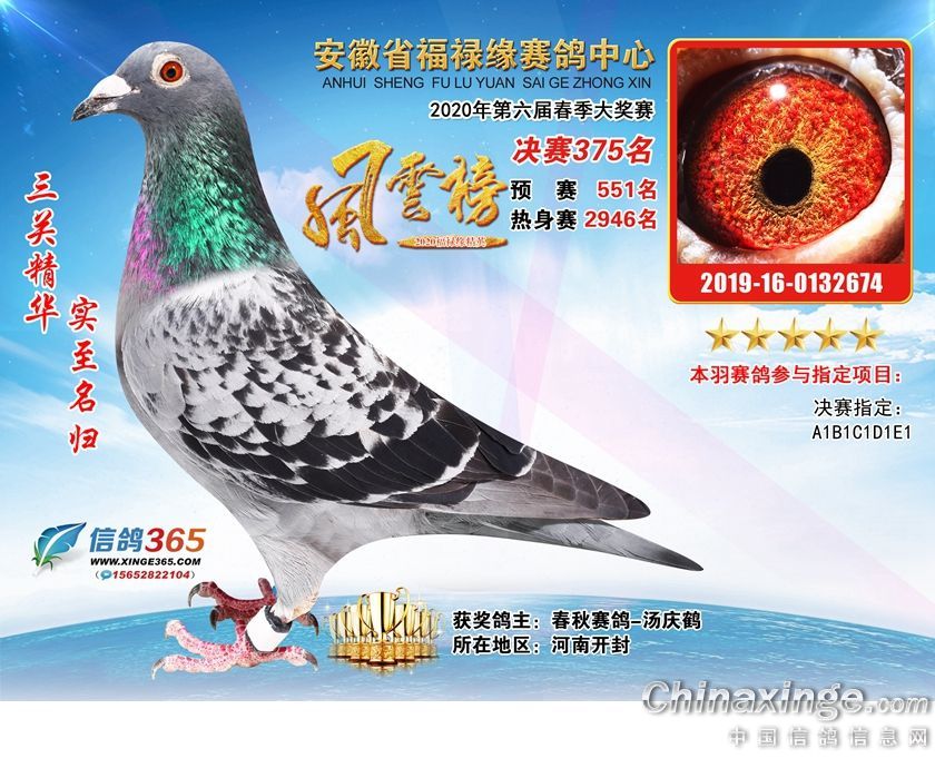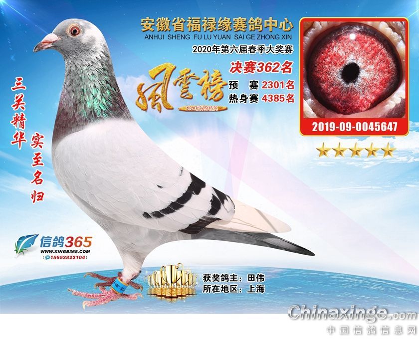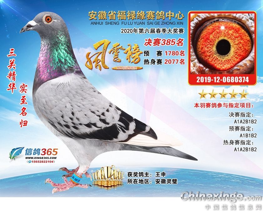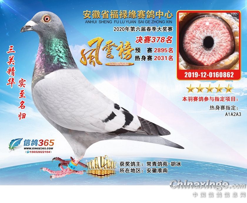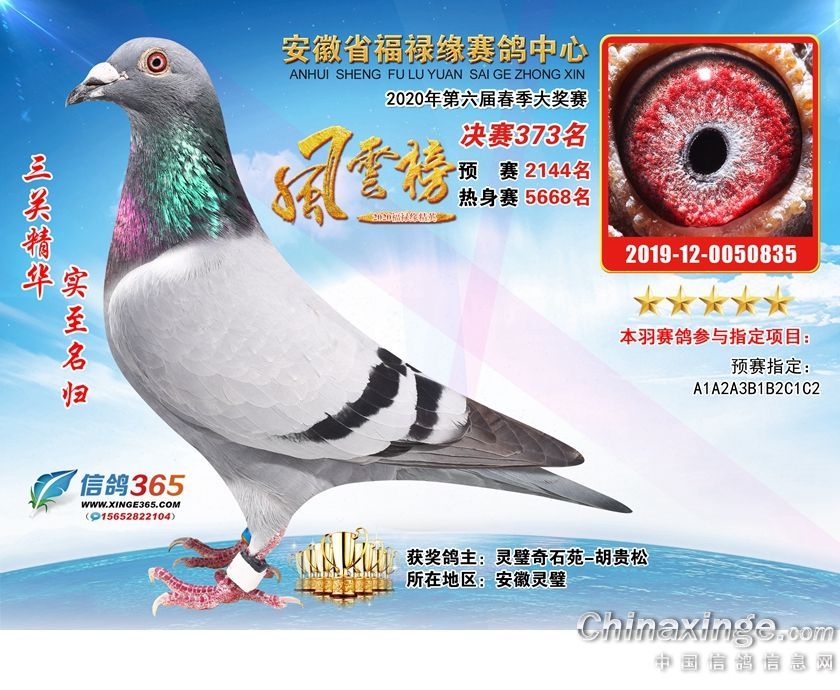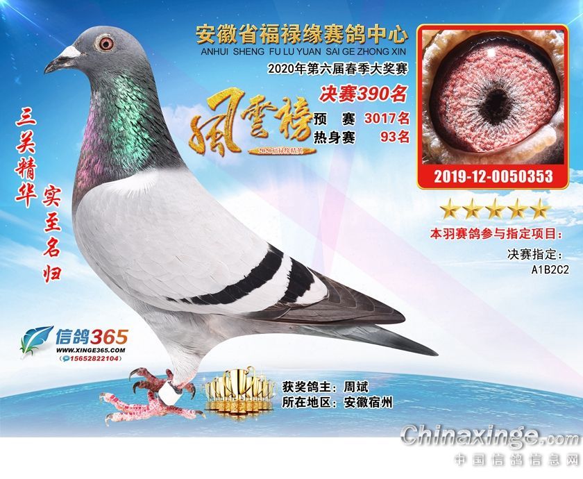 作品说明: 安徽福禄缘赛鸽中心2020年获奖鸽361-390名