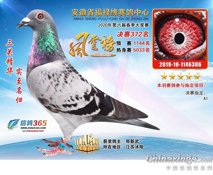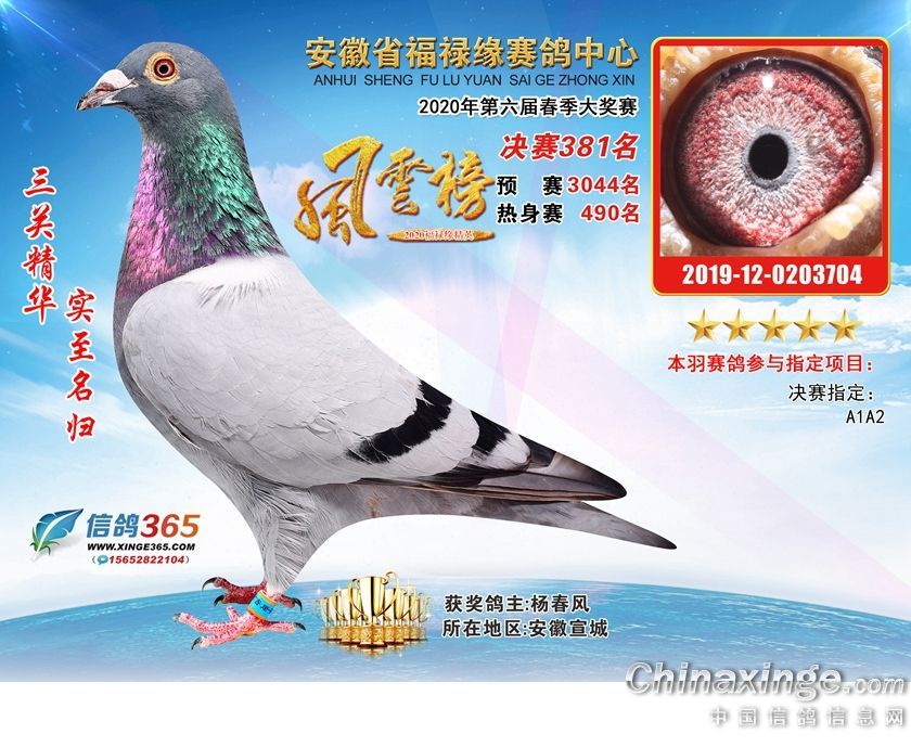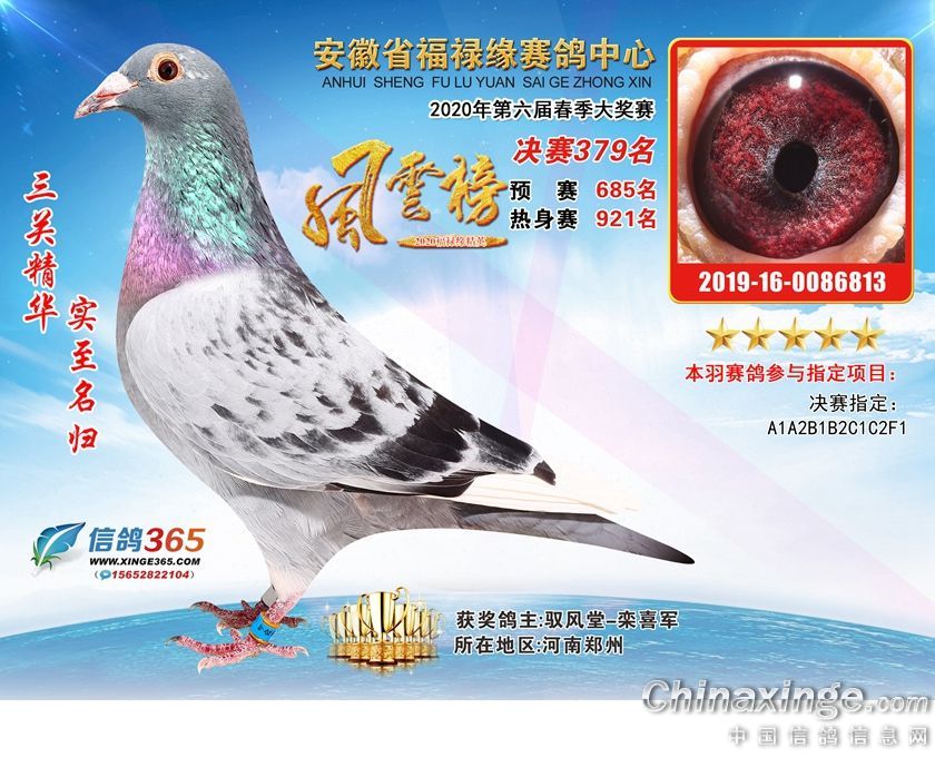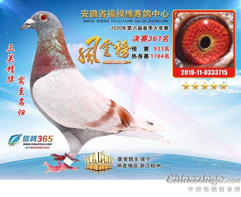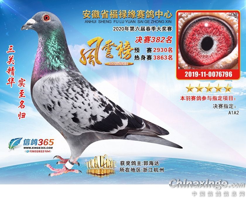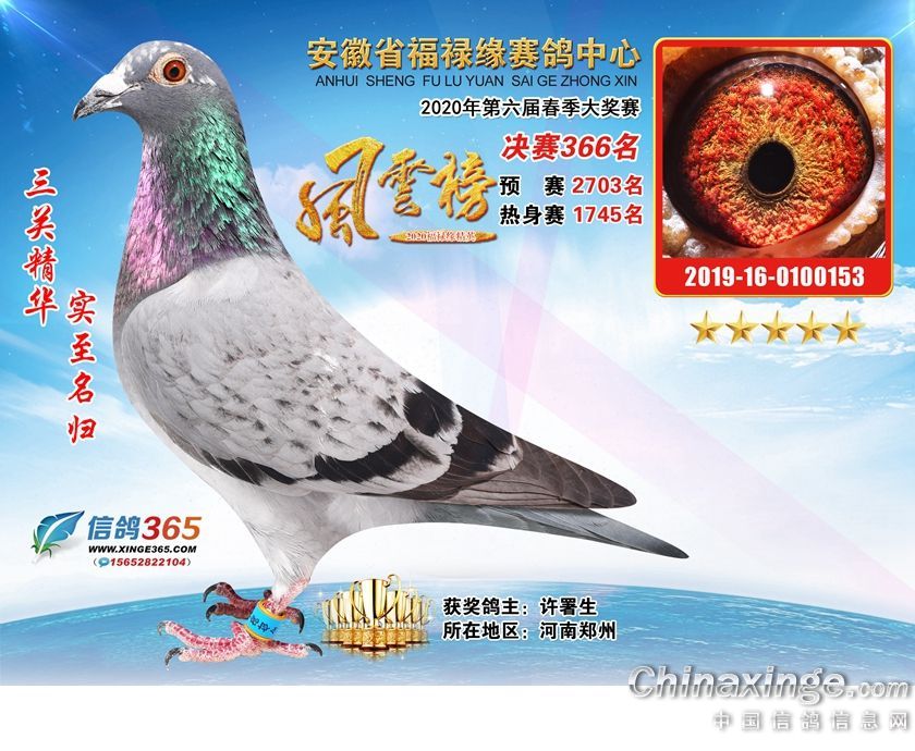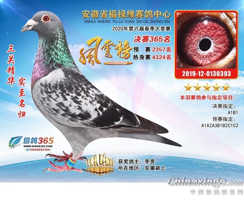 作品说明: 安徽福禄缘赛鸽中心2020年获奖鸽361-390名
