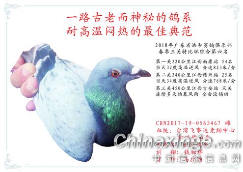 18年首次作出,一鸣惊人,获得春季三关特比环6名,可惜鸽子流落他乡了