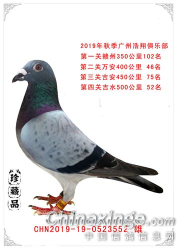 19年作出第二窝送好友蒋勇鸽舍参加秋季无关赛,一直飞到第四关,四关综合排52名,可惜第五关丢失了。