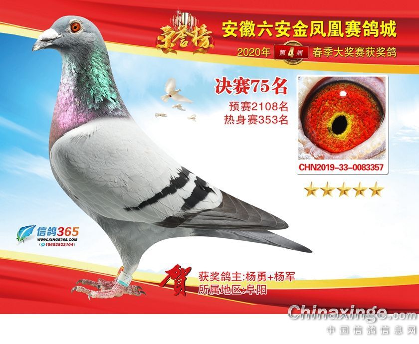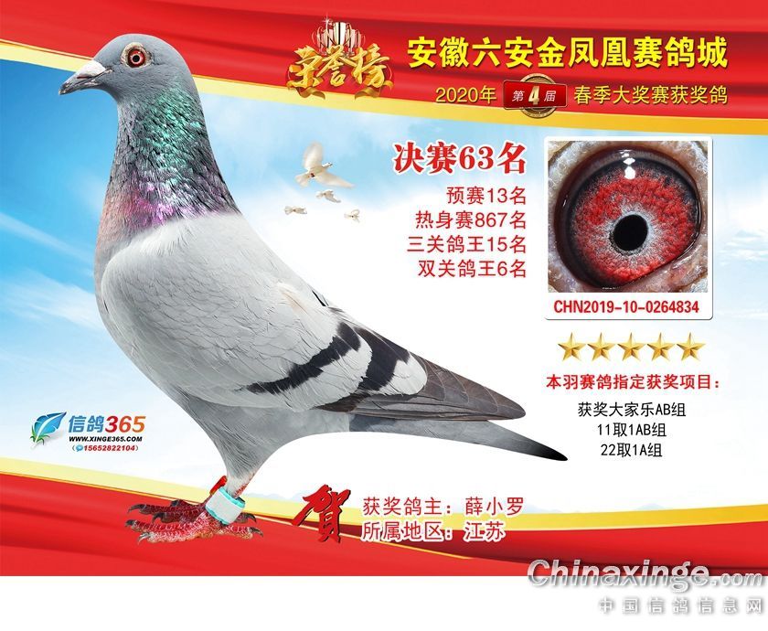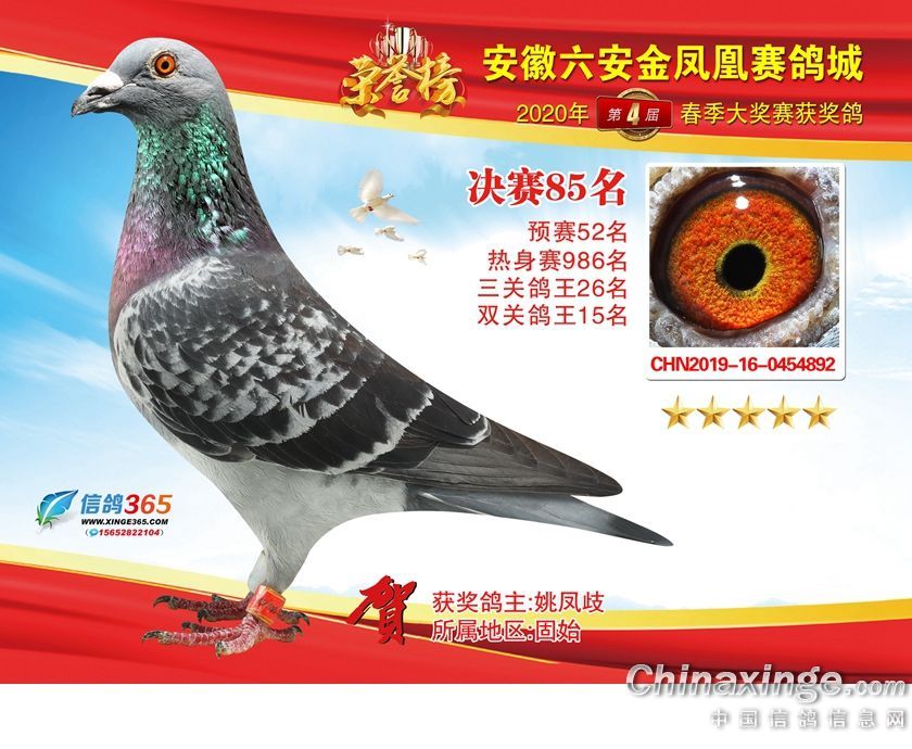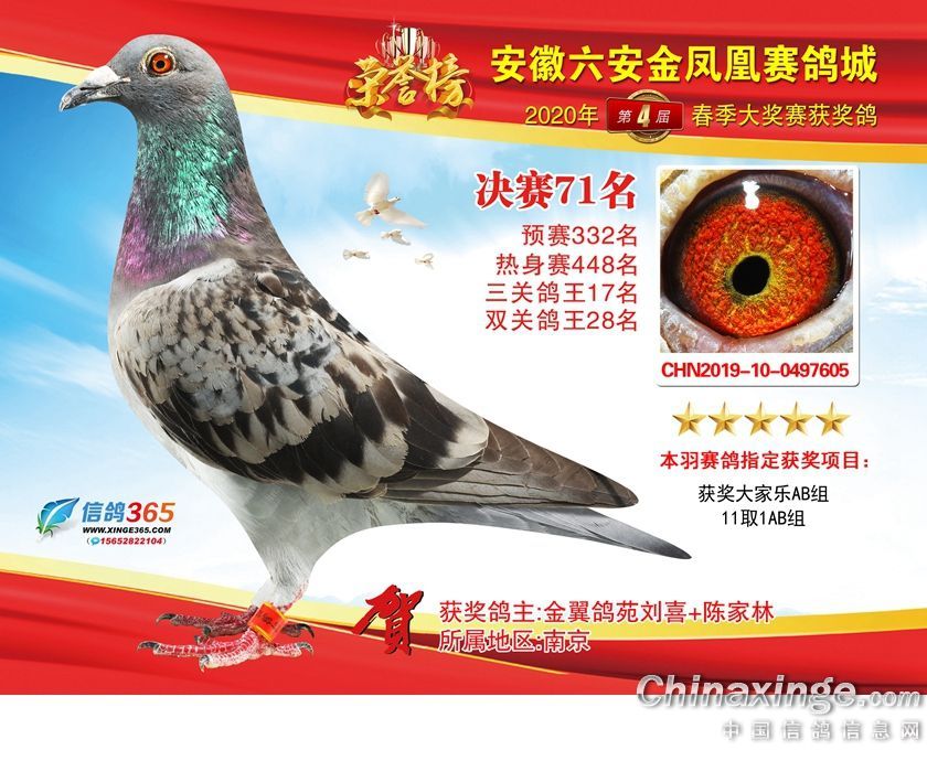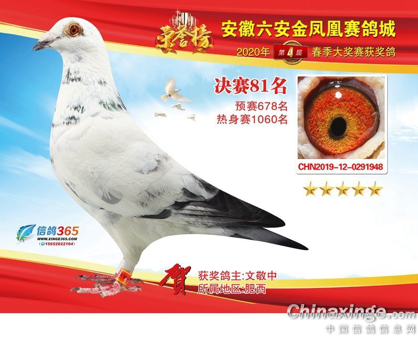 作品说明: 安徽金凤凰赛鸽城2020年获奖鸽61-90名