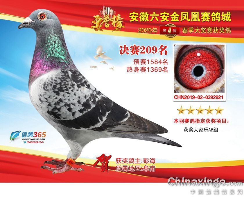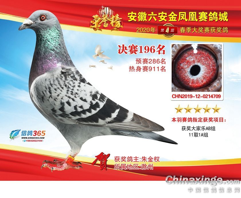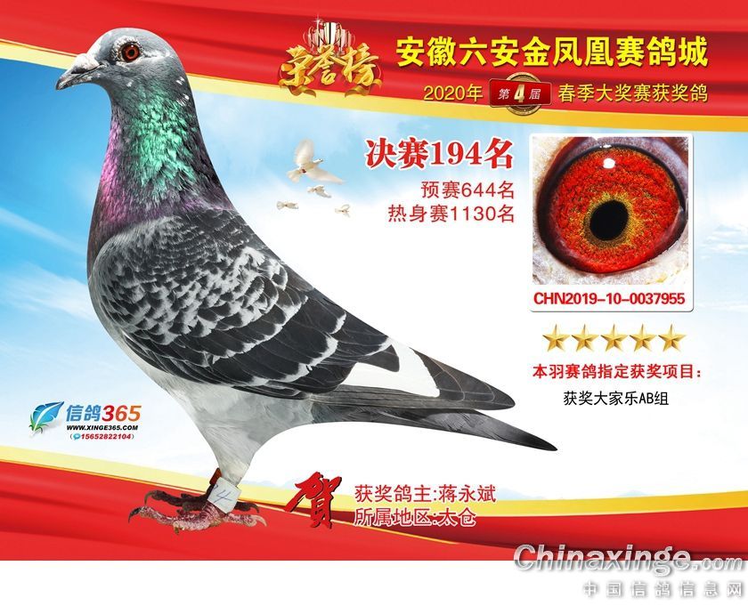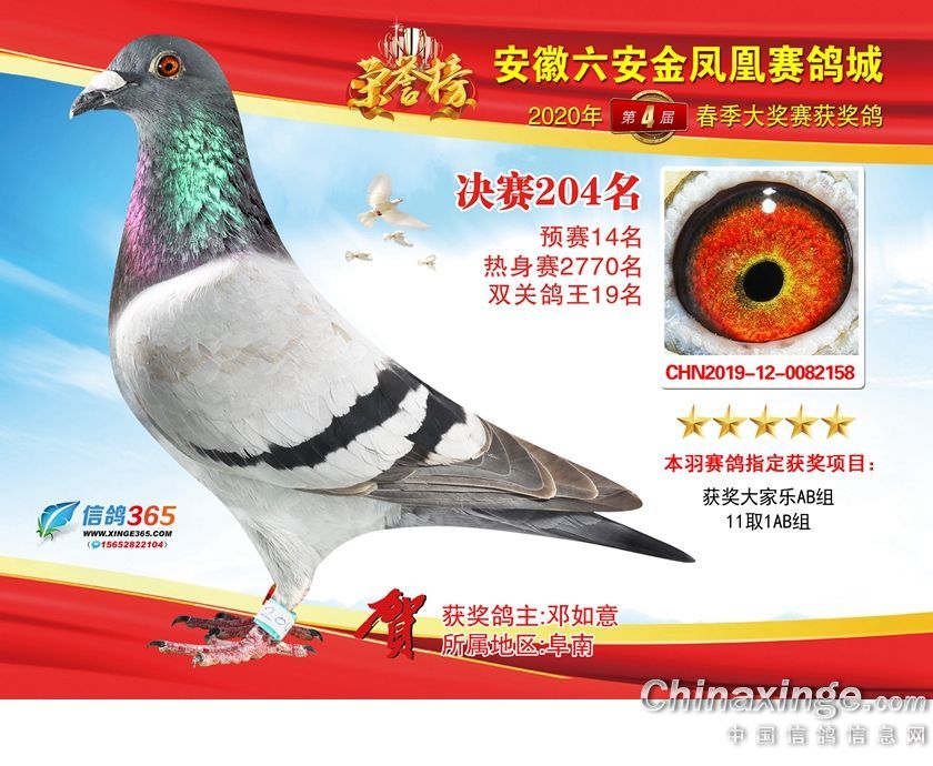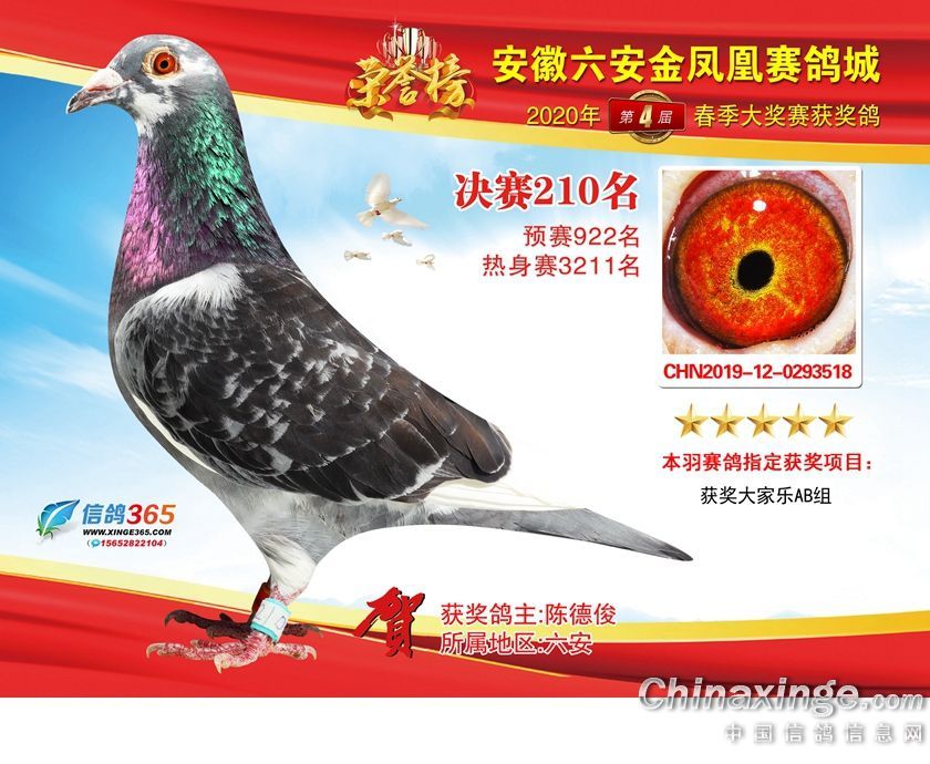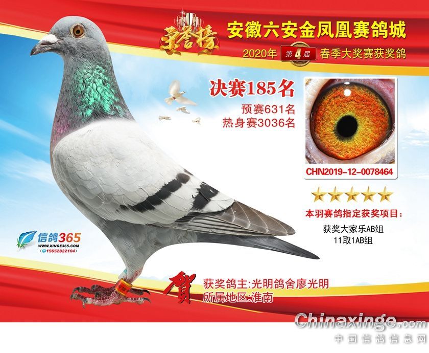 作品说明: 安徽金凤凰赛鸽城2020年获奖鸽181-210名