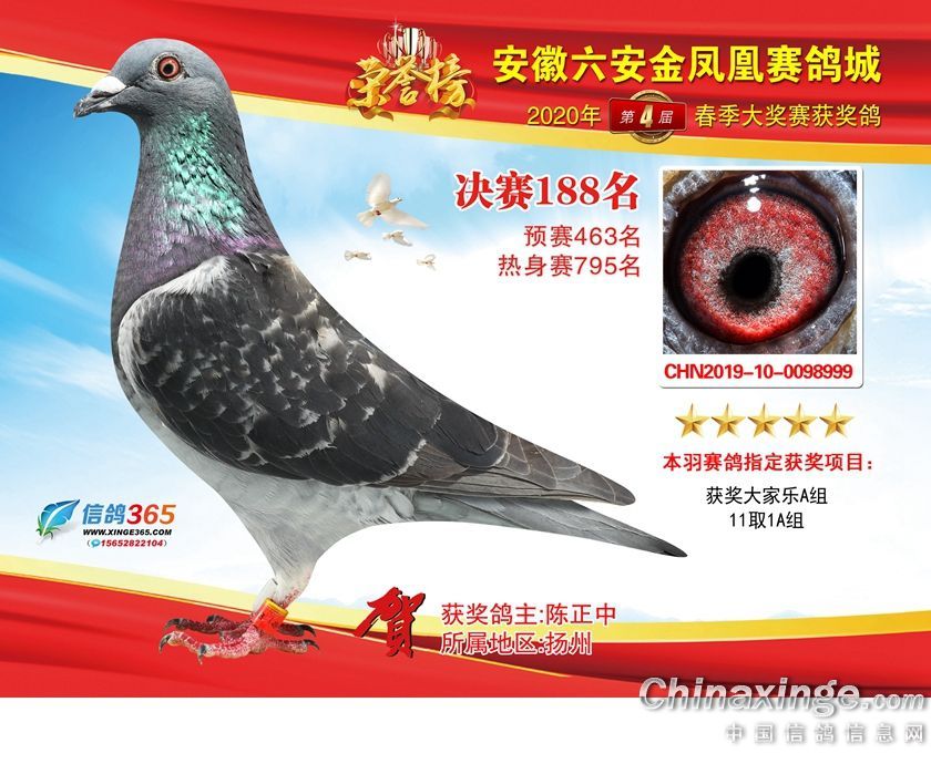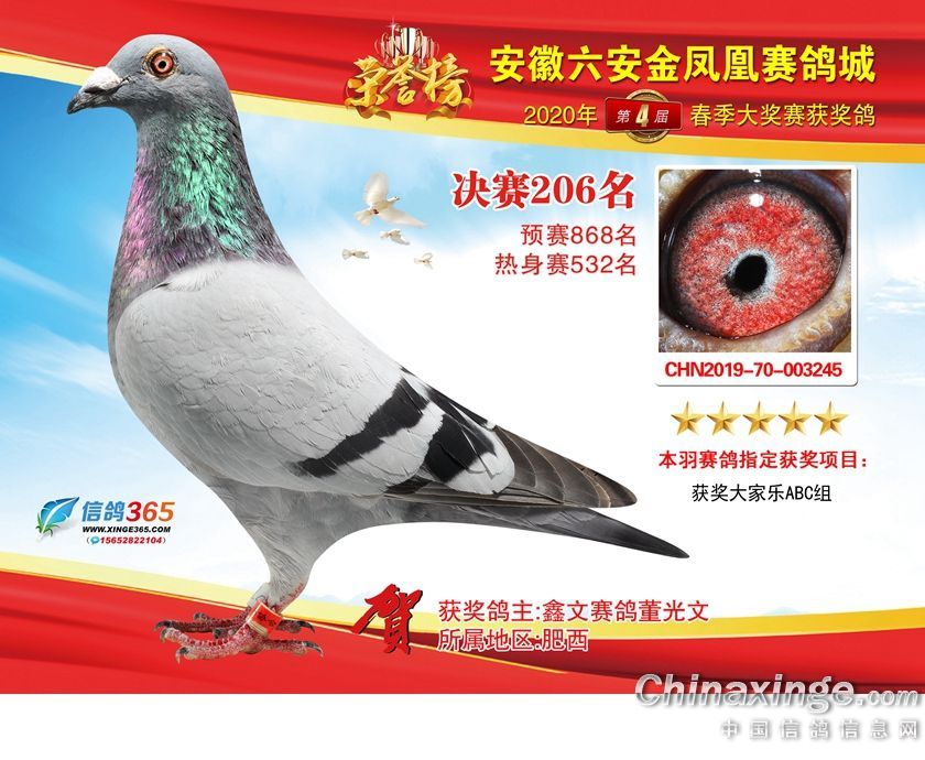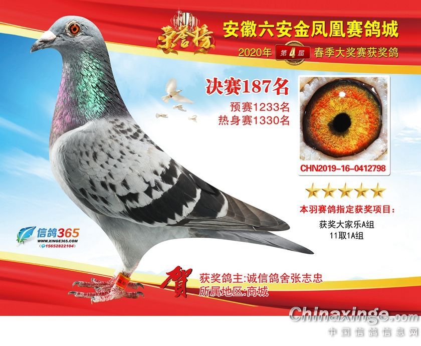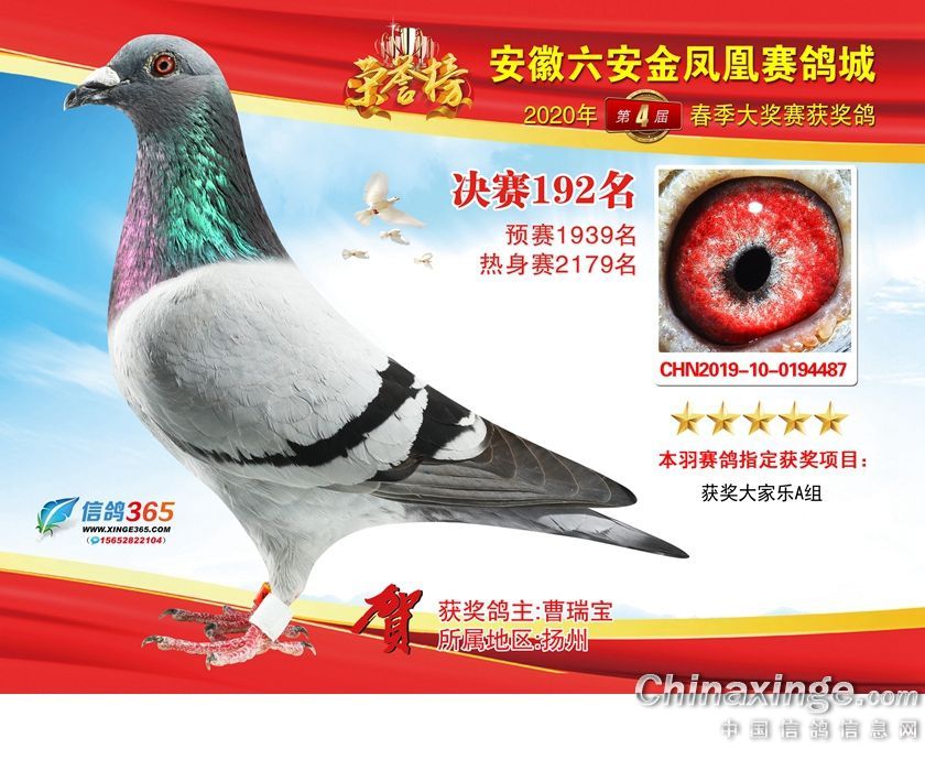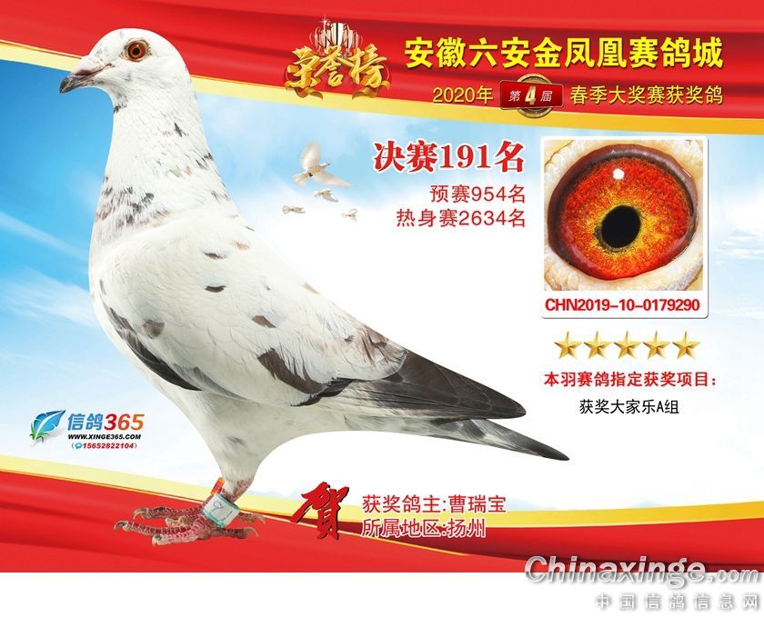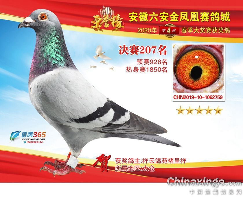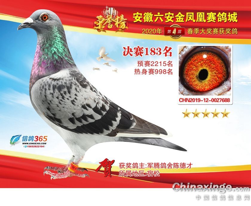 作品说明: 安徽金凤凰赛鸽城2020年获奖鸽181-210名