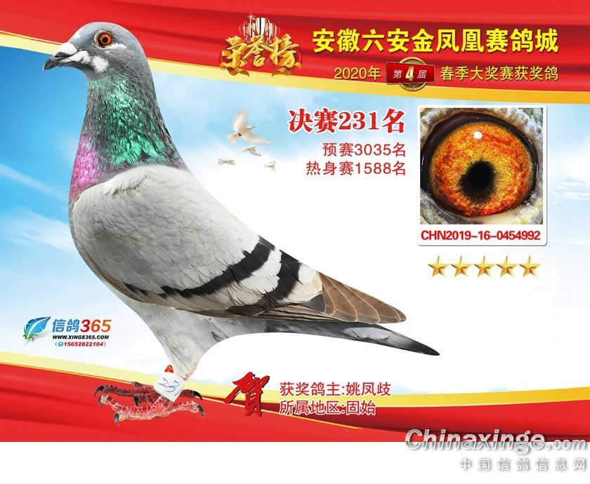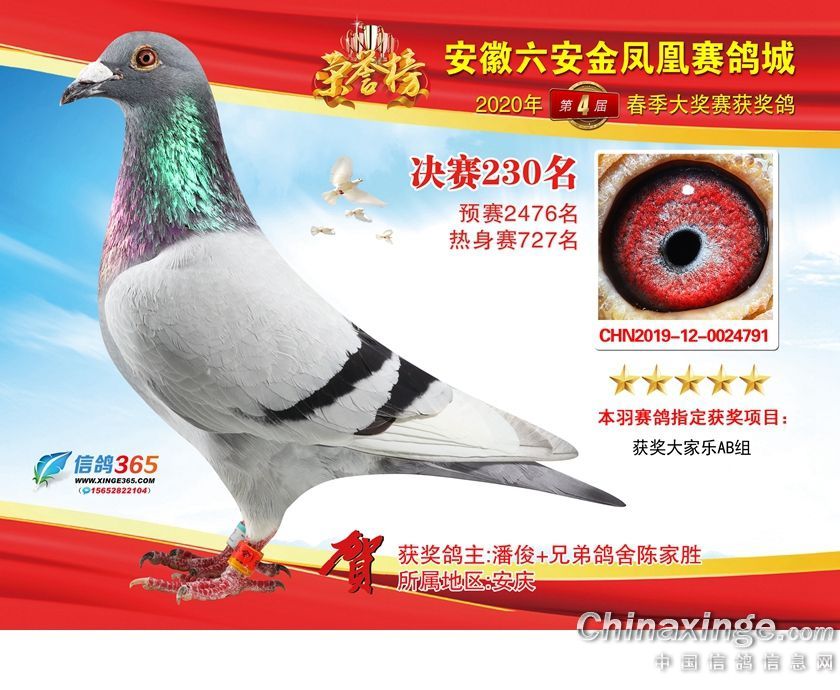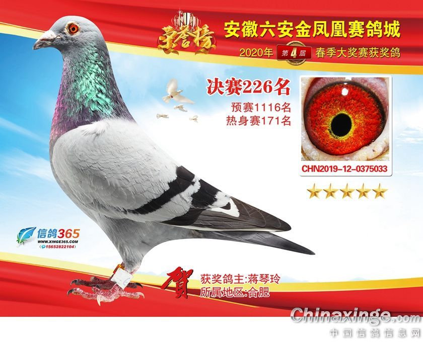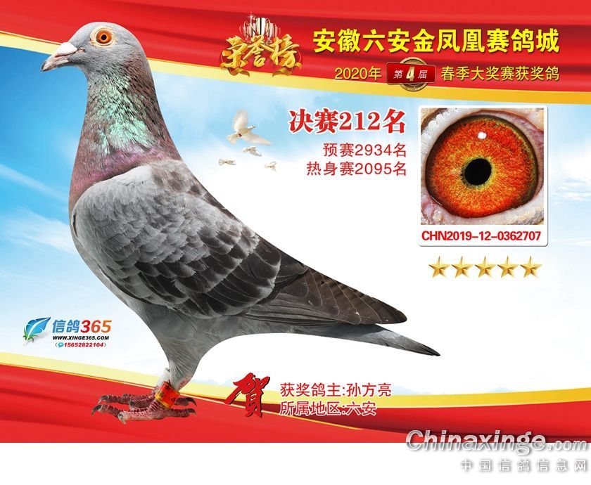 作品说明: 安徽金凤凰赛鸽城2020年获奖鸽211-240名