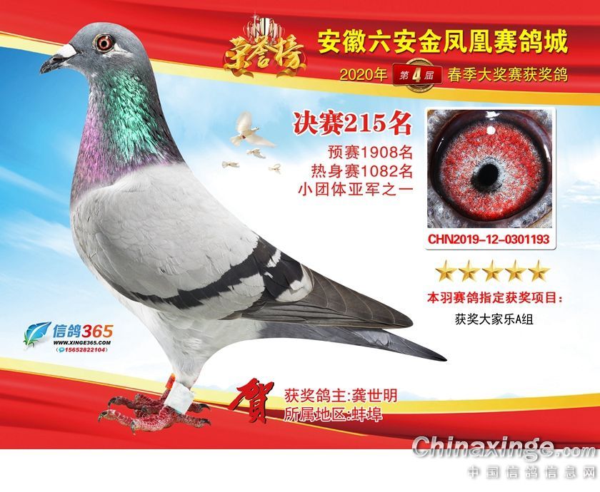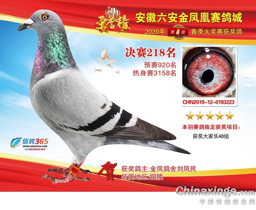 安徽金凤凰赛鸽城2020年获奖鸽211-240名