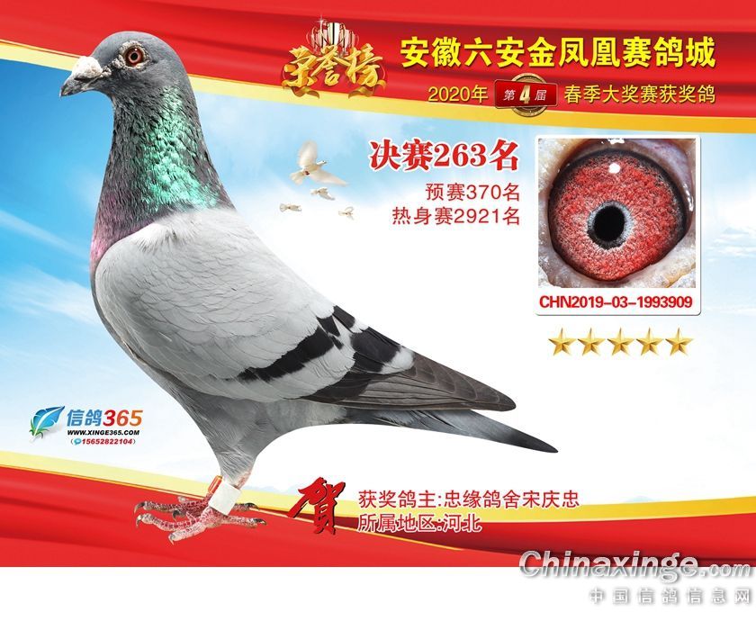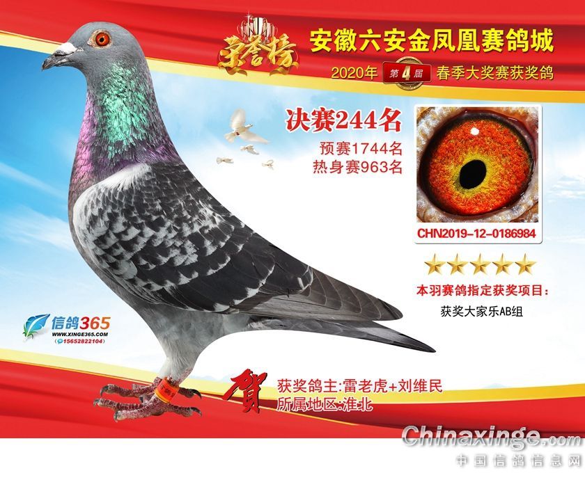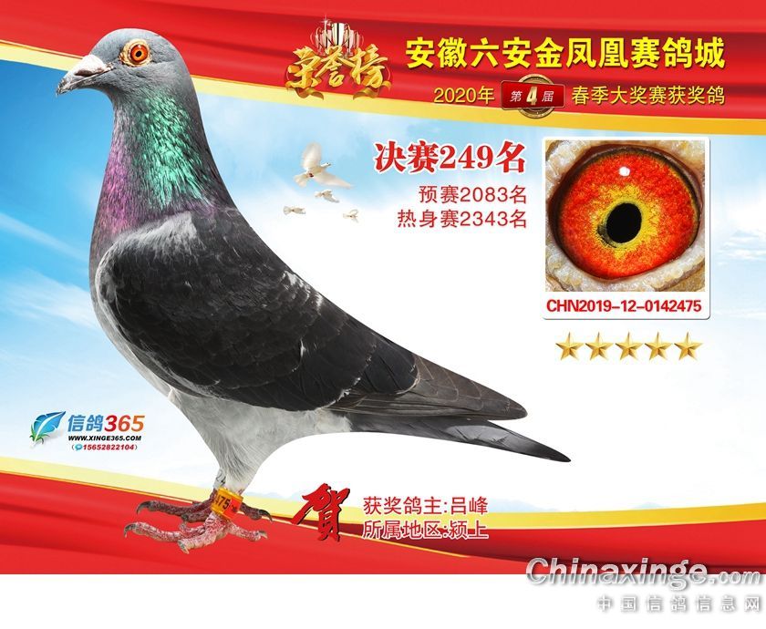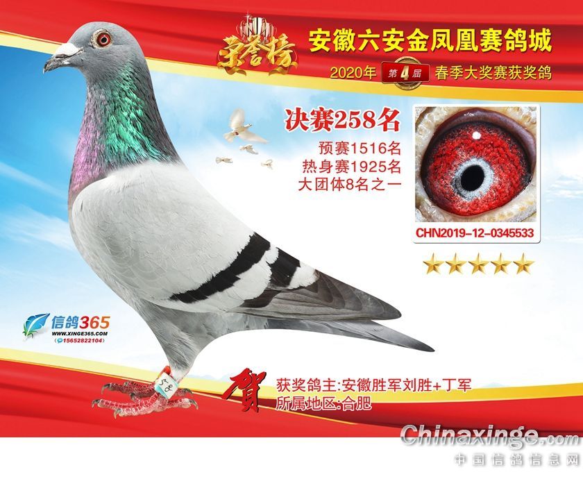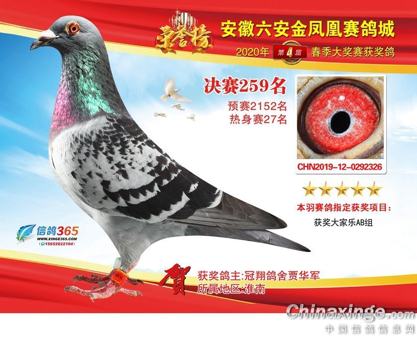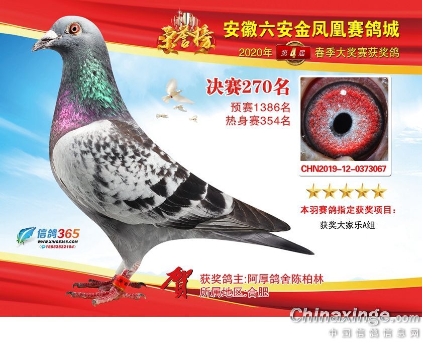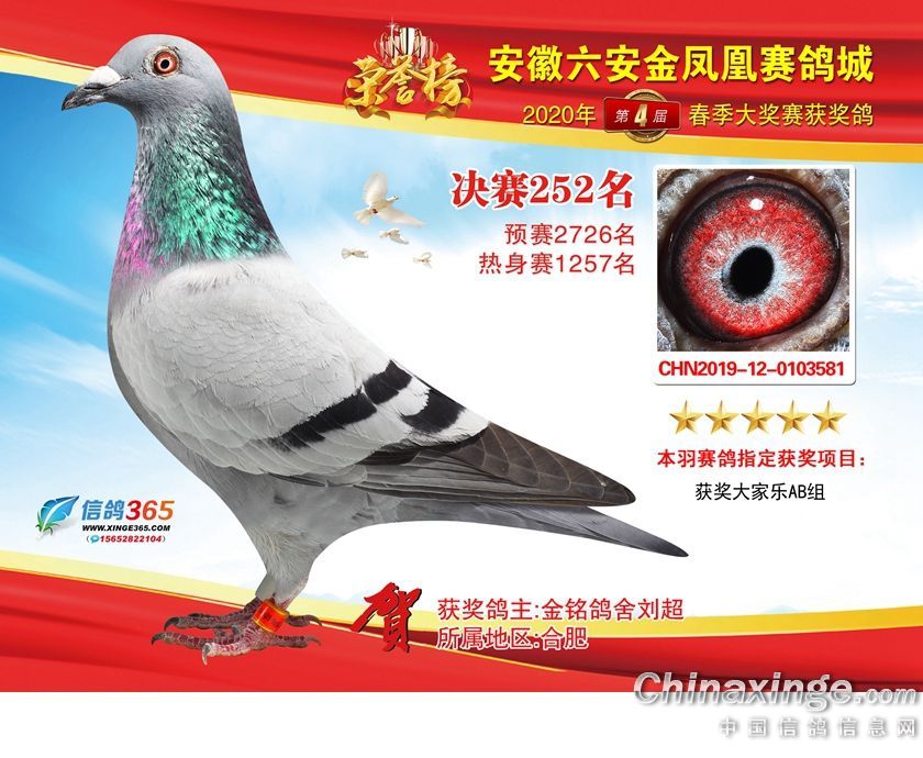 作品说明: 安徽金凤凰赛鸽城2020年获奖鸽241-270名