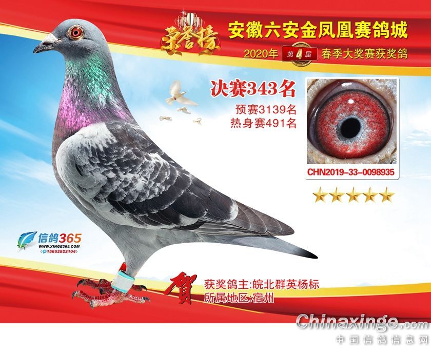 作品说明: 安徽金凤凰赛鸽城2020年获奖鸽331-360名
