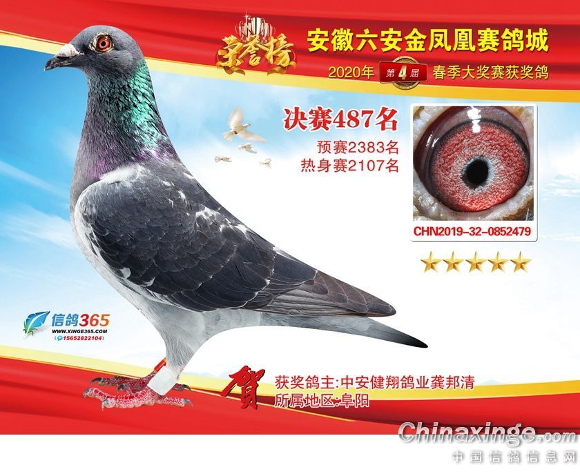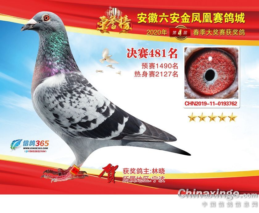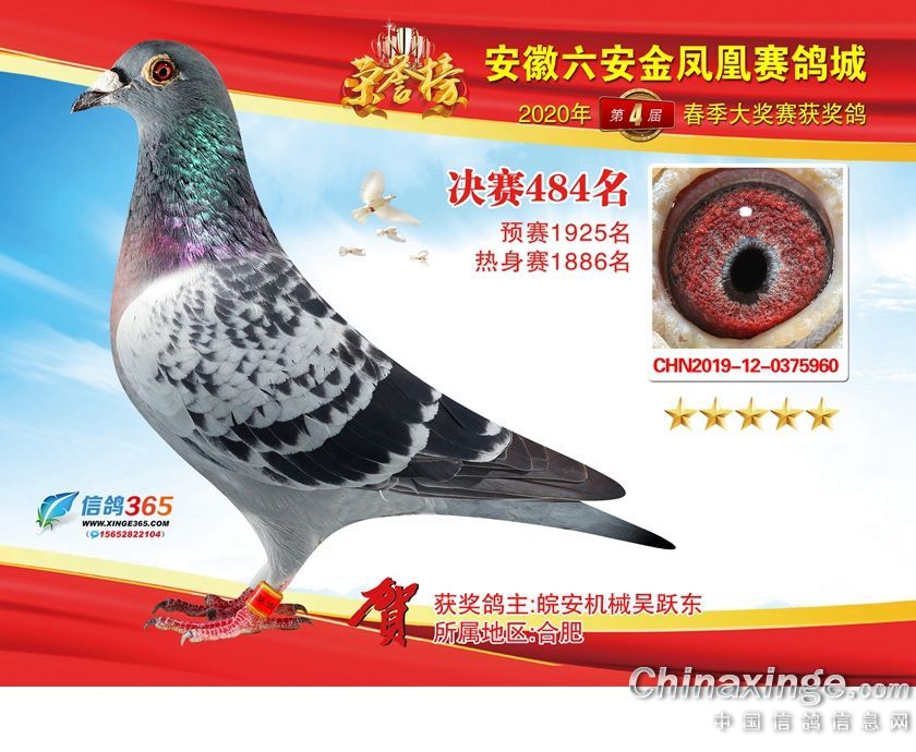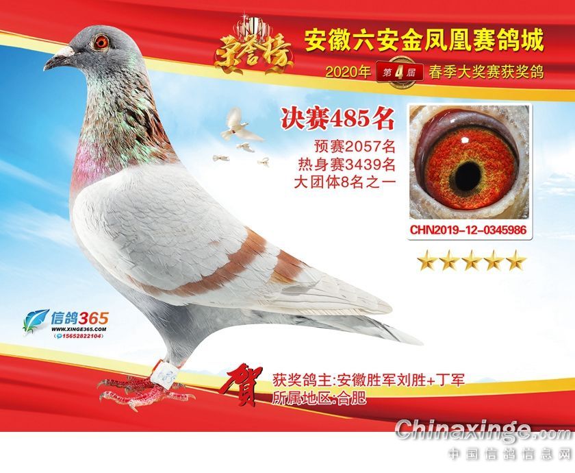 作品说明: 安徽金凤凰赛鸽城2020年获奖鸽481-500名