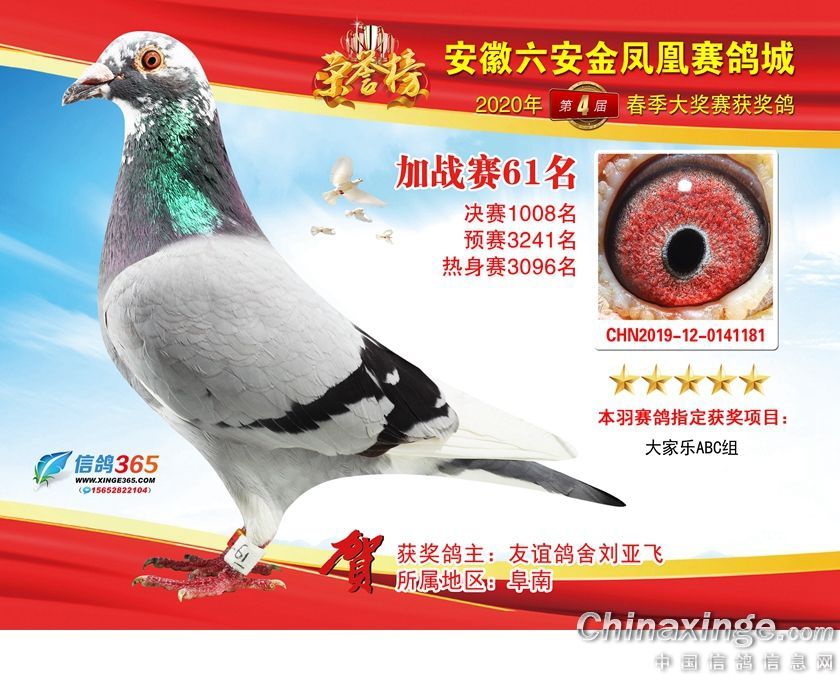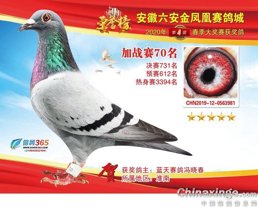 作品说明: 安徽金凤凰赛鸽城2020年加战赛获奖鸽51-80名