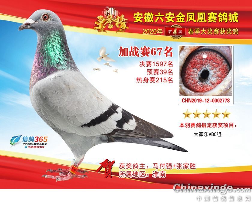 安徽金凤凰赛鸽城2020年加战赛获奖鸽51-80名