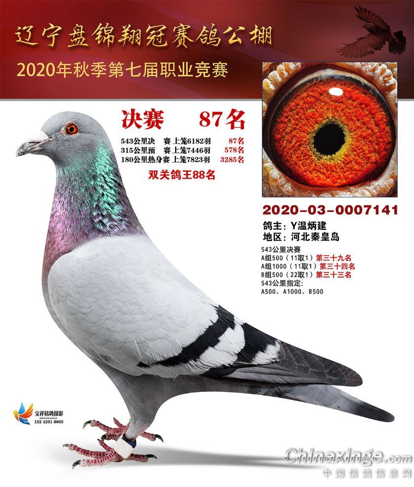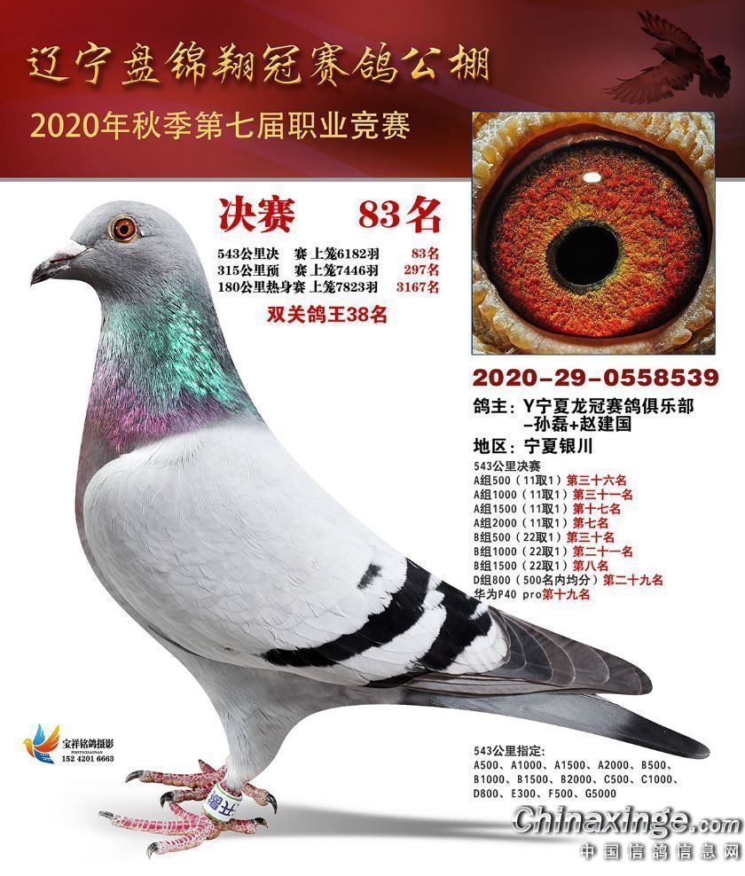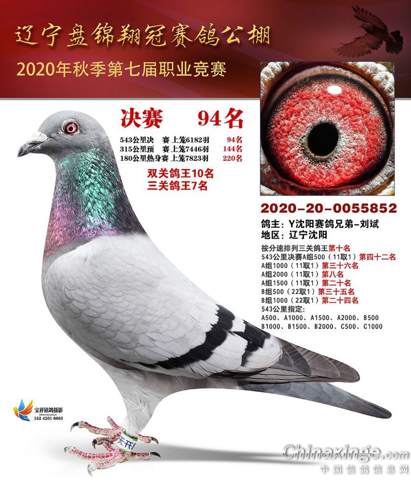 辽宁翔冠公棚2020年决赛获奖鸽展示(51-100名)