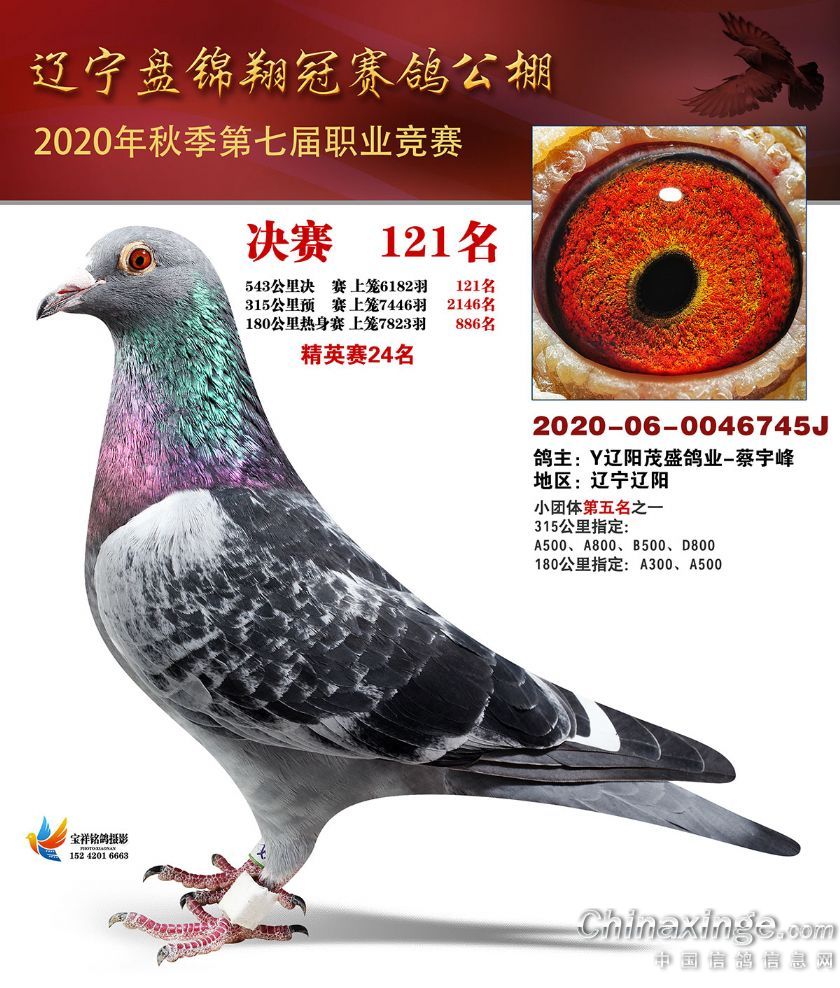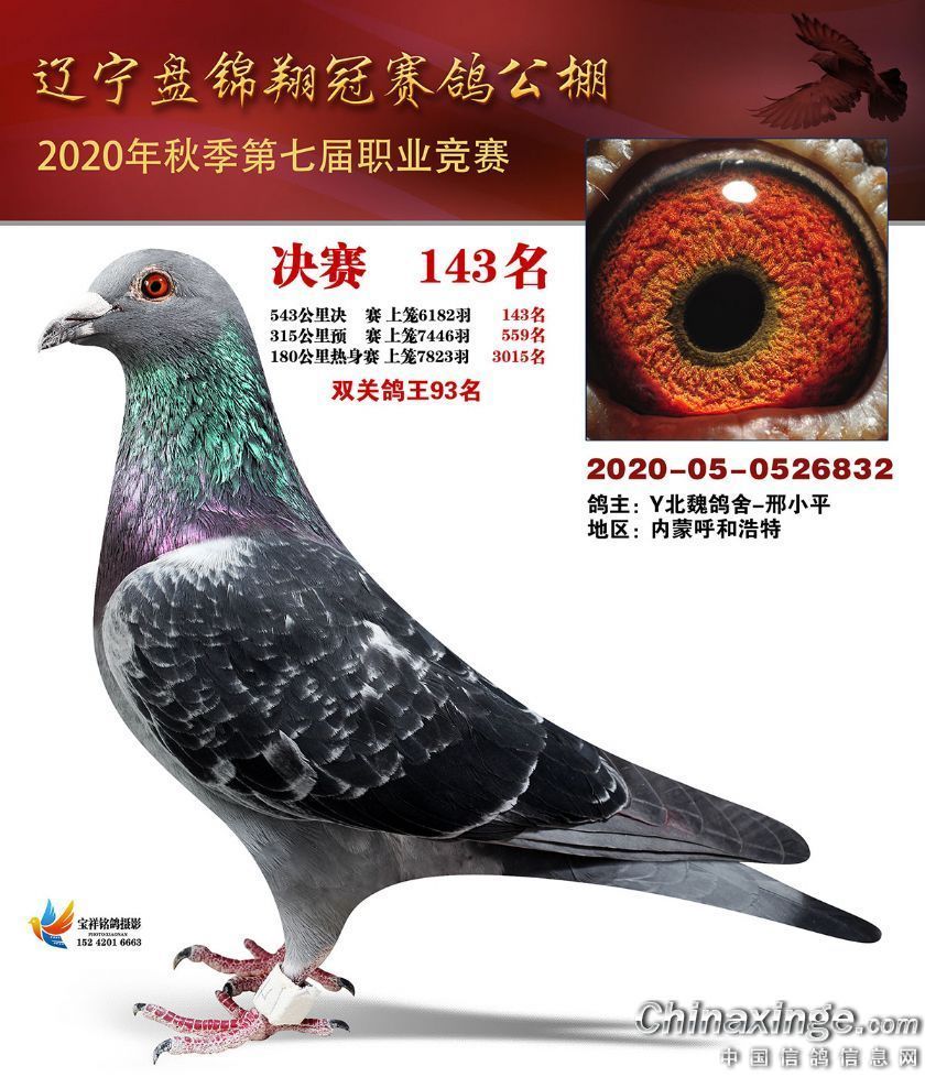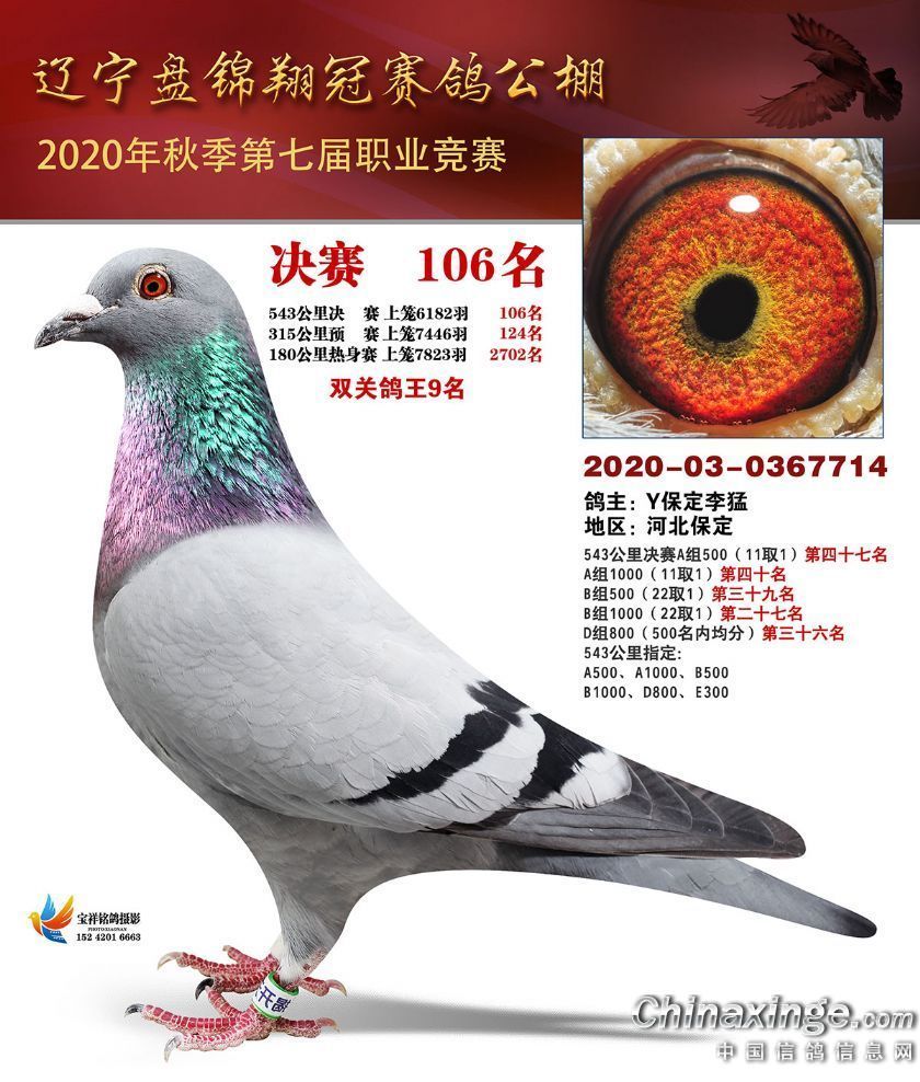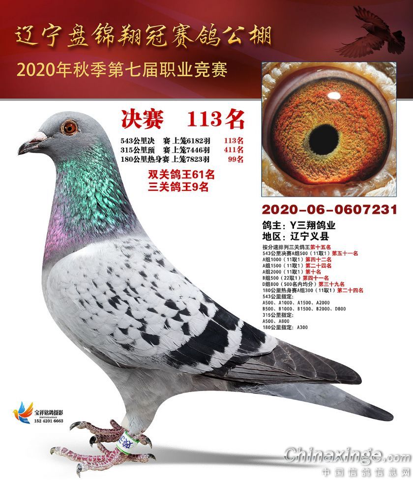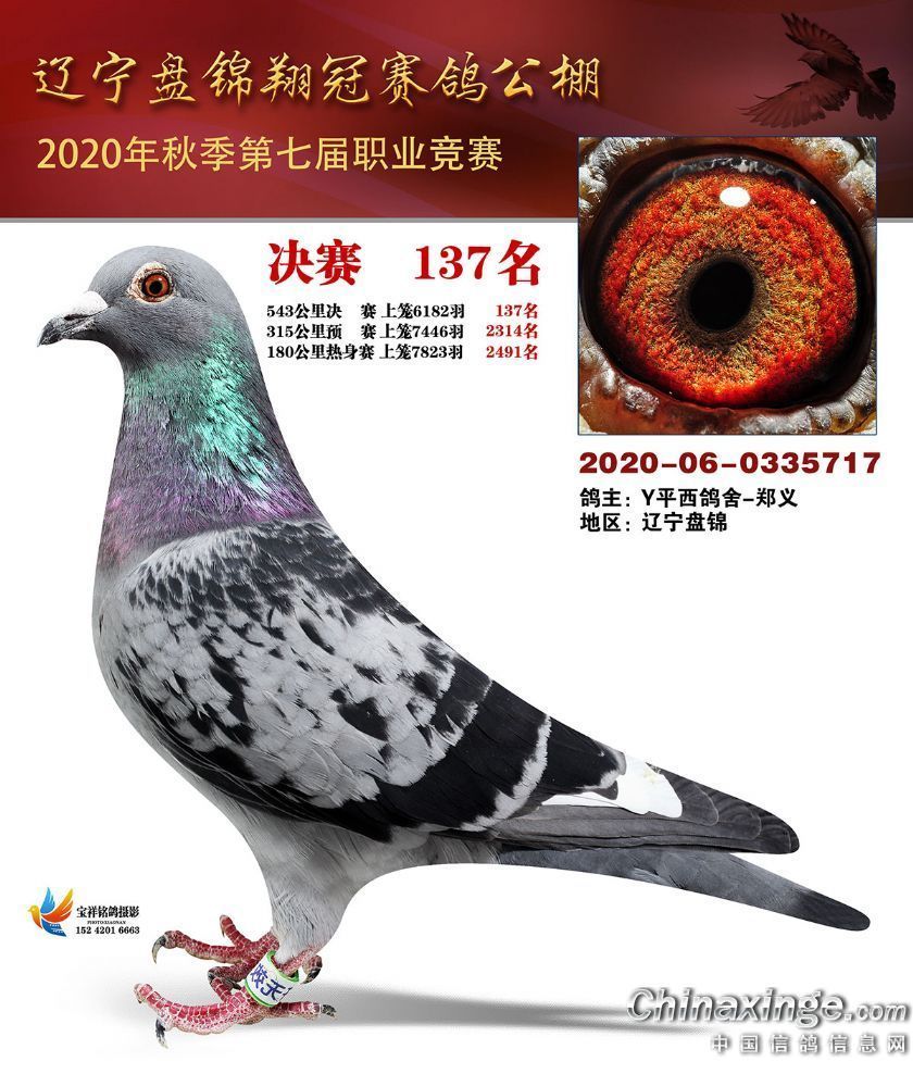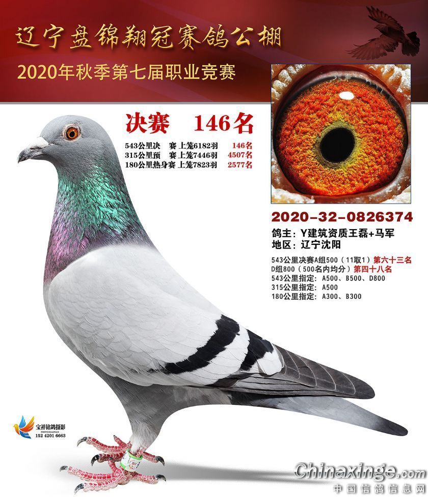 作品说明: 辽宁翔冠公棚2020年决赛获奖鸽展示(101-150名)