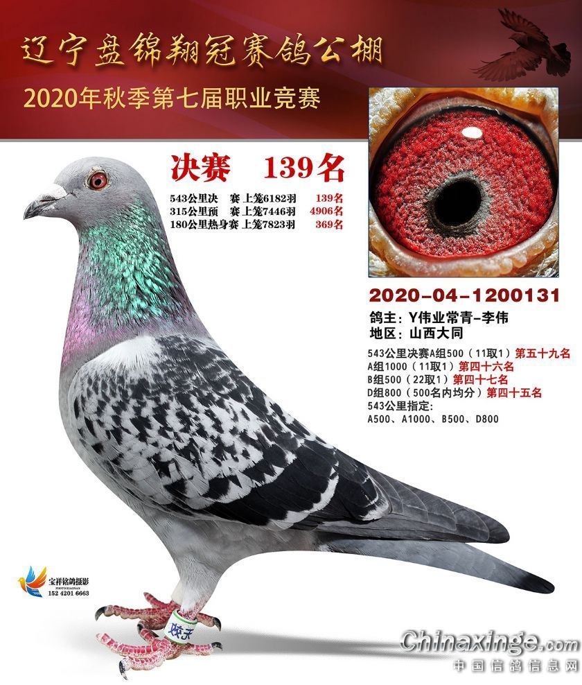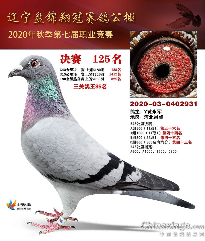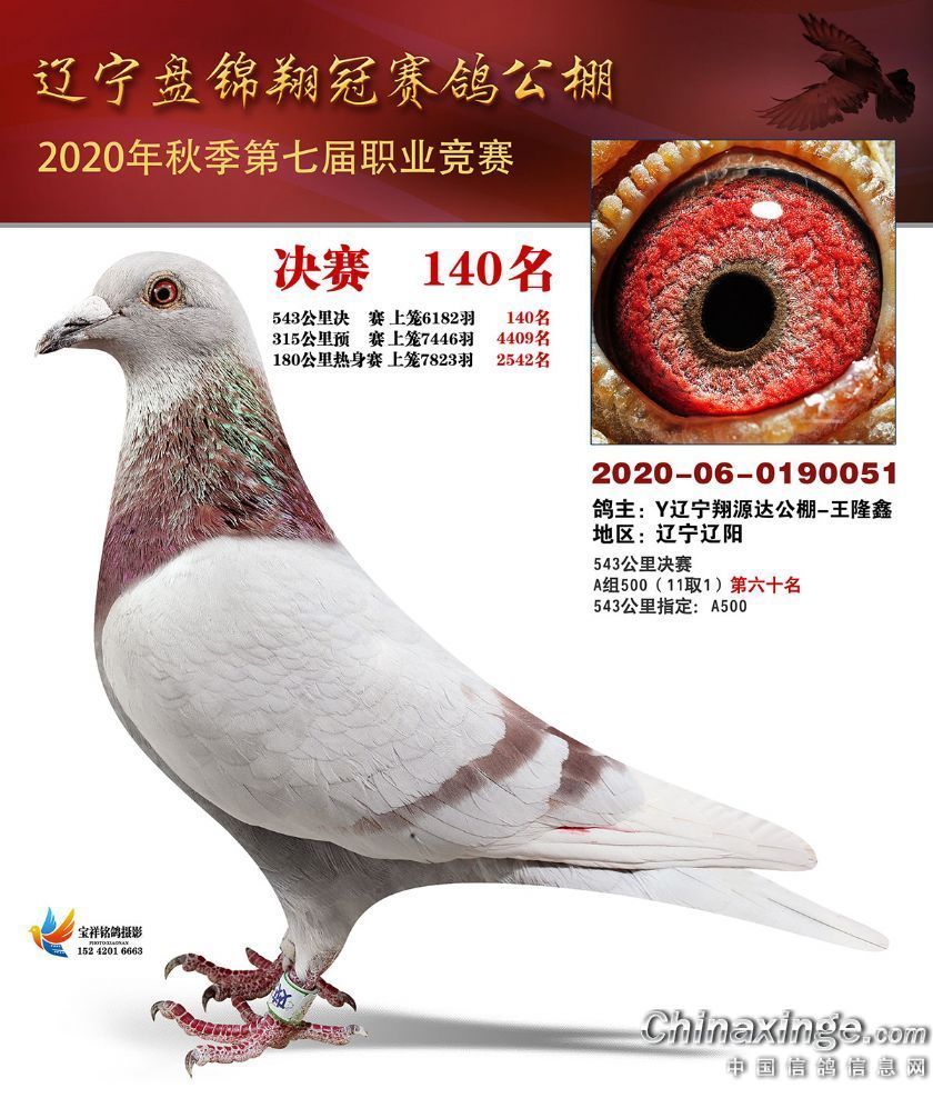辽宁翔冠公棚2020年决赛获奖鸽展示(101-150名)