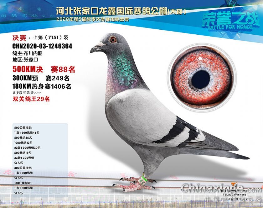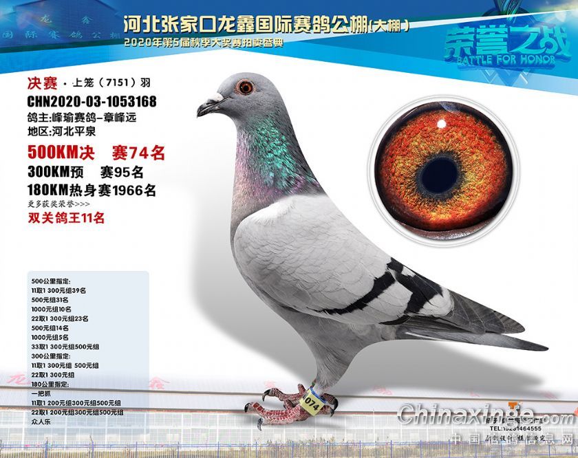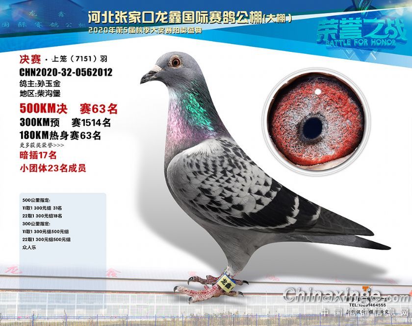 河北龙鑫公棚2020年秋季获奖鸽61-90名