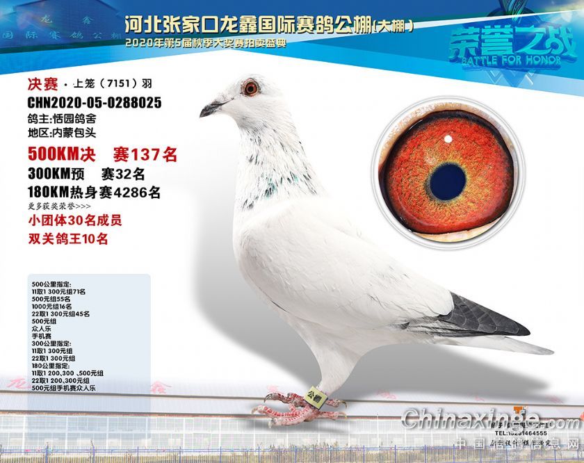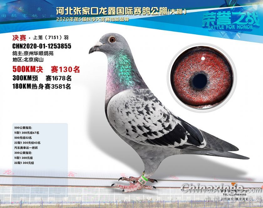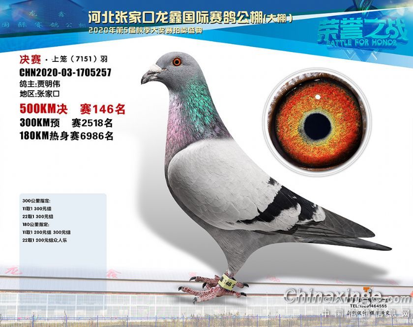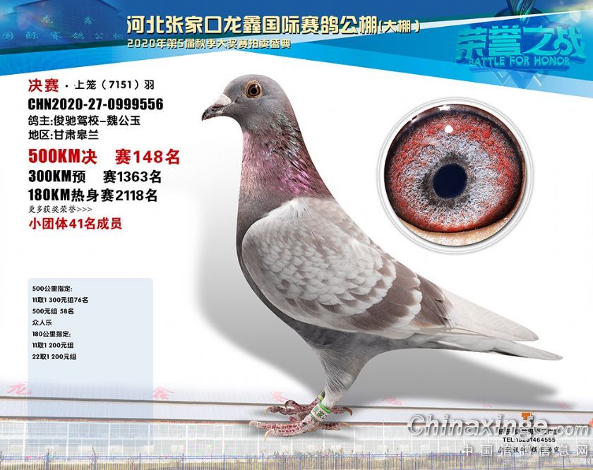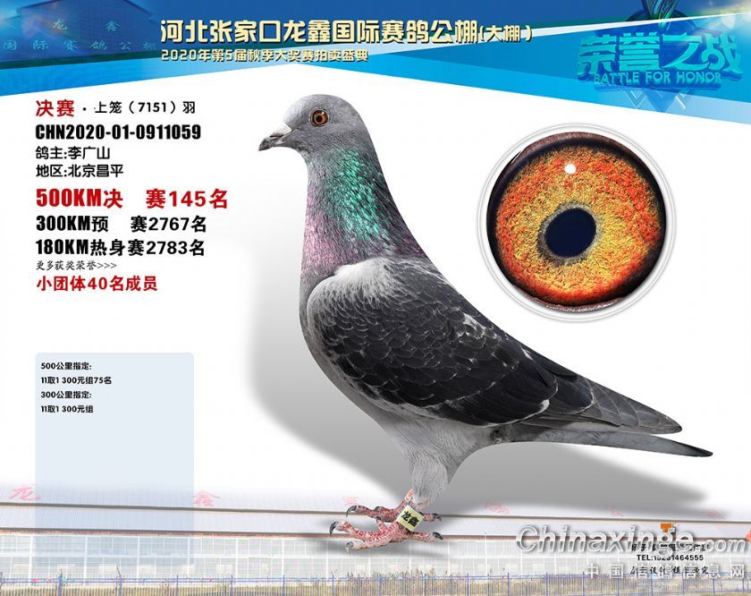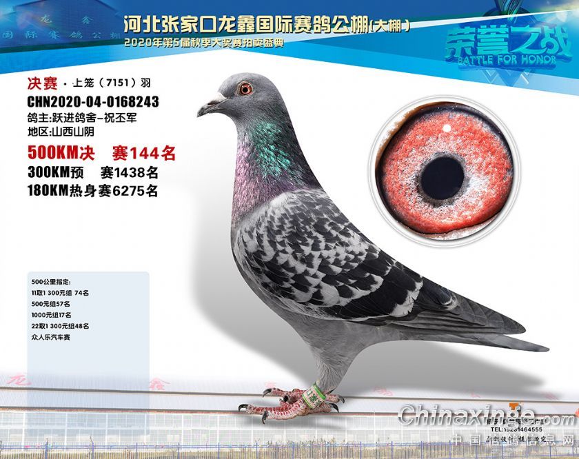 河北龙鑫公棚2020年秋季获奖鸽121-150名